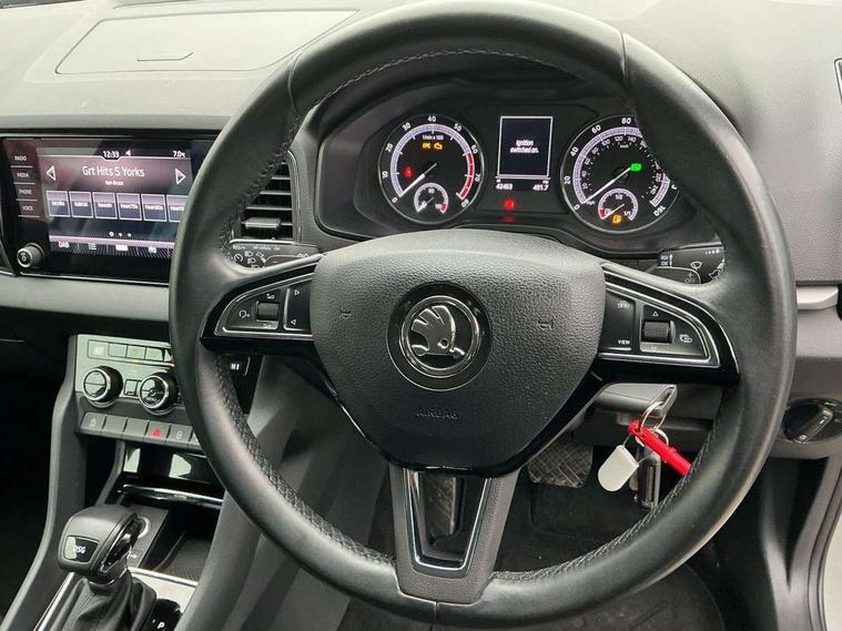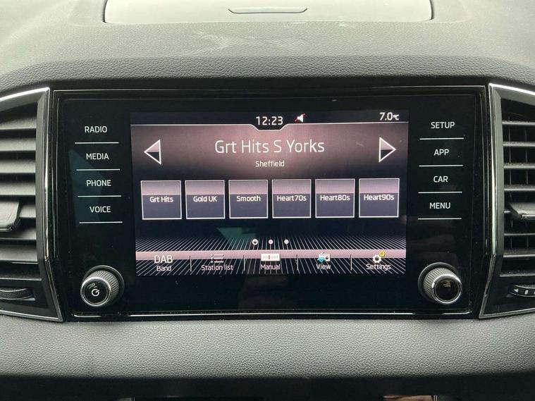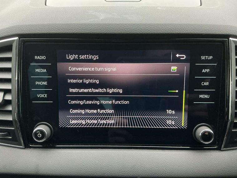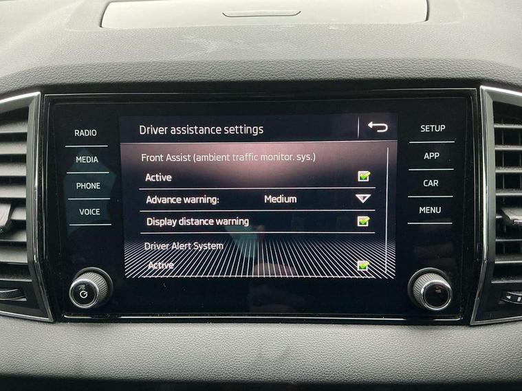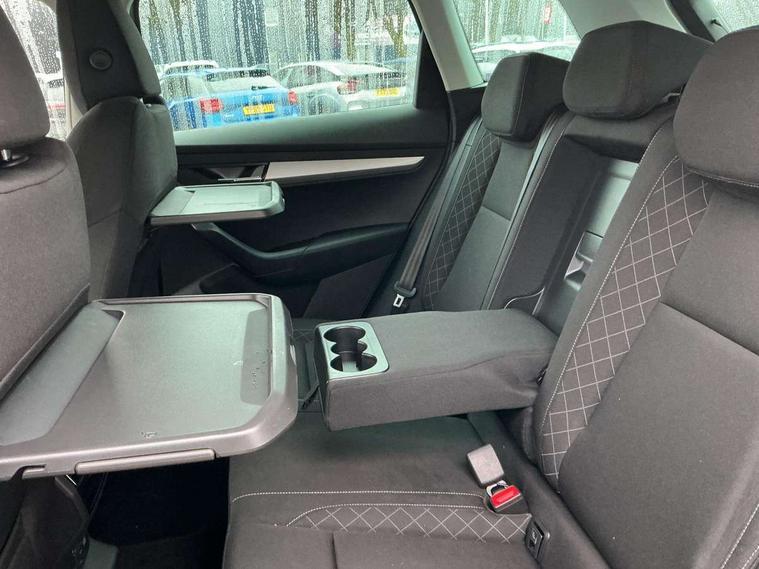 Driver alert system, Driver fatigue sensor, Driver profile selection, Electro-mechanical PAS, Outside temperature gauge, Service interval indicator, Start/stop system with regenerative braking, DAB radio with Bluetooth, SD card slot, USB connection, Acoustic glass, Aero front windscreen wipers with intermittent function, Automatic headlight control system, Black electric window control buttons, Body colour door mirrors and handles, Body coloured bumpers, Electric front and rear windows with child proof lock, Electrically adjustable heated folding and auto dimming door mirrors, Heated rear windscreen, LED rear lights with high functionality, Light assistant (coming/leaving home/tunnel light), Privacy glass, Safety reflectors on front doors, Third brake light, 1.5 litre bottle holders in driver and front passenger door panels, 12V socket in boot, 12v socket in front centre armrest with storage compartment and rear air vents, 2 Folding hooks and nets in boot, 2 Front readings lights for driver and passenger, 3 rear height adjustable headrests, 4 foldable roof handles with rear coat hooks, 4 lashing points on luggage floor, Backrest release, Cargo elements in boot, Chrome inner door handles, Driver and passenger seats height adjust, Dual zone climate control, Folding tables on the front seat backrests, Front head restraints, Front seat and rear pockets, Height adjustable front three point seats belts with tensioners, Height/reach adjust steering wheel, Ice scraper, Illuminated and cooled glovebox, Illuminated luggage compartment, Isofix child seat preparation outer rear, Manual lumbar support for front seats, Net programme in boot, Pen holder, Pollen filter, Rear boot cover, Rear reading lights, Rear seats fixed folding and divided 60:40, Safety vest holder, Storage box in upper central dashboard closed, Sunvisors with illuminated vanity mirrors, Umbrella under passenger seat, Airbags - Front side, head, knee and curtain, Automatic door unlocking in case of crash, Automatic fuel cut off in case of crash, Driver airbag, Electronic parking brake with auto hold function, Emergency rear braking signal, ESC including ABS, MSR, ASR, EDS, HBA, DSR, RBS, MKB and traction control, Front assist radar scanning of the space in front of the car with automatic braking, Hill hold control, Passenger airbag with switch-off function, Pedestrian monitor, Seatbelt reminder signalisation and pretensioner for all seats, Three point seatbelts rear, Two tone horn, Tyre pressure display, Tyre pressure monitor, Alarm with interior monitoring, back up horn and tilt sensor with safe function, Electronic engine immobiliser, Remote central locking with 2 remote folding keys, Chrome framed air vents, Storage on wheel cover,