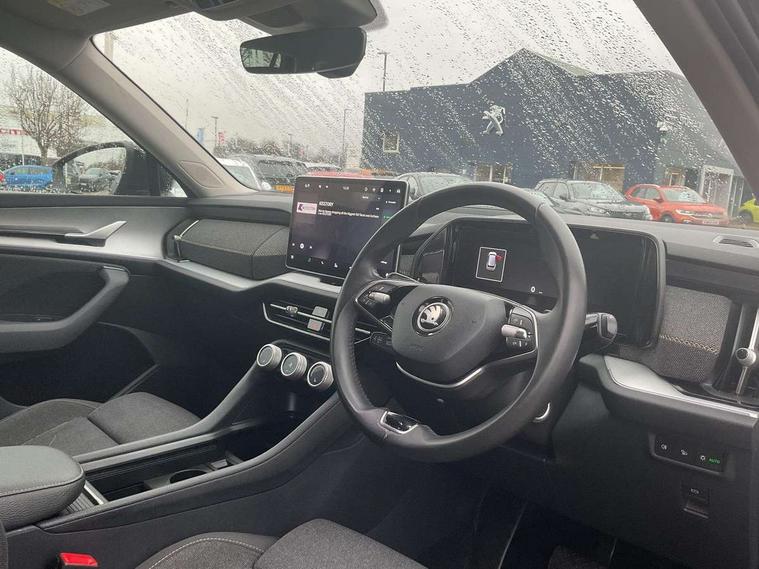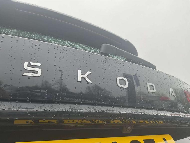 13" satellite navigation touchscreen display, Blind spot detection with door exit warning, Bluetooth system, ChatGPT functionality, Drive mode selector, Driver alert with fatigue sensor, Driver drowsiness alert system, Dry display cleaner, e call+, Front and rear parking sensors, Front cross traffic assist, Lane assist, PAS, Rear traffic assist, Rear view camera, Tailgate unlocking from outside, Traffic sign recognition, USB C Port x 2 in front centre console, Virtual Cockpit - 10.25" digital display, Voice control system, Wireless charging for two smartphones (15W) with cooling function, Wireless SmartLink for Apple CarPlay and Android Auto, Stop/start function, 2x USB-C in the rear, 8 Speakers, DAB Digital radio, Aero front windscreen wipers with intermittent function, All weather light, Auto dimming rear view mirror, Black wheel arch surrounds, Body colour bumpers, Body colour door mirrors and handles, Cornering light and poor weather light, Electric folding /adjustable/separted heated/folding door mirrors, auto dimming with boarding sports and memory function, Electric front and rear windows, Exterior black decorative trims, Heat insulating glass in windshield, Heated rear window, Ice scraper in fuel tank cap, Invisible tailpipe, LED daytime running lights, LED front fog lamps, LED Headlights, LED rear fog light, LED rear lights, LED third brake light in rear spoiler, Light assistant with automatic headlight control and coming home feature, Logo projection in door mirrors, Rear side wing doors, Rear spoiler, Rear window wiper, Safety reflectors on front and rear doors, Unique dark chrome design logo on alloy wheels, Window control switches with black trim, Windscreen wipers with rain sensor, Without engine designation, 1.5l bottle holder points in all door, 12V socket in boot, 1x centre rear reading light, 2 seat bench in 3rd row, 3 configurable smart dials with 32mm coloured display, 3 seat bench in 2nd row, 4 foldable roof handles with rear coat hooks, Ambient interior lighting - Dashboard, front-door stowage compartments, front and rear door panels and footwell lighting, Automatic gear selector on steering wheel, Chrome interior door handles, Driver/front passenger reading lights, Fabric headlining, Fixed bench 40:60:40 split folding backrests, Front and rear floor mats, Front centre armrest with jumbo box storage compartment, cup holder and 12V socket, Front courtesy lights, Height adjustable front headrests, Isofix child seat fittings in outer middle row rear seats and front passenger with top tether, Manual height adjustment for front passenger seats and thigh support extender, Manual lumbar support for front passenger seat, Manually adjustable steering column, Pollen filter, Rear centre armrest with cupholders, Rear seat boot backrest release, Retractable luggage compartment cover, Single front passenger seat, Skoda lettering on steering wheel, Sliding trunk cover, Small Bags on the inner sides of the front backrests, Storage pocket including mobile phone pockets on the backs of the front seats, Sunvisors with illuminated vanity mirrors, Three rear height adjustable headrests, Ticket holder on A Pillar, Tri zone climate control, Umbrella in door panel x1 made from sustainable materials, Upper and lower glovebox with card holder and coin compartment, USB C port by rear view mirror for charging only (15W), Variable boot floor, Auto door release and activation of warning lights in the event of an accident, Driver and front passenger airbag with knee airbag and front passenger airbag deactivation, Electric child locks, Electronic parking brake, ESC (incl. ABS+EMD+MSR+ASR+EDL+HBA+DSR+RBS+ESBS+MCB+TSA+XDS), Front assist with braking reaction to vehicles, pedestrians and cyclists, Front disc brakes, Fuel cut off safety device, Height adjustable front 3 point seatbelts + pretensioners, Hill hold control, Junction assist with automatic emergency braking, Rear disc brakes, Safety vest holder in door, Seat belt reminder for all seats, Three point rear seat belts, Two tone horn, Tyre pressure monitor, Alarm with interior monitoring and tilt sensor with safe function, Anti-theft wheel bolts, Immobiliser, Remote central locking with 2 keys, Breakdown kit,