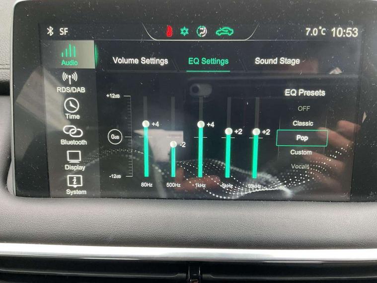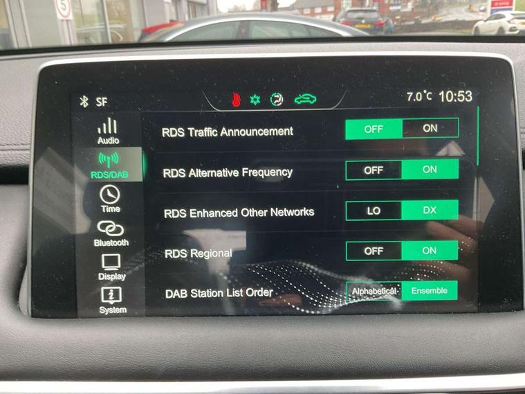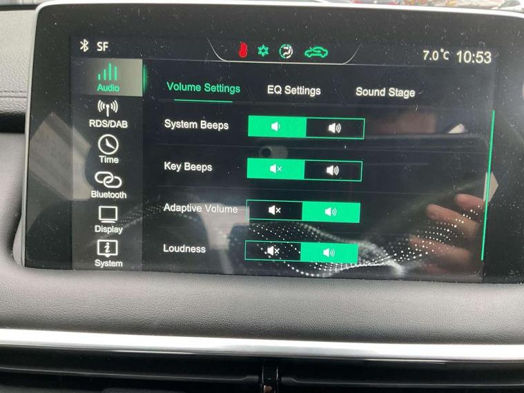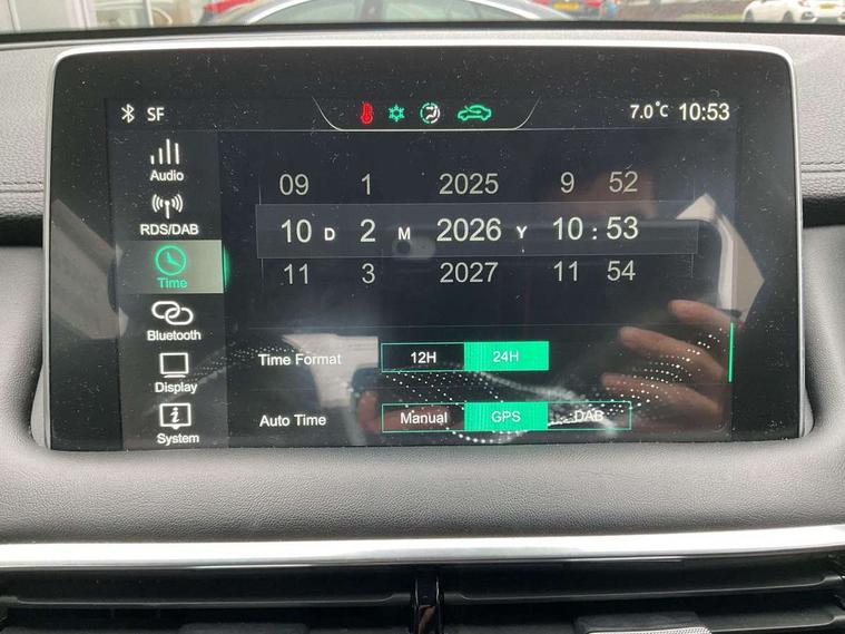 10.1" colour touchscreen, Android Auto, Apple CarPlay, Blind Spot Detection (BAS), Bluetooth connectivity, Cruise control, Intelligent speed assist, Lane keep assist system (LAS) with Lane departure warning system (LDWS), PAS, Rear cross traffic alert, Rear parking camera, Rear parking sensors, Satellite navigation system, Trip computer, USB mobile phone charging function, 4 speaker audio system, DAB audio, Auto dimming rear view mirror, Automatic headlights, Bi-function projection headlight, Body colour electric adjustable heated door mirrors, Electric folding door mirrors, Follow me home headlights, Front and rear aero wiper, Front and rear electric windows with one-touch up/down, Front fog lights, Intelligent high beam, LED centre brake light, LED daytime running lights, Rain sensing wipers, Silver roof rails, 12V power sockets, 2nd row 60/40 split fold seat, 2nd row seat with 2 stage incline adjustment, 3 rear headrests, 4 way manually adjustable passenger seat with height, reach, tilt, backrest and headrest, 6 way manually adjustable driver's seat with lumbar support, Air conditioning, Front centre sliding armrest with storage compartment, Front headrests, Height and reach adjustable steering wheel, ISOFIX restraints on outer rear seats x2, Leather steering wheel, Leather style upholstery, 3x3 point rear seatbelts, ABS/EBD, Active emergency braking with pedestrian/Bicycle detection, Anti rolling protection, Cornering brake control (CBC), Driver, passenger and 2nd row rear seat belt reminder, Dual front airbags, Electric parking brake with auto hold function, ESP, Front passenger airbag deactivation switch, Front seat belt height adjuster, Front seatbelts (3-point + pretensioner + load limiter), Front side airbags, Hill descent control, Hill launch assist, Rear outer seatbelt pretensioner and load limiter, Side curtain airbags, Tyre pressure monitoring system, Alarm system and engine immobiliser, Keyless entry and push button start system, Remote central locking, Speed sensing door locks, 18" Hurricane diamond cut alloy wheels, Tyre repair kit,