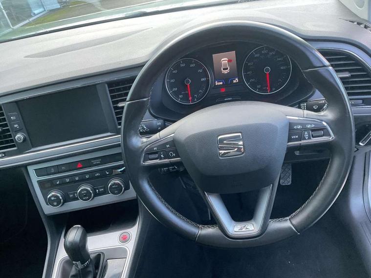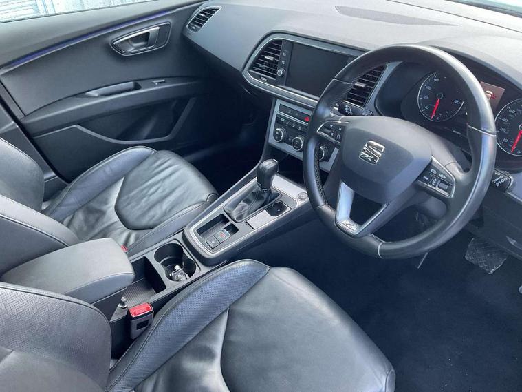 'Lights On' Reminder warning buzzer, 3D map display, 8" touch screen, Bluetooth Handsfree Phone Connection, Electro-mechanical power steering, Front and rear parking sensors, Front assist with pedestrian protection, Full Link Smartphone Integration with Mirror Link, Apple Car Play, Google Android Auto, Low fuel warning light, Navigation system (incl. media system plus), Outside temperature gauge, Rear view camera, RPM counter, SEAT logo boot release, Service interval indicator, Trip computer, Voice recognition, Wireless Smartphone charger, Comfort suspension, XDS electronic differential lock, 2x SD card slot, 4 USB, 8 speakers, Auxiliary input socket, Bluetooth audio streaming, CD player, DAB Digital radio, High resolution colour driver display, Media system plus (incl. media system colour), SEAT USB media cable, Steering wheel mounted audio/phone controls, Body colour door handles, Body coloured bumpers, Body coloured exterior mirrors with integrated LED indicators, Chrome roof rails, Chrome window surround, Chromed centre radiator grille, Dark tinted rear windows, Electric front/rear windows, Electrically adjustable door mirrors, Electrically foldable exterior mirrors with parking position and passenger-side mirror with lowering function, Heated door mirrors, High gloss black finish B and C pillars, Illuminated aluminium front door sill with XCELLENCE logo, LED front fog lights, LED headlights with LED day time running lights + LED rear lights + LED number plate lights, Rear wash/wipe, Visible twin exhaust tailpipes, 12v power point in centre console, 60/40 split folding rear seat with armrest, Active front headrests and 3 rear headrests, Additional heating and ventilation outlet in rear of centre console, Boot storage net, Cargo rings in boot, Double boot floor, Driver and passenger seat height adjust, Driver seat lumbar adjustment, Dual zone climate control, Dust/pollen filter, Front adjustable head restraints, Front armrest with storage box, Front cupholders x 2, Front seatback storage pockets, Front sport seats in leather, Front/rear floor mats, Gear shift indicator, Height/reach adjust steering wheel, High centre console with integrated box & cup holder, rear air outlet, with armrest in front seats, Illuminated door sills, Instrument lighting with brightness control, Leather steering wheel with XCELLENCE logo, Luggage compartment cover, Luggage tie-down hooks, Multi-colour ambient interior lighting, Passenger seat lumbar adjust, Rear top tether child seat ISOFIX attachment, Storage box under drivers and passenger seat, Winter pack - Leon, 3 point seatbelts on all rear seats, 7 airbags - 2 front, 2 front side, 2 curtain, 1 knee, ABS + TCS, Child proof door locks, Electric handbrake, Electronic parking brake with auto hold, ESC with tyre pressure warning indicator, ESP+EBA, Front seatbelt pretensioners, Front seatbelt reminder, Hill hold control, Multi-Collision braking, Passenger airbag deactivation system, 2 folding remote keys with window open/close function and boot opening/door mirror folding function, Central locking fuel filler cap, Engine immobiliser, Keyless entry and go, Locking wheel bolts, Remote central locking + deadlocks, Volumetric alarm with back up horn, Chrome interior detailing, 17" Dynamic alloy wheels 30/1,