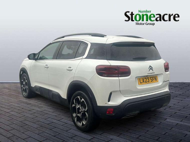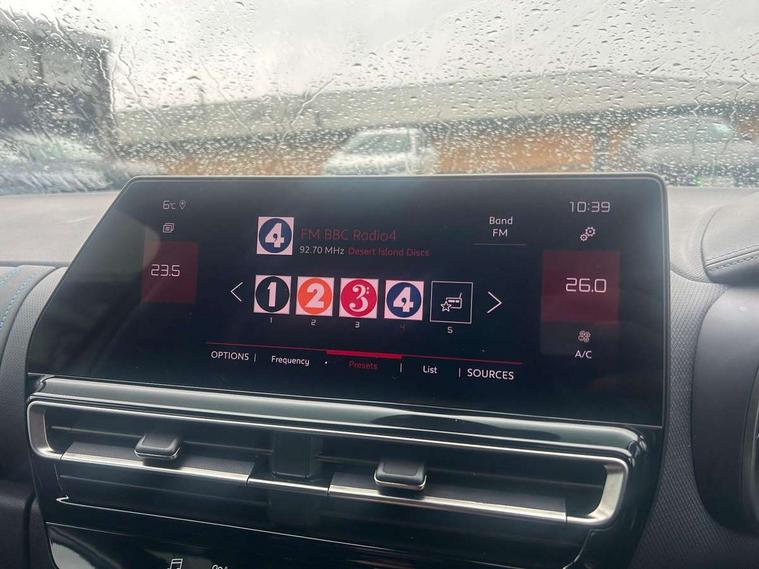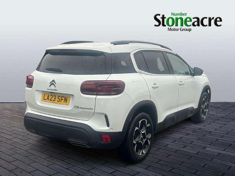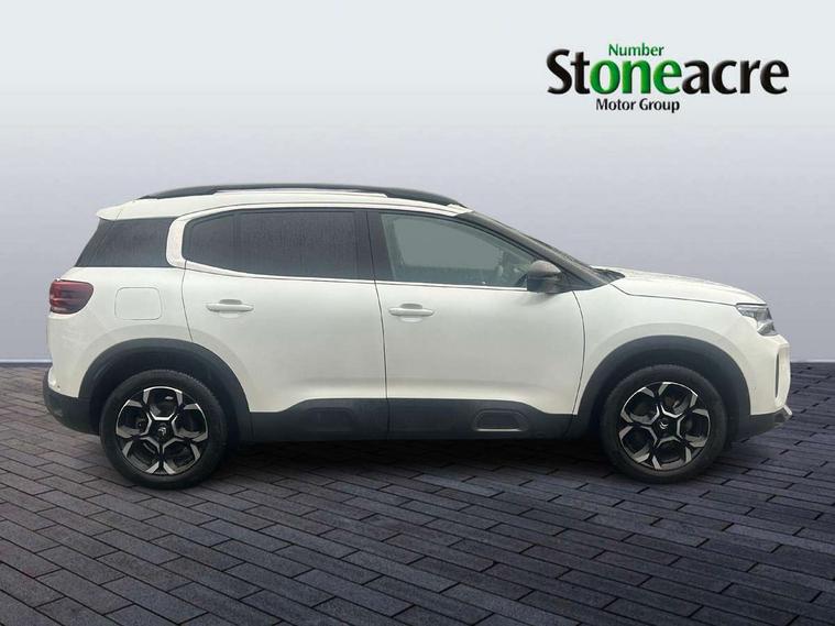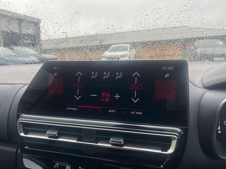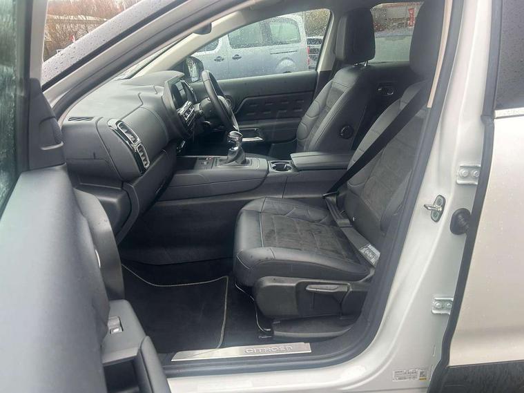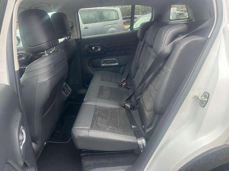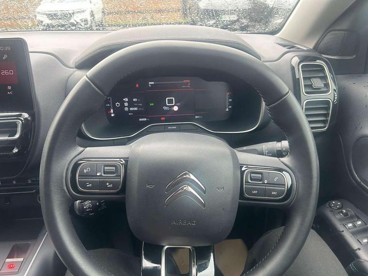 10" Touchscreen user interface with citroen connect nav, voice commands, Bluetooth handsfree and audio streaming, 12.3" digital instrument cluster with customisable zones and colour schemes, Citroen connect box emergency assist system, Citroen connect play featuring android auto and apple carPlay, Electric power steering, Multi function trip computer, Advanced comfort suspension, Auxiliary input socket, FM and DAB digital radio, 6 speakers, Polyphonic sounds, USB A socket (charge only) on rear part of central console, 3rd brake light, Acoustic laminated windscreen with rain and brightness sensors, Automatic hazard light activation upon heavy brake application, Automatic headlights with welcome and goodbye lighting, Body colour door handles, Body colour front bumper with air curtain, silver painted skid plate, and matt black lower section, Body colour rear bumper, Electric heated and folding door mirrors with LED approach lighting and blind spot monitoring indicators, Electrochrome auto dimming interior rear view mirror, Front fog lights with static cornering function, Gloss black longitudinal roof bars, Glossy black door mirrors, Glossy black structured grille, LED headlights with LED daytime running lights and visual signature, LED rear lights with visual signature, Magic wash automatic windscreen wipers with flat blades, variable speed depending on vehicle speed, and windscreen washers integrated into the wipers, Radio aerial integrated into rear window, Rear side wing doors, Rear window wiper with intermittent facility, linked to reverse gear, Sequential electric front and rear side windows with anti pinch function, Stainless steel front door thresholds, Stainless steel window finishers, Tinted row 1 windows and dark tinted row 2, C-Pillar and tailgate windows, 12V power outlet and 2x USB-A sockets (1x charge+data, 1x charge only) on front part of central console, 12V socket in boot, 2 Position boot floor, 3 point ISOFIX mountings on front passenger and rear outer seats, 4 way adjustable steering column, 6 way Manual front passenger seat adjustment (height, slide, backrest angle), 6-way electric adjust driver seat, Adjustable headrests (2 in front, 3 in rear), Advanced comfort front and rear seats, Aluminium pedals and foot rest, Automatic bi-zone air conditioning with active carbon filter and air quality system, plus controllable row 2 air diffuser, Boot light, Central storage box with opening central armrest and interior lighting, Dashboard storage area to right of driver, open storage at front of central console, glovebox with smooth opening and lighting, Front + rear carpet mats, Front door storage can hold 1.5 litre bottle and A4 size documents, B-pillar coat hooks, rear door storage, central storage under armrest, Manual driver lumbar adjustment, Map pockets in rear of front seats, Multi function leather steering wheel with two command blocks, Single front passenger seat, Three individual sliding seats with adjustable backrest and flat floor function, Two open cupholders with LED lighting in central console, Urban leather effect cloth/Alcantara upholstery with black ambience, City camera pack with front and rear parking sensors - C5 Aircross, Drive assist pack - C5 Aircross, LED interior lighting - - C5 Aircross, 3 rear 3-point seatbelts (outer seats featuring force limiters), ABS/EBD, Adaptive driver and front passenger airbags with passenger airbag deactivation function, Collision risk alert, Driver and front passenger side airbags, DSC (Dynamic Stability Control) and ASR (Electronic Anti-skid System), Electronic parking brake, ESP including traction control and stability programme, Front seat belts with double pretensioning, force limiters and height adjustment (driver and passenger), Front ventilated disc brakes and rear disc brakes, Head curtain airbags covering rows 1 and 2 (left and right), Hill start assist, Manual child lock in second row, Seatbelt unfastened audible alert, Two tone horn, Tyre under inflation indicator, Anti theft alarm with perimetric and volumetric protection, plus tilt sensor, Anti theft locking wheel nuts, Automatic door and tailgate locking with automatic unlocking in case of collision, Electronic code immobiliser, Keyless entry and start, Remote central locking + deadlocks, Compressor with puncture repair kit,