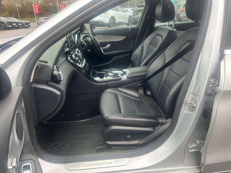 Active park assist with parktronic system, Attention assist, Automatic boot closing, Bluetooth interface for hands free telephone, Collision prevention assist, DYNAMIC SELECT with a choice of driving modes (ECO, Comfort, Sport, Sport+ and Individual), Garmin Map Pilot navigation system with SD card, touchpad and voice control, Multi function trip computer, Outside temperature gauge, Remote boot release, Service indicator (ASSYST PLUS), Speed sensitive steering, Diesel particulate filter, DAB Digital radio, Frontbass loudspeakers, Mercedes Audio 20 radio/single CD + telephone keypad, USB connection, Adaptive brake lights, Body coloured bumpers, Electric front sliding and fixed rear panoramic glass sunroof, Electric windows one touch open/close, Electrically adjustable and heated door mirrors, Green tinted glass, Heated windscreen washers, LED daytime running lights, LED tail lights, Radiator grille with integral star and 2 louvres in matt iridium silver with chrome trim, Rain sensor windscreen wipers, 12V power socket in centre console, 2 cupholders in front centre console, 2 way rear head restraints, 3 spoke nappa leather steering wheel, 4 way adjustable front head restraints, 40:20:40 split folding rear seats, Advanced multicolour ambient light and LED interior light, Aluminium door trim, Auto Mercedes-Benz child seat recognition sensor, Dual zone automatic climate control, Front centre armrest with storage compartment, Gearshift paddles, Heated front seats, Illuminated glovebox, Multifunction steering wheel, Rear top tether child seat ISOFIX attachment, Sports seats, Sunvisors with illuminated vanity mirrors, Lighting pack - C class, Memory pack - C Class, Mirror pack - C Class, Seat comfort pack - C Class, Stowage space pack - C Class, 3 rear 3 point seatbelts, ABS with Brake Assist, Active bonnet, Adaptive brake system, Child proof door locks, Drivers knee airbag, Dual stage driver/passenger airbags, Electronic parking brake, ESP with ASR, Front passenger seat occupancy sensor, Front side airbags, Hill start assist, Pre-Safe anticipatory safety system, Tyre pressure monitoring system, Warning triangle and first aid kit, Window airbags, Alarm system/interior protection/immobiliser, Chrome surround in electric key, Keyless entry and keyless start, Remote central locking, Tyre inflation kit,