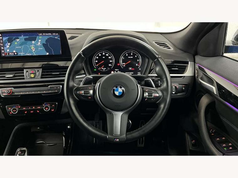 Active Guard incl approach control warning with city brake function and person warning with city brake function, Apple car play, Automatic powered electric bootlid, BMW ConnectedDrive online services, BMW Navigation system with 8.8" monitor, BMW Online services, BMW remote services, BMW Teleservices, Brake pad wear indicator in front and rear, Check Control warning system for monitoring of lights and door/luggage compartment open warning, Electric Power Steering (EPS) with Servotronic, Electro hydraulically controlled multi plate clutch in rear axle, Energy efficient operating strategy, Front axle single joint with specific axle kinematics to minimise drive influences on steering + provide increased rigidity agile driving behaviour, Front/rear park distance control, Instrument cluster with black optic and 5.7" colour display + speedometer + tachometer + fuel gauge + instant fuel economy, Integrated owners handbook, Lights on warning by audio warning signal when ignition is switched off, On board computer - average speed+fuel consumption, service interval, clock/date, odometer/trip meter, outside temperature display and ice warning, Operation by iDrive with direct selection buttons and 8 programmable buttons, Optimum shift indicator, Park assist system, Personal Profile, Real time traffic information, TMC for lifetime of vehicle, 12V compressor with integrated sealant injection bottle and hose, Anti roll bar front and rear, Balancer shaft, Diesel particulate filter, Drive performance control with ECO PRO comfort + sport mode, Electronic differential lock, Performance Control, Sport automatic transmission, Transmission of power to rear axle via front axle differential and two-part cardan shaft, Twin tube gas filled shock absorbers with degressive characteristic curve, Variable vane geometry, xDrive intelligent four wheel drive system, Bluetooth audio streaming, DAB Digital radio, Steering wheel mounted audio/telephone controls, Adjustable headlights, Aero curtain, Automatically dimming rear view mirror, BMW badge on bonnet, tailgate with integrated tailgate release and C pillars, Body colour door handles, Body colour mirror caps, Body colour roof trims, Chrome exhaust twin tailpipe round 90mm in left and right split, Chrome kidney grille with black vertical slats, Clear lenses direction indicator lights, Dark shadow front air intakes, Direction indicator side lights integrated in exterior mirrors using LED technology, Door mirror integrated indicators, Dynamic brake lights, Electric folding exterior mirrors with anti-dazzle, Electrically adjustable and heated door mirrors glass aspheric on driver's side and convex on passenger side, Engine designation on electric bootlid - right, Fingertip control / anti-trap function on electric window, Front and rear bumper system, Front and rear electric windows, Green tinted heat protection glazing, Heated windscreen washer jets, High gloss black front side air intake with matt black insert, High gloss black in window frame, recess covers and B-Pillar trim, High gloss shadowline in window frame, recess covers, mirror frame and B-Pillar/C- pillar trim, High level third brake light, Lightweight engineering, M logo designation in side chrome, M rear spoiler, Model designation in left tailgate, Rain sensor with automatic headlight activation, Rear fog lights, Rear tail lights with LED technology and 3D design, Rear window aerial, Rear window wiper with wash/wipe function, Reversing light in rear light cluster, Shark fin antenna, Visible VIN plate, Welcome lighting, 2 cupholders in front centre console, 40:20:40 manually split folding rear seat with two tilt positions for backrest, Anthracite headlining, Armrest in centre section of rear seat backrest and folding, Automatic two zone climate control air conditioning, Child seat ISOFIX attachment for two outer rear seats and front passenger seat with anchorage points, Conditioned based service, Contrast stitching on centre console and mid section of dashboard to match upholstery seam, Driver and front passenger seat heating, Driver/passenger sunvisors with ticket holders, Floor mats with black surround and M flag detail on front mats, Front and rear door armrests, Front armrest, Front axle always driven, Front door sill finishers with M designation, Front head restraints, Front sports seats, Gearshift paddles on steering wheel, Interior light in front centre interior mirrors and rear centre auto interior light activation when door is opened when ignition switched off, Luggage compartment lighting, Luggage compartment loading edge with stainless steel insert, M Sport multifunction leather steering wheel, Rake/reach adjustable steering wheel, Retaining strap on the left side of the luggage compartment, Single turbo charger, Three rear headrests, Additional interior lighting pack - X2, Extended storage pack - X2, M Sport aerodynamic pack - X2, 3 point seatbelts on all seats, front pyrotechnic belt tensioners, stopper and belt force limiters, rear coded belt buckles, Airbags - Front driver and passenger, front and rear head, front side, curtain head protection, Anti lock braking system (ABS) with brake assist, ASC - Active stability control, BMW emergency call, Brake drying, Brake energy regeneration, Braking readiness, Child proof locking system in rear door, Crash sensor activating central locking release with hazard warning lights and interior lighting + battery safety cut-off, Driver and front passenger seat belt security check, Dynamic stability control + (DSC+), Dynamic Traction Control - DTC, Electrically operated parking brake with automatic drive release, Front passenger airbag deactivation, Front ventilated brake disc, Hill descent control, Hill start assist, Multi collision braking system, Rear brake discs, Side impact protection, Twin horns, Tyre pressure monitor, Warning triangle and first aid kit, Auto door lock when driving, Central locking switch for all doors, fuel filler cap and luggage compartm