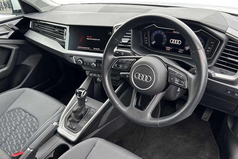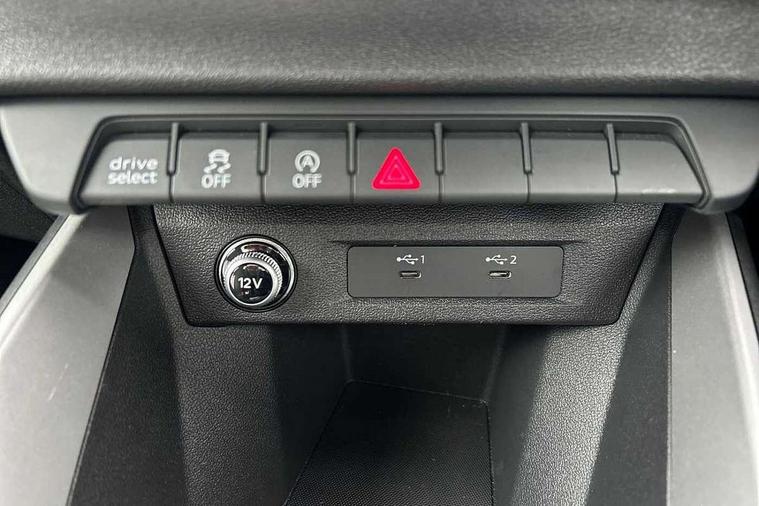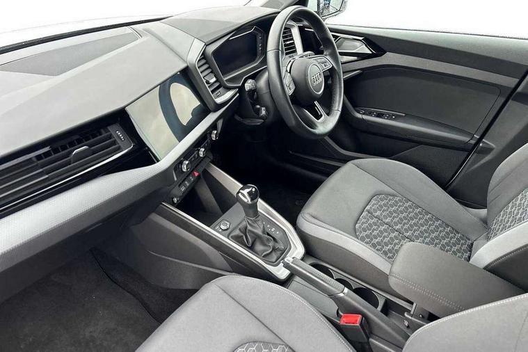 10.25" Digital instrument cluster display classis style instrument dials + speed, odometer, time, outside temperature, telephone menu + fuel level warning, Audi drive select - power steering assistance + engine + gear shift 3 preset modes (auto, dynamic, efficiency and an Individual mode), Audi smartphone interface with connect compatible smartphone via USB directly MMI display + Nav, music, third party apps controlled via MMI controller, Automatic start/stop system, Bluetooth interface, Cruise control, Driver's information system, Electromechanical power steering, Emergency e-call, Lane departure warning system, Rear parking sensor, Service interval indicator, Speed limiter, Voice control system, Washer fluid level indicator, Dynamic suspension, 2 x USB type C connection points, 6 passive loudspeakers, DAB Digital radio, MMI radio plus with 10.1" colour MMI display screen and MMI touch, Auto dimming rear view mirror, Body coloured bumpers, Body coloured door mirrors, Electric front and rear windows, Electrically adjustable, heated, folding door mirrors with integrated LED side indicator, Front side air inlets in grained matt black and C frame in anthracite black, Heat insulating glass windscreen and side windows, Heated rear windscreen, High level LED brake light, LED headlights with LED rear lights + dynamic rear indicators + headlight adjustment and high beam, turning light + LED daytime running lights, Radiator grille and rear diffuser in matt anthracite black, Radiator protective grille frame in matt aluminium silver, Rain and light sensors, Rear fog lights, Rear side wing doors, Rear wiper, Side front spoiler lips in grained matt black, 12V socket in centre console with two cup holders, 3 rear seats with headrests, 3 seat bench in 2nd row, 3 spoke leather multifunction plus steering wheel, 40:60 Split folding rear seat or folded fully, Black front and rear floor mats, Door sill trims with aluminium inlay, Driver and passenger seat with manual height adjust with forward and backwards adjustment, Front head restraints, Front passenger seat, Grey cloth headlining, Height and reach adjustable steering wheel, ISOFIX child seat mounting for front passenger and outer rear seats including top tether attachment point of outer rear seats, Leather gear knob with aluminium trim, Leatherette handbrake grip, Luggage compartment light with front and rear reading lights, Manual air conditioning, Manually adjustable lumbar support in front seats, Novum cloth upholstery with front sport seats, Luggage compartment pack - A1, 3x3 point rear seatbelts, Audi pre-sense front with pedestrain and cyclist recognition, Brake assist function, Driver and front passenger airbag with front side and head airbags, Electronic Stability Control including ABS, EBD, ASR and EDL, Front passenger airbag deactivation switch, Hill hold assist, Manual rear child locks, Seatbelt height adjustment for front seats, Seatbelt monitoring, Tyre pressure warning light, Warning triangle and first aid kit, Anti theft alarm, Anti theft wheel bolts and loose wheel warning, Immobiliser, Remote central locking with 2 foldaway keys, Aluminium trim for control switches, air vents and digital instrument cluster, Black dashboard, Silver grey accent areas including air vents, door handle recesses and centre console in diamond paint finish, Slate grey inlays polygon structure in fine paint finish,