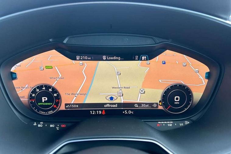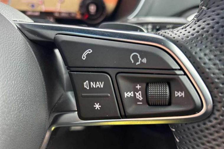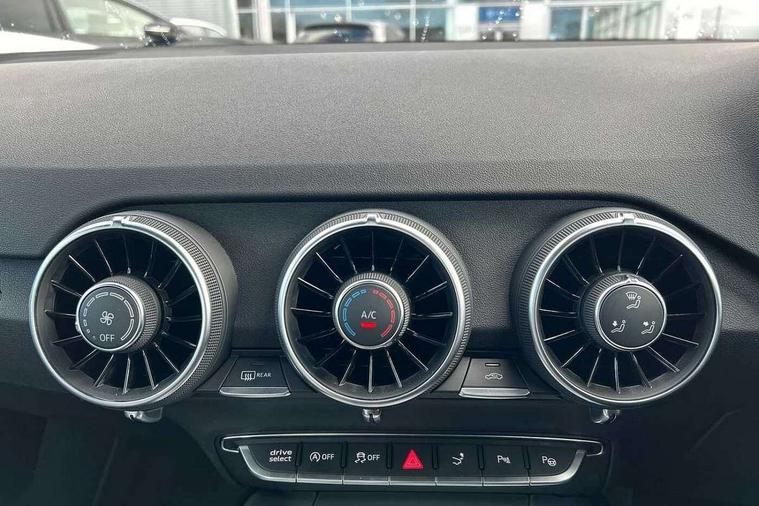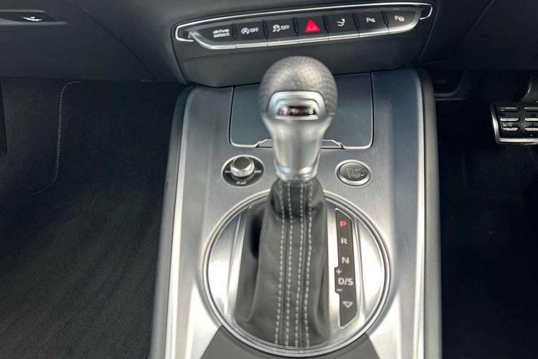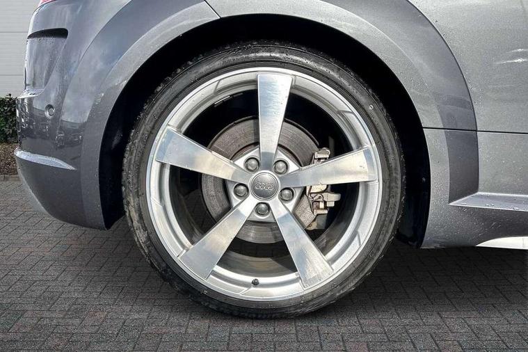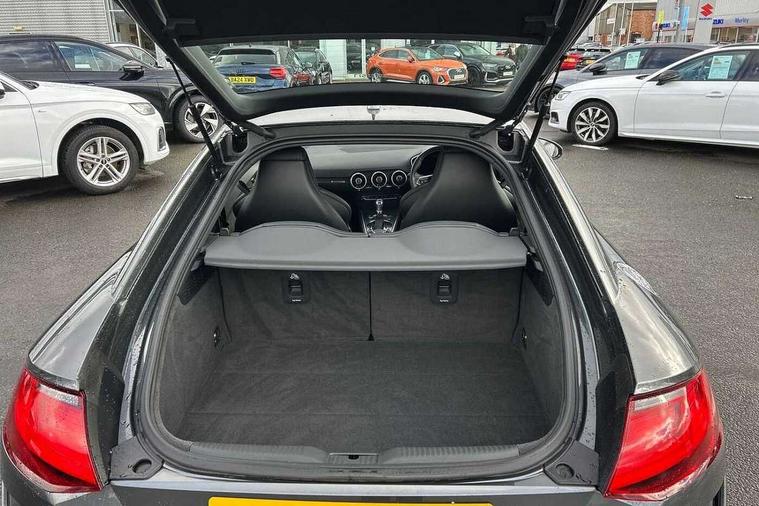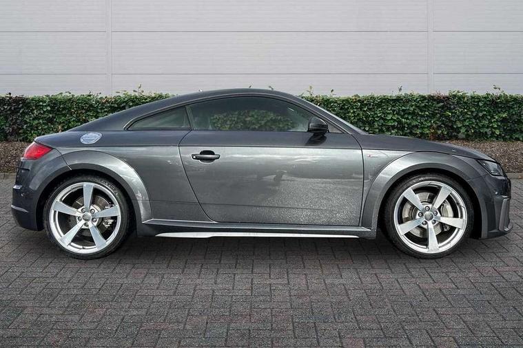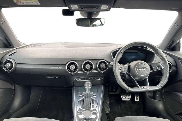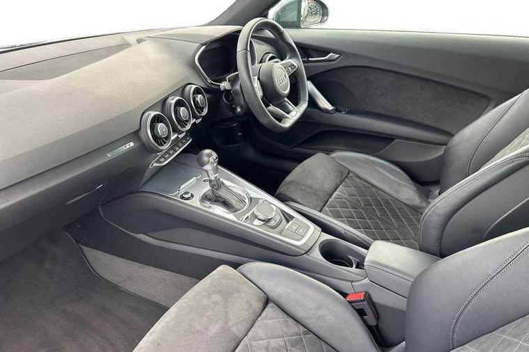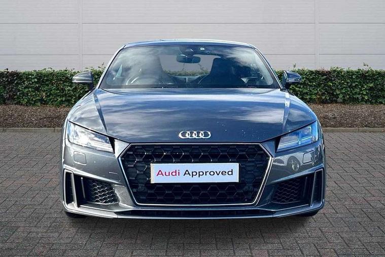 Audi active lane assist, Audi drive select with 4 Pre configured modes, Audi virtual cockpit - 12.3" high-resolution LCD display with fully customisable instrument cluster, Cruise control + speed limiter, MMI touch panel, Mobile phone preparation with bluetooth interface, Progressive power assisted steering, Service interval indicator, Start/Stop system with energy recuperation, TP memo, S line sports suspension, AM/FM radio, Audi music interface, Bluetooth audio streaming, DAB Digital radio, MMI Radio with CD player and SD/XC card slot, Auto dimming rear view mirror, Auto headlight range control, Body colour bumpers, Body colour electrically adjustable and heated door mirrors with built in LED side indicators, Dynamic rear indicators, Electric folding door mirrors, Electric front windows, Front fog lights, Green tinted heat insulating glass, Headlight wash system, High gloss black radiator grille, LED daytime running lights, LED headlights with LED rear lights + dynamic rear indicators, Light and rain sensors, Retractable rear spoiler, S line badges on front wings, S Line body styling, S Line front and rear bumpers, S line rear diffuser with platinum grey insert, S line sill plates, Sunband for windscreen, 12V socket, 3 spoke flat bottomed high multi-function leather sport steering wheel with gearshift paddles, 4 way electric lumbar support for driver and front passenger, Air conditioning, Black headlining, Door sill trims with S line logo, Extended aluminium look with stainless steel pedals, Front centre armrest, Front super sports seats, Heated front seats, Height adjustable driver's seat, Height adjustable front head restraints, Height/reach adjust steering wheel, ISOFIX child seat mounting for front passenger seat with airbag deactivation, Perforated leather gearknob, Rear head restraints, Rear top tether child seat ISOFIX attachment, S Line badge on steering wheel, Split folding rear seat, Tool kit, Top tether anchor plate for isofix child seat, Non smoking pack - TT/TT RS, 3 point front seat belts, ABS, ASR traction control, Brake energy regeneration, Curtain airbags, Driver and front passenger airbag with front passenger airbag deactivation, EDL traction control, Electromechanical parking brake, ESP, First aid kit, Front side airbags, Head airbags, Hill hold assist, Seatbelt warning, Tyre pressure warning, Warning triangle, Anti theft alarm, Anti theft wheel bolts, Immobiliser, Keyless Go, Remote central locking, Matt brushed aluminium inlays, Tyre repair kit,