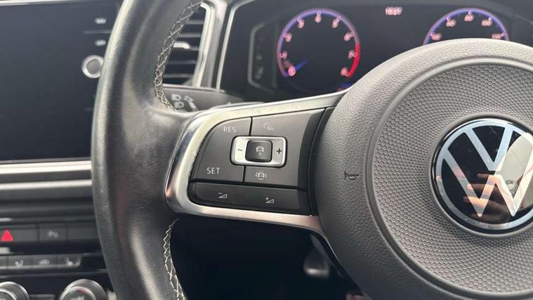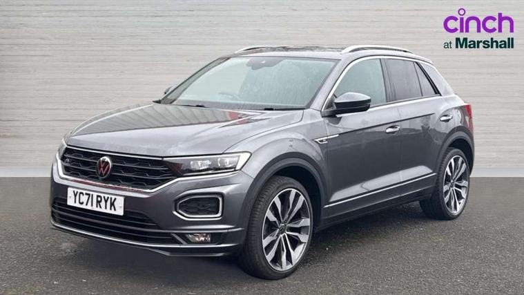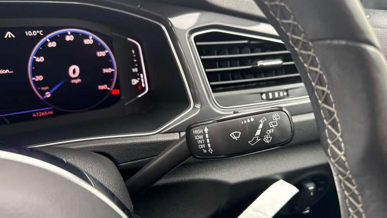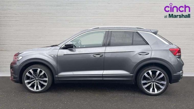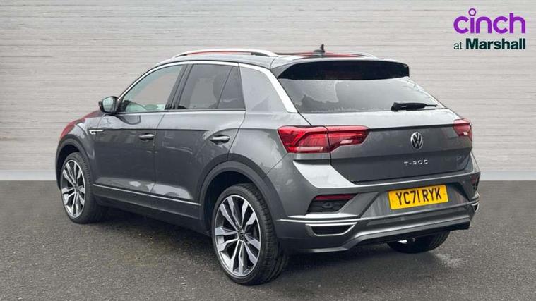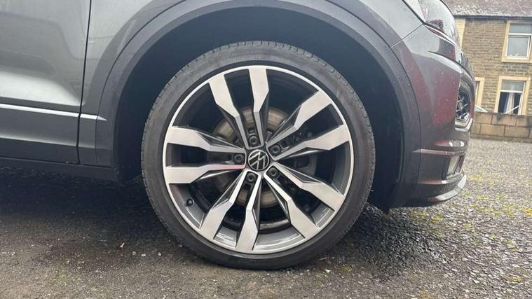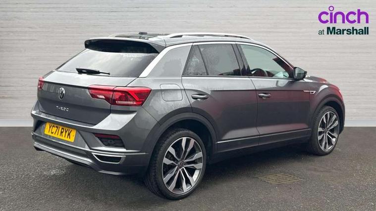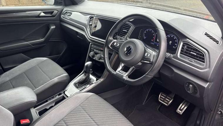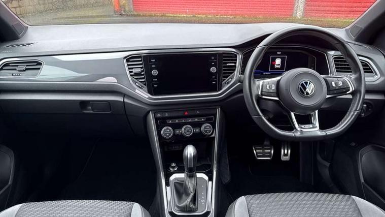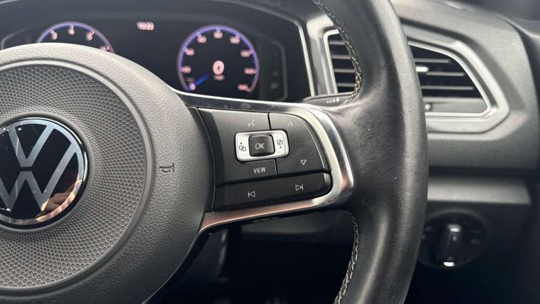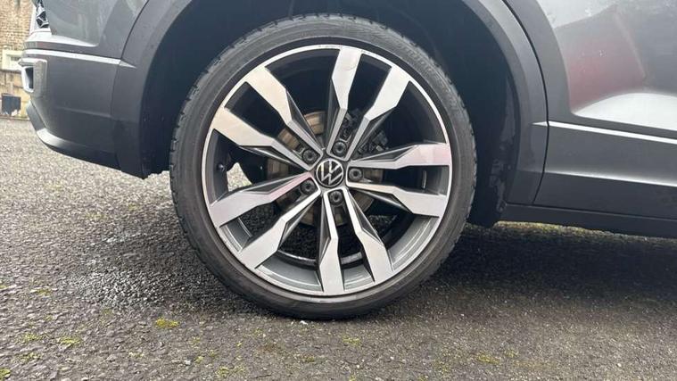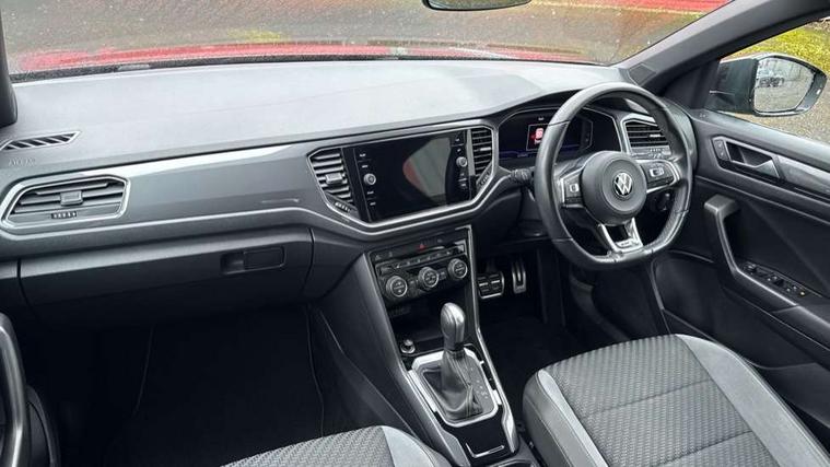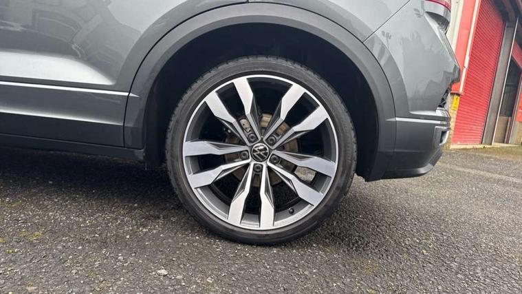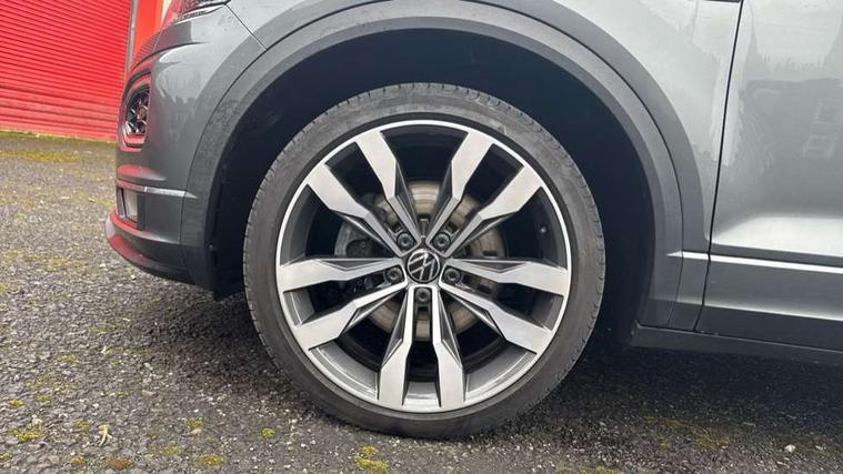 'Lights On' Reminder warning buzzer, Adaptive cruise control, Bluetooth telephone and audio connection for compatible devices, Car information display, Digital Cockpit Pro - Active info display, Driver alert system with audible and visual fatigue detection system, Driver tips and journey analysis, Emergency call service, Lane assist with warning text instrument cluster, Modified key software - reduce switch off time for key status change to Long no motion, Multifunction camera, Multifunction computer with visual gear change recommendation for fuel consumption, Navigation system discover media including streaming and internet, Service interval indicator, Think blue trainer driver tips and journey analysis, Traffic sign recognition, Voice activation, Warning sound and light for front seatbelts unfastened, Wireless app connect for apple carPlay, Battery regeneration during braking, Rear shock absorption for sports version, Start/stop function with battery regeneration, DAB Digital radio, Disk brakes in front, Diversity antenna for FM reception, Music playback - MP3, WMA and AAC files, Premium USB cable in choice of either Apple or Android smartphone compatibility, SD card slot, Simultaneous pairing of 2 compatible mobile devices, SMS functionality - read, compose and send SMS messages using touch-screen display, Storage compartment with longitudinal and height adjustable in armrest and two rear air vents, Three route options - Fast, Short, Eco, Title and cover art display, USB-C Interface and USB charging socket, Auto dimming interior rear view mirror, Automatic coming/leaving home lighting function and daytime running lights, Automatic hazard lights activation under emergency braking, Black grained lower door protectors, Body colored door lower parts, Body colour door handles, Body colour rear roof spoiler, Chrome effect left and right trapezoid exhaust tailpipe fascia surround, Chrome plated moldings, Chrome trim on upper and lower radiator grille, Dusk sensor, Dynamic headlight range control with self adjusting whilst driving, Electrically foldable, adjustable and heated door mirrors with puddle lights and reverse activated kerb-view adjustment on passenger's door mirror, External USB type C socket and charging sockets, Front and rear electric windows, Front fog lights with static cornering function, Front windscreen wiper with intermittent wipe and 4 position delay, Fully galvanised body, Heated rear window, Heated windscreen washer jets, High level 3rd brake light, LED darkened rear light clusters, LED headlamps with automatic range adjustment and unique signature LED separate daytime running lights, LED rear number plate lights, LED tail lamp rear comination lamps, Privacy glass, R-Line design body coloured bumpers, Rain sensor, Rear tinted glass from B-pillar backwards approx 65% tinted, Rear wash/wipe with intermittent wipe setting, Silver anodised roof rails, Volkswagen roundel, 12V socket in centre console storage area, 3 rear head restraints, 4 load lashing points in luggage compartment, Aluminium pedals, Black roof lining and sun visors, Branded points of interest, Carbon flag cloth upholstery, Chrome plated radiator grille inserts, air vent surrounds and light switch surrounds, Climate control - 2 zone electronic air conditioning with automatic air recirculation and allergy filter, Door and side trim panel, Door and side trim panel in foam film, insert in leatherette, Drawer under drivers seat, Front + rear carpet mats, Front centre armrest, Front cupholders x 2, Front seat back storage pockets, Front sports seats with R-Line logo on seat backrest, Glovebox, Heated front seats, Height adjustable front seats, Height/reach adjust steering wheel, Instrument lighting, white adjustable panel illumination, Interior light delay, Interior light in footwell, Isofix easy fit child seat preparation for 2 outer rear seats, Leather gearshift knob, Leather multi function sport steering wheel with gear change selection via paddle shift on steering wheel, LED interior light with switch off delay/dimmer and 2 front/rear LED reading lights, Load through provision with single cup holder when folded down, Luggage compartment cover, removable, Luggage compartment lighting, R Line badge, Scuff plates in door apertures, Split folding rear seat backrests with centre armrest, Stainless steel pedals, Storage compartment in left and right luggage area, Storage compartment in rear doors, Storage compartments in driver and front passenger doors, Sunvisors with illuminated vanity mirrors, Unique R Line door sill protectors, White ambient lighting, R line styling pack - T-Roc, Winter pack - T-Roc, 3 rear three point seatbelts, ABS, Curtain airbags, Driver and front passenger safety-optimised head restraints, Drivers and front passengers airbags with passengers deactivation switch, Drivers seatbelt reminder, Electronic parking brake with auto hold, Electronic stability control (ESC) includes ASR, EDL, EDTC and trailer stabilisation function, Front assist with city emergency braking and pedestrian monitoring, Front seat side impact airbags, Hill start assist, Predictive pedestrian protection, Rigid safety cell with front and rear crumple zones, Single tone horn, Three point height adjust front seatbelts + pretensioners, Tyre pressure loss indicator, Ventilated front and rear disc brakes, Volkswagen roadside assistance, Alarm with remote central locking and interior protection, Electronic engine immobiliser, Remote central locking with SAFELOCK, radio remote control with 2 remote control folding keys, Shadow grey decorative inserts in dash, centre console and door panel, 19" Suzuka alloy wheels with low rolling resistance tyres and anti wheel bolts,