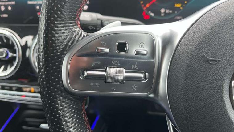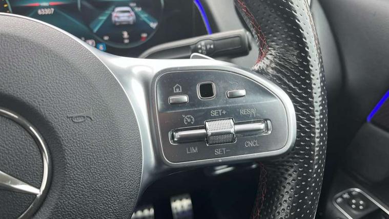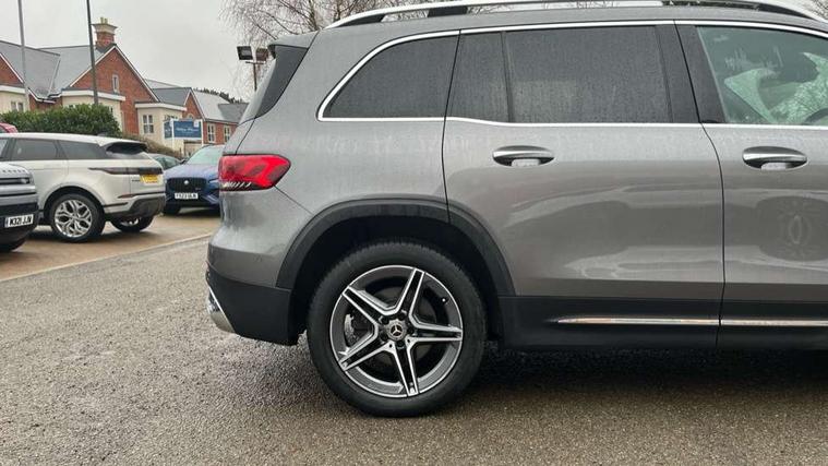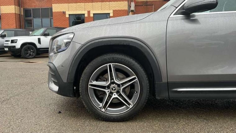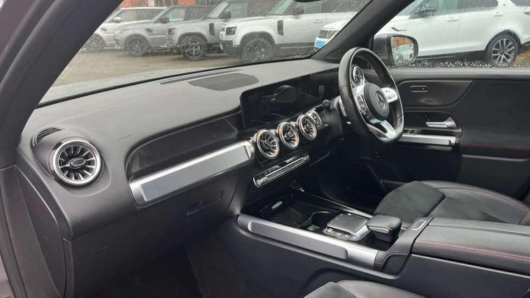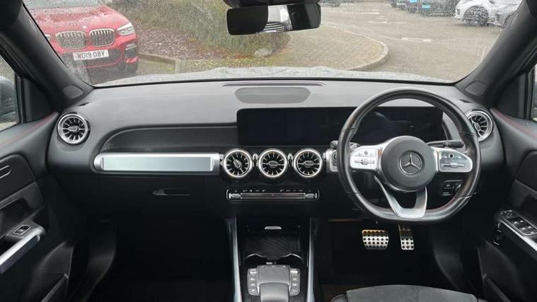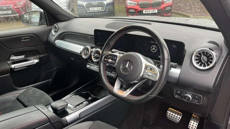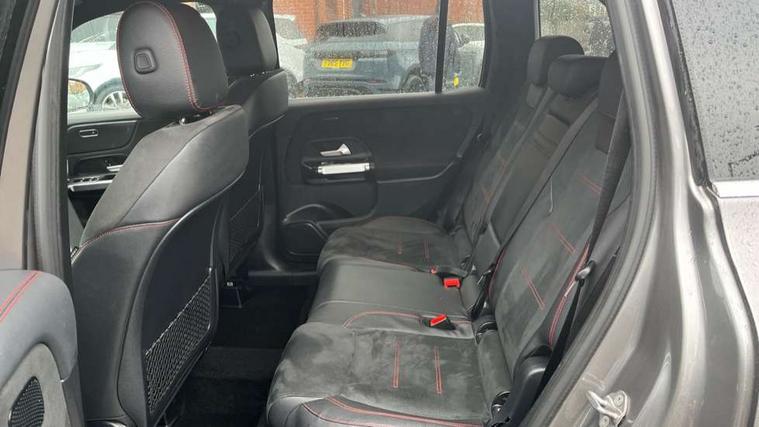 10.25" Digital instrument cluster display screen, 10.25" Digital media screen display, Active lane keeping assist, Attention assist - Monitors steering behaviour and long journey fatigue, Brake pad wear indicator warning light, Car wash mode, Cruise control with limiter, DYNAMIC SELECT with a choice of driving modes (ECO, Comfort, Sport and Individual), ECO start/stop function, Fluid level warning indicator for fuel, oil, coolant and washer fluid, Hard disk navigation, Hey Mercedes Voice activation, Lamp failure indicator, Mercedes me connect including emergency call system, accident recovery, breakdown and maintenance management, Mercedes me remote services, Outside temperature gauge, Owners manual and service booklet in English, Parameter steering system, Pre-installation of private car share, Radio aerial integrated into front and rear windshields, Service indicator (ASSYST), Smartphone integration with Apple CarPlay and Android auto, Speed limit assist, Trip computer in multifunction display with current consumption indicator, Comfort suspension, Rear axle multi-link, DAB digital radio tuner, MBUX multimedia system with DAB digital radio and touchpad including satellite navigation, Mercedes Benz sound system (225 W) with 10 speakers, 1 central speaker, speakers on doors, a tweeter on door, one sub woofer + boost amplifier, Pre installation for Mercedes Benz Link, USB (type C) port in front stowage compartment, USB (type C) ports (2) in stowage compartment, Adaptive brake lights, Aerial for GPS, AMG bodystyling door panels black grained with chrome plated inserts, AMG bodystyling front apron with chrome splitter, AMG bodystyling rear apron with diffuser optics and chrome trim element, AMG specific front and rear bumper including underride guard in high gloss chrome, Beltline strips and weather strip in chrome, Body coloured door handles with chrome insert for keyless entry, Body coloured door mirror caps, Electric adjustable and heated door mirrors with integrated LED side indicators, Exhaust system with dual flow exhaust pipes (non-functional), Front and rear electric windows, Headlamp assist automatic headlamp activation, Heated glass rear windscreen + timer control, High level LED third brake light, Interior mirror with black reading lamps and frameless, LED high performance headlamps with integrated LED daytime running lights, LED tail lamp, Polished aluminium roof rails, Privacy glass with dark tinting on rear side windows and rear window, Radiator grille with pins in chrome and single louvre with chrome insert, Rain sensor windscreen wipers, Rear fog lamp, Rear side wing doors, Rear wing door, Rear wiper, Two visible tailpipe trim elements exhaust, 3 seat bench in 2nd row, 3 spoke multifunction sport steering wheel in nappa leather, Air conditioning - Two zone thermotronic luxury automatic climate control with display, AMG sports pedals with brushed stainless steel surfaces and black rubber studs, Artico man-made leather/Microfibre Dinamica upholstery with red contrast stitching, Automatic child seat recognition sensor, Black floor mats with AMG lettering, Black roof lining, Fore/aft adjustment rear seats, Freight packaging with tie-down hooks, Front centre armrest with stowage, Front door sills with illuminated changeable cover, Front passenger grab handle with brushed side silver chrome, Front sports seats with adjustable head restraints, Galvanished gear shift paddles on steering wheel, Heated front seats, Height/reach adjustable steering column, Interior lighting - 64 colour Ambient lighting, Luggage net on driver/front passenger seat backrest, Rear armrest with two integral cup holders for drinks, Rear seat easy entry, Single front passenger seat, Stowage compartment in centre console, Stowage compartment with retractable cover, Third row of seats for two people on rear seat, Touchpad on center console, Twin front cup holders, Two outer rear seat isofix and top tether child seat fixing points, Interior lighting with light and sight pack - GLB, Keyless go pack - GLB, Mirror pack - GLB, Parking pack - GLB, Seat comfort package - GLB, 3 rear 3 point seatbelts, Active bonnet pedestrain safety measure which detects an impact and raises bonnet by 65mm, Active brake assist includes forward collision warning system with autonomous braking, Adaptive brake assist with hold function and hill start assist, Airbags - kneebag for driver, Anti-lock braking system (ABS) with brake assist, Childproof locks manually operated for rear doors and electrically operated for rear power windows, Crash responsive emergency lighting, Curve dynamic assist, Driver and front passenger head and sidebags, Driver and front passenger windowbags, Dual stage driver and front passenger airbags, Electronic parking brake, Electronic stability programme with acceleration skid control, Front and rear seatbelt reminder, Front brake callipers with Mercedes Benz lettering, Front passenger seat occupancy sensor, Tyre pressure monitoring system, Warning triangle and first aid kit, Remote central locking and crash sensor with emergency opening function, Thatcham category 1 alarm system with immobiliser and interior protection, Urban guard vehicle protection - Anti theft alarm system, tow away protection with visual and acoustic warning and alarm siren, Vehicle key with decorative surround in chrome, Black air vents with chrome surround, Carbon structure trim, 19" AMG 5 twin spoke light alloy wheels painted in tantalite grey with high sheen finish, Summer tyres, Tirefit tyre sealant kit,