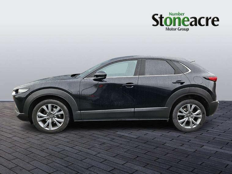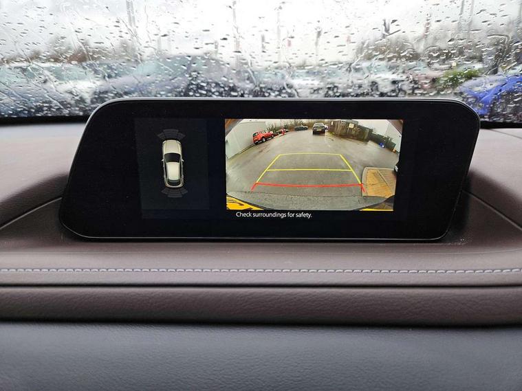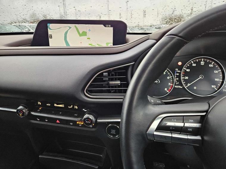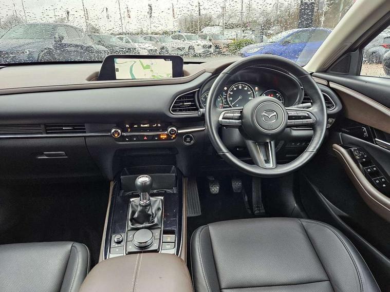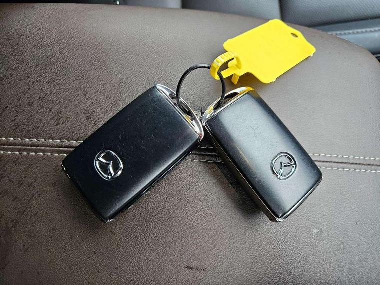 7" TFT Colour driver instrument panel display, 8.8" Colour centre touch screen display with Mazda Connect infotainment, Adaptive cruise control (Mazda radar cruise control), Apple car play/Android Auto, Blind spot monitoring with rear cross traffic alert, Driver attention alert system, E-call with GPS, Emergency stop signalling system, Engine start/stop button, Front and rear parking sensors, Integrated bluetooth, Integrated Mazda navigation system, Intelligent speed assist, Lane keep assist system (LAS) with Lane departure warning system (LDWS), Mazda connected services, PAS, Power lift gate, Reversing camera, Service indicator, Tailgate, Traffic sign recognition, Trip computer, Windscreen projected colour active driving display (HUD), Cylinder Deactivation, i-stop, 2 USB charging ports in front inner central armrest, AM/FM and DAB radio, Bose surround sound system with 12 Speaker, Bose center point, Bass match and audio pilot technology, Multimedia Commander including separate volume dial, Steering wheel mounted audio/bluetooth controls, Adaptive LED Headlights, Auto dimming driver's door mirror, Auto headlight levelling, B-pillar and C-pillar garnishes in piano black finish, Body coloured, electrically adjustable, heated auto power folding door mirrors with integrated indicators, Chrome finish signature wing in front grille, Coming/leaving home lighting function, Door mirrors with adjustable memory and tilt-down function when reversing, Dual chrome exhaust, Dusk sensing headlights, Electric front/rear windows with one touch auto up/down, Frameless auto dimming interior rear view mirror, Front kodo turn signal, Gloss black front grille, Gloss black rear roof spoiler, High beam assist, LED signature daytime running lights, Privacy glass (rear side windows and rear screen), Rain sensing front wipers with adjustable speed and intermittent wipe, Rear fog lights, Rear side wing doors, Rear wiper, Signature LED rear combination lights, Third brake light, 12V power outlet in centre console, 3 seat bench in 2nd row, 60/40 split fold down rear seats, Chrome horn pad ring, Chrome interior trim accents with steering wheel centre bezel, surround of engine start / stop button and glove box handle, Dashboard, door cards and front centre armrest in rich brown leather, Driver and front passenger visors with covered vanity mirror and driver ticket holder, Driver's seat, power tilt, slide, recline, height and lumbar adjustment, Driver, front passenger and two rear door storage, Driver, Front passenger and two rear grab handles with coathooks, Dual zone climate control air conditioning with rear air vents, Folding rear centre armrest with two cup holders, Front and rear (x3) head restraints, Front and rear LED lighting, Front armrest, Front centre storage with two cupholders with lid, Front passenger seatback pockets, Front passengers seat manual slide, recline and height adjustment, Gear shift indicator, Glovebox illumination, Heated front seats with 3 stage setting, Heated steering wheel, ISOFIX child seat anchorage points attached on outer rear seats, Leather upholstery with interior accents, Leather wrapped gear shift knob, Leather wrapped steering wheel with telescopic and tilt adjustment, LED luggage compartment lighting, Light roof headlining and pillars, Rear armrest inner material in cloth, Roof mounted sunglasses holder, Single front passenger seat, 3 point ELR front seat belts x2 with pretensioners, 3 point ELR rear seat belts, Anti-lock braking system (ABS), Drivers knee airbag, DSC - Dynamic Stability Control, Electronic parking brake with auto disengage function and auto hold function, Front and rear curtain airbags, Front dual stage driver and single stage front passenger airbags, Front passenger airbag cut-off switch, Front side airbags, Front smart city brake support, G-Vectoring control plus, Hill launch assist, Manual child lock in rear doors, Mild Hybrid system with regenerative braking, Seatbelt reminder for driver/front passenger and rear seats, Traction control system (TCS), Tyre pressure monitoring system (TPMS), Remote central locking with deadlocking and automatic door lock when driving, Smart keyless entry, Thatcham accredited alarm and immobiliser, Dark vinyl door panel inserts, 18" Silver alloy wheels, Emergency tyre repair kit,