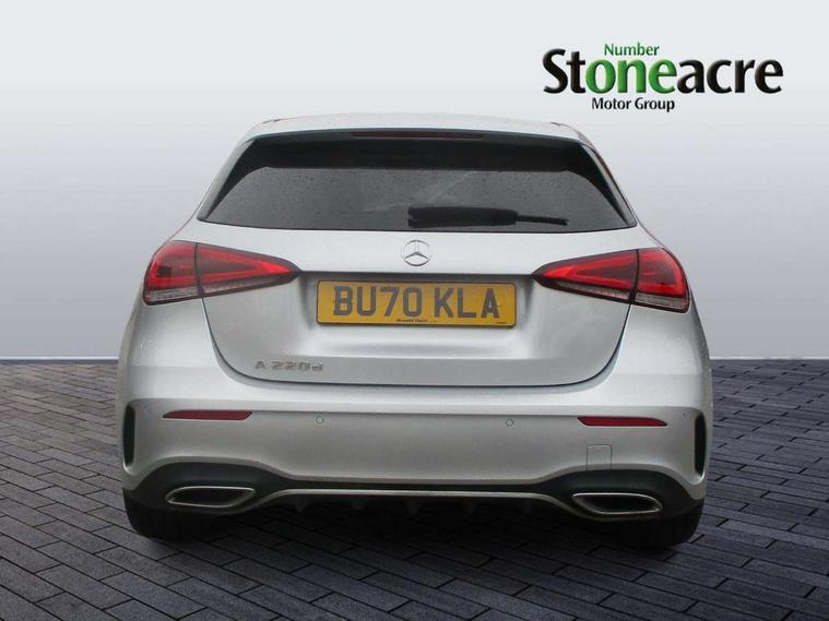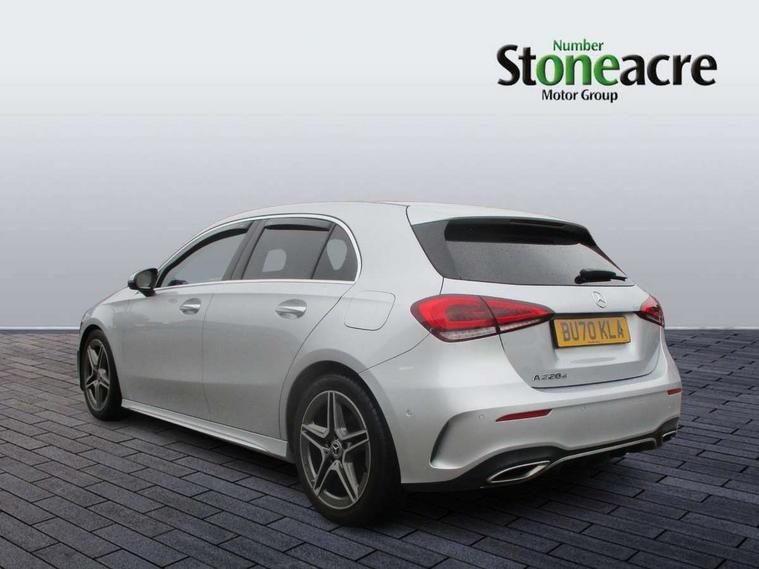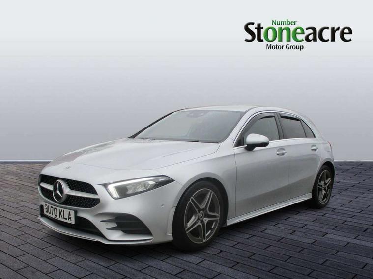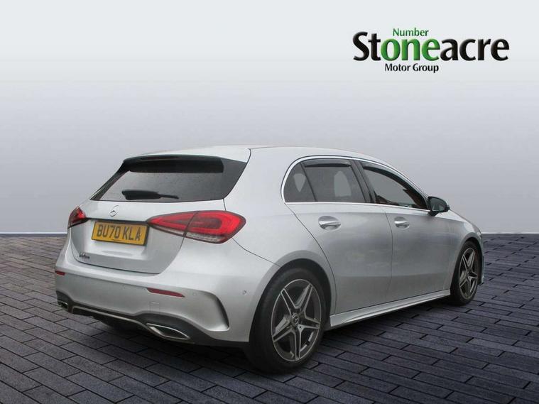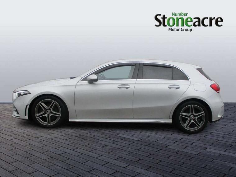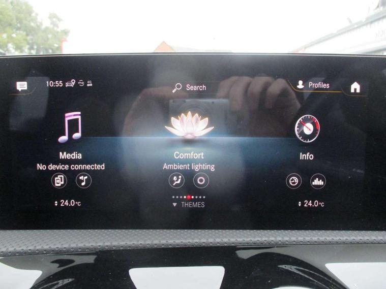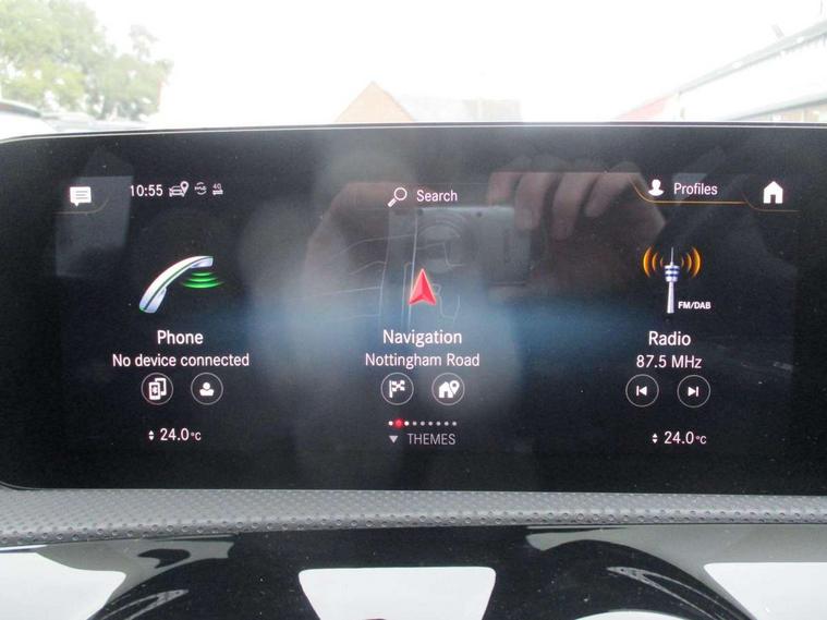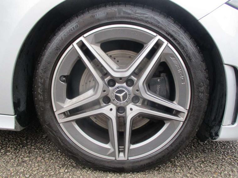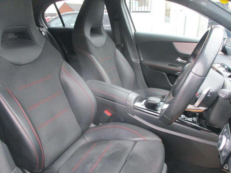 10.25" Digital instrument cluster display screen, 10.25" media display, 180 degree rear view camera with parking guidelines, Active lane keep assist, Active park assist with parktronic system including front and rear parking sensors, Attention assist, Brake pad wear indicator warning light, Car wash mode, Cruise control + speed limiter, Direct steering, Dual bluetooth interfaces, DYNAMIC SELECT with a choice of driving modes (ECO, Comfort, Sport and Individual), ECO start/stop function, Fluid level warning indicator for fuel, oil, coolant and washer fluid, Hard-disk navigation, Hey Mercedes Voice activation, Lamp failure indicator, MBUX augmented reality for navigation, Mercedes me connect including emergency call system, accident recovery, breakdown and maintenance management, Outside temperature gauge, Owners manual in English, Pre-installation for private car sharing, Pre-installation for Vehicle Monitoring, Pre-installation for Vehicle Setup, Preinstallation for Mercedes Benz link, Service indicator (ASSYST), Smartphone integration with Apple CarPlay and Android auto, Speed sensitive power steering, Trip computer, Wireless charging, Lowered comfort suspension, Rear axle multi-link, 10 speakers, 2 USB ports (type C) in rear stowage compartment and one in front of center console, DAB Digital radio, MBUX multimedia system with DAB digital radio and touchpad including satellite navigation, Mercedes-Benz advanced sound system - 225W, 4 Electric Front and Rear windows, Adaptive brake lights, AMG bodystyling - Front apron with splitter in chrome, rear apron with chrome trim and chrome visible trim elements in tailpipe, Black weather strip, Body colour bumpers, Body colour door handles, Body colour side skirt, Body coloured door mirrors, Chrome beltline trim, Diamond radiator grille with chrome pins and silver louvre + chrome insert, Electric adjustable and heated door mirrors with integrated LED side indicators, Exhaust system - Twin visible tailpipes in polished stainless steel, Headlamp assist automatic headlamp activation, Heated glass rear windscreen + timer control, Illuminated front door sill panels with Mercedes-Benz lettering, LED high performance headlamps with integrated LED daytime running lights, LED tail lamp, LED third brake light, Privacy glass, Radio aerial, Rain sensing windscreen wipers with two sensitivity settings, Rear fog lights, Rear wiper, Window line trim strip in chrome, 3 Spoke flat bottom leather multi function steering wheel with perforated leather in grip area, 40:20:40 split folding rear seats, Artico man-made leather/Microfibre Dinamica upholstery with red contrast stitching, Auto Mercedes-Benz child seat recognition sensor, Black air vents with surround in silver chrome, Black roof lining, Brushed stainless steel sports pedals with rubber studs, Controller on centre console with chrome surround, Floor mats with stitched edging and AMG lettering, Front centre armrest with storage compartment, Front seat backs luggage nets, Front seat cushion length adjustment, Galvanished gear shift paddles on steering wheel, Heated front seats, Height/reach adjustable steering column, Interior lighting - 64 colour Ambient lighting, Interior mirror with reading lamps in black and frameless, Manual height adjustable front seats, Rear armrest with 2 cupholders, Rear head restraints, Seat occupancy sensor for front passenger seat, Sports seats with integrated headrests, Stowage compartment in centre console with retractable cover, Sunvisors with illuminated vanity mirrors, Touchpad on center console, Twin front cupholders, Two zone thermotronic luxury automatic climate control, Light and sight pack - A Class, Mirror package - A Class, Seat comfort pack - A Class, 3 rear 3 point seatbelts, ABS with Brake Assist, Active bonnet, Active brake assist includes forward collision warning system with autonomous braking, Adaptive brake assist with hold function and hill start assist, Black seatbelts, Childproof locks manually operated for rear doors and electrically operated for rear power windows, Crash responsive emergency lighting, Driver and passenger head and side airbags, Drivers knee airbag, Dual stage driver/passenger airbags, Electronic parking brake, ESP curve dynamic assist, ESP with ASR, Front and rear seatbelt reminder, Front brake callipers with Mercedes Benz lettering, ISOFIX and top tether child seat fixing points in two outer rear seats, Tyre pressure monitoring system, Warning triangle and first aid kit, Window airbags, Alarm system/interior protection/immobiliser, Keyless entry lock/unlock, Keyless Go, Remote central locking and crash sensor with emergency opening function, Urban guard vehicle protection system with immobiliser and interior protection, Light aluminium with longitudinal grain interior trim, 18" AMG 5 twin spoke light alloy wheels in titanium grey with highsheen finish, Summer tyres, Tirefit sealant kit,