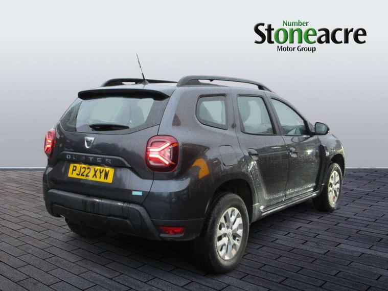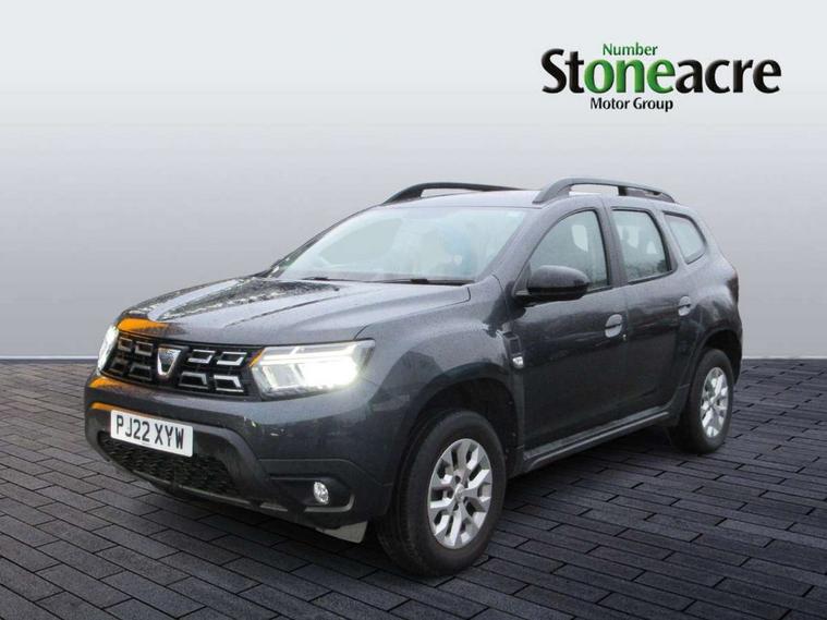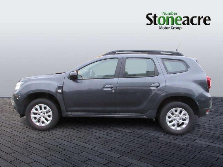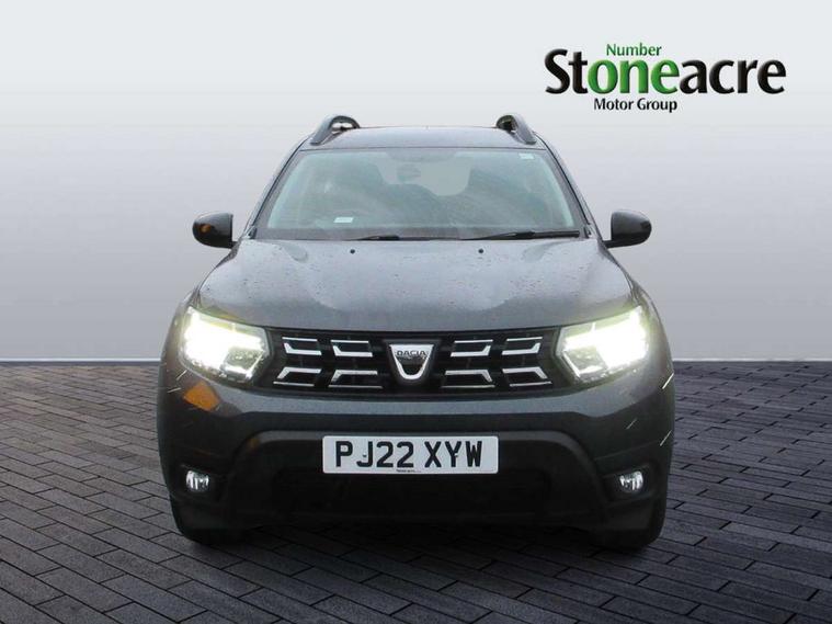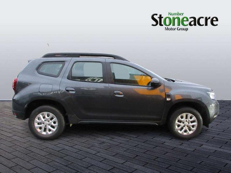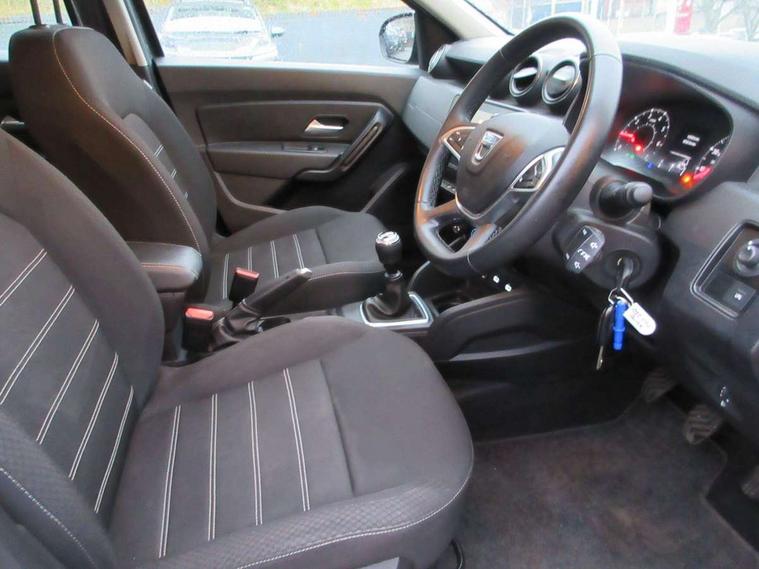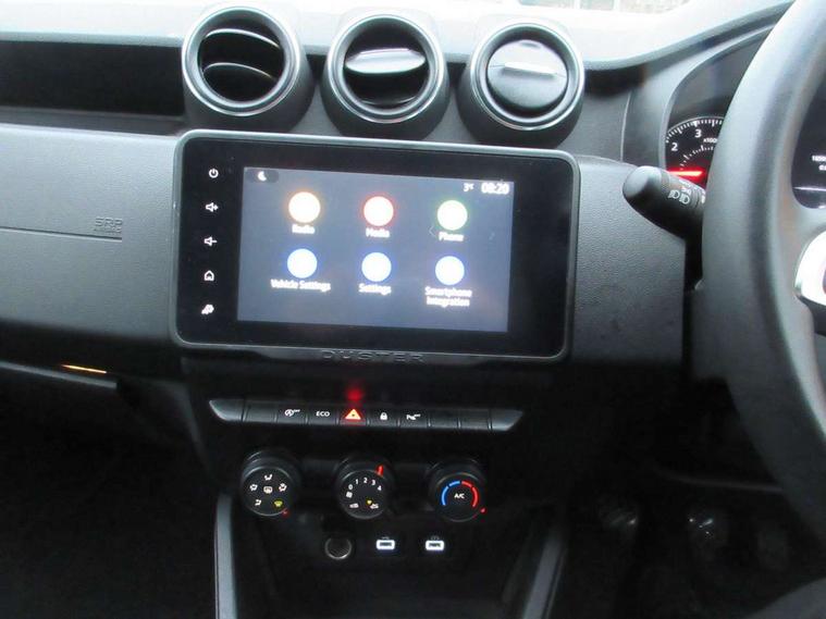 4x4 monitor with altimeter, Compass functional at 0km/h, Cruise control and speed limiter, Dacia instrument cluster, eCall emergency system, Eco mode, Electric power assisted steering, On board computer, odometer, trip computer, average fuel consumption, average speed, service indicator, outside temperature gauge, Rear parking sensors and reverse camera, Rev counter, Stop/start system, 8" Media display with smartphone replication, 2 usb sockets and 6 speakers, Dacia plug and radio/MP3/USB/bluetooth/DAB/steering wheel control, 3 speed windscreen wipers, Black door mirrors, Black longitudinal roof bars with Duster inscription, Black side sills, Black/satin chrome tailgate trim with Duster inscription in black background and lettering, Body coloured door handles, Chrome front grille with hot stamping, Chrome logo surround on steering wheel, Dusk sensor, Electric adjustable/heated door mirrors, Electric front windows, Electric rear windows, Front and rear body coloured bumpers, Front door sill protection strip, Front fog lights, Heated rear window, High level third rear brake light, LED automatically switched on - In main headlights, LED daytime running lights, Rain sensor, Rear side wing doors, Rear spoiler, Rear wash/wipe, Tinted windows, Underbody protection skid plates, Y shaped LED headlights with rear LED lights, 3 rear height adjustable headrests, 3 seat bench in 2nd row, 60/40 split folding rear seat, Backlighted steering wheel buttons, Boot light, Driver seat lumbar adjustment, Fabric decorative insert on door panels, Fabric upholstery, Front head restraints, Front passenger reading light, Gear shift indicator, Glovebox light, Height adjustable driver seat, Height adjustable front and rear headrests, Height and depth adjustable steering wheel, High centre console with driver armrest, Isofix points for child seats in both outer rear seats, Manual air conditioning, Map pocket on front seat backs, Passenger sunvisor with vanity mirror, Rear passenger reading light, Satin chrome interior door handles, Satin chrome lower steering wheel insert, Single front passenger seat, Soft feel leather steering wheel, 3x3 point rear seatbelts, ABS and Emergency brake assist, ASR traction control with Electronic stability control, Child locks on rear doors, Door open visual and audible warning, Driver airbag, Driver and passenger seatbelt not fastened - visual and audible warning, EBD - Electronic brakeforce distribution, Front passenger airbag, Front passenger airbag deactivation, Front seatbelt pretensioners, Front side airbags, Height adjustable front seatbelts, Hill start assist, Tyre pressure monitor, Remote central locking, Thatcham approved engine immobiliser, Dark carbon central console surround, Matt black central console fascia, Piano black decorative insert on door panels, Satin chrome air vent surround, 16" alloy wheels, Tyre inflation kit,