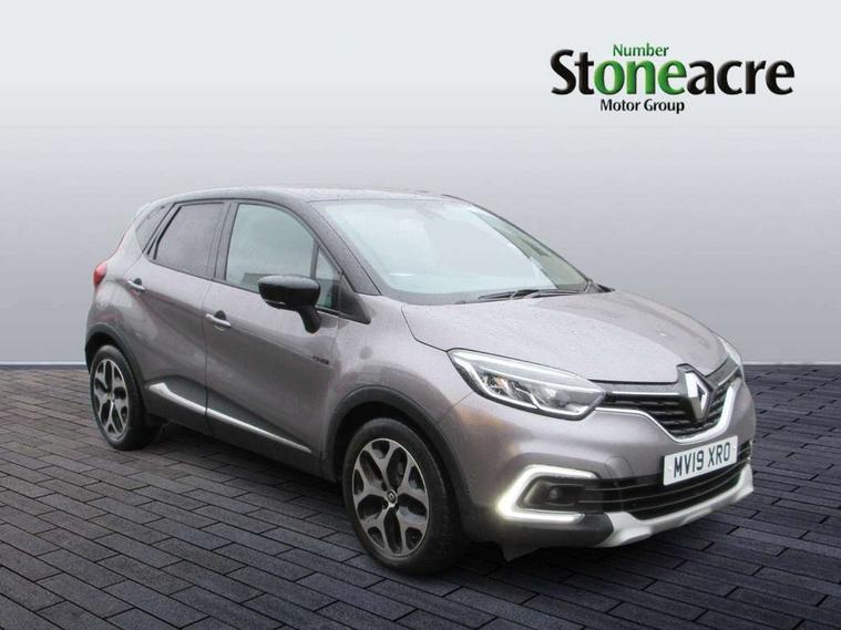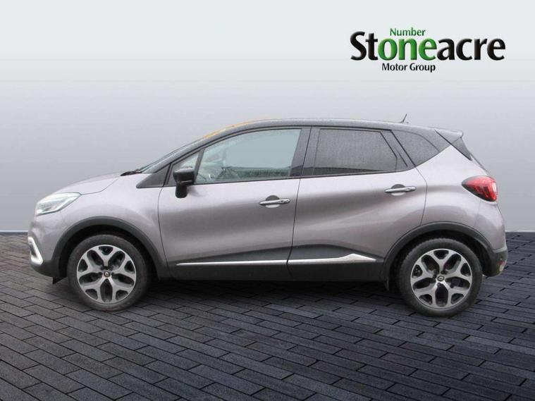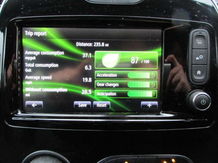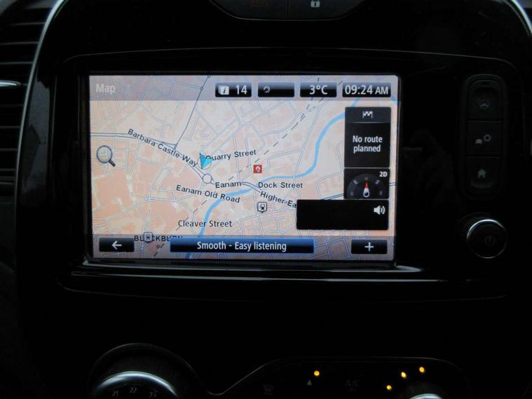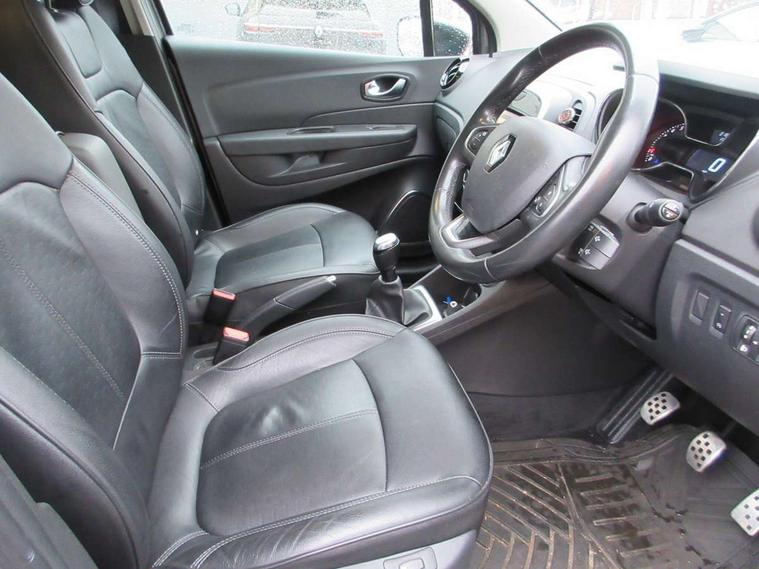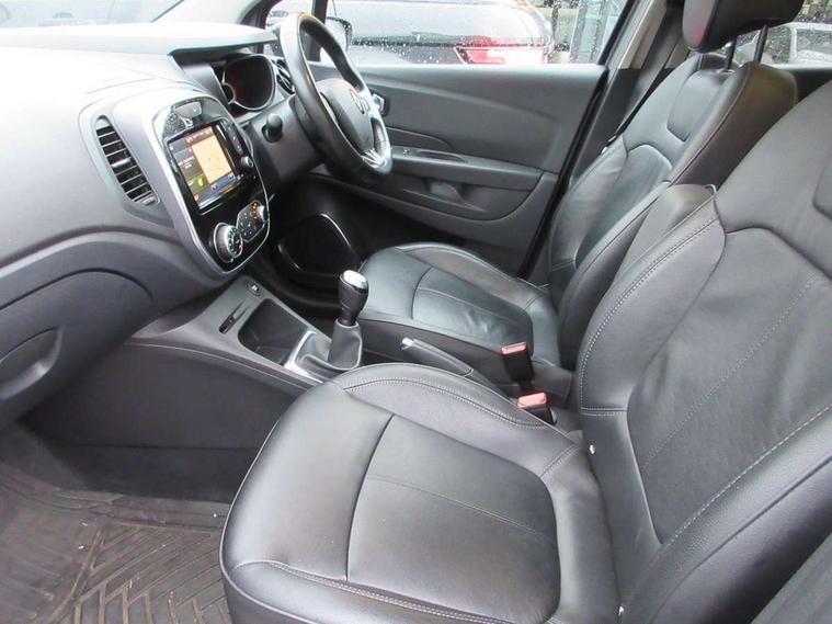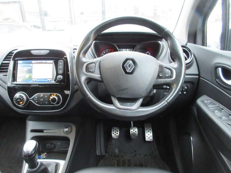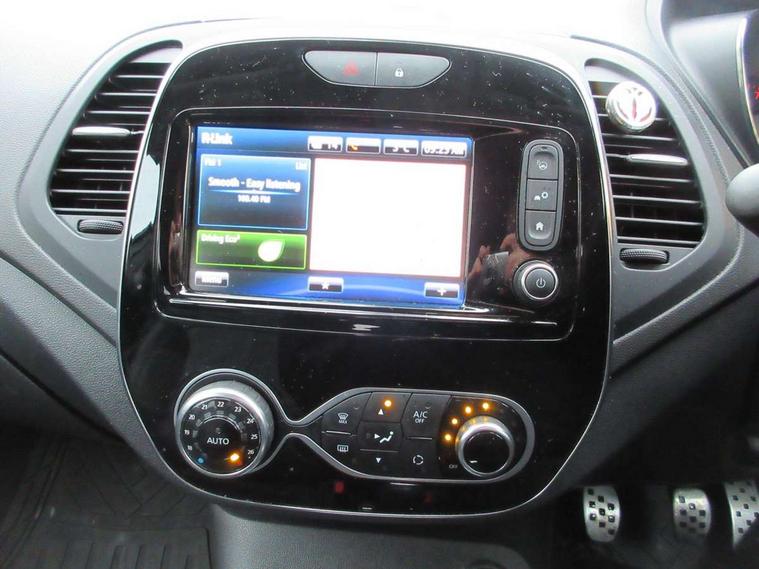 Cruise control + speed limiter, Eco mode, Handsfree parking with side moulding and blind spot warning, Smartphone cradle, Trip computer, Variable PAS, Auxiliary input socket, Body colour door handles, Body coloured bumpers, Electric adjustable/heated/folding door mirrors, Electric front windows + one touch + anti-pinch, Electric rear windows, Extra tinted glass in rear windows and tailgate, Grey front and rear skid plate, LED daytime running lights, LED front fog lights with static cornering light function, Rain sensitive wipers + automatic lighting, Rear wiper, Variable intermittent front wash/wipe, 12V Accessory socket, 3 rear headrests, 60/40 split folding rear seat bench, Automatic climate control with one touch demist function, Centre console storage tray, Compartment in glovebox, Front centre armrest, Front cupholder, Front seat backrest storage nets, Heated front seats, Heating system with pollen filter, Height adjustable driver's seat, Height adjustable front headrests, Height/reach adjust steering wheel, ISOFIX on front passenger and rear outer seats, Leather steering wheel and gear knob, Light harmony dashboard and door panels, Part leather/cloth upholstery, Removable storage between driver and passenger, Reversible boot floor, Storage area on top of dashboard, Storage compartments in doors, Storage space near handbrake, Variable boot floor, Exterior touch pack Chrome - Captur, Interior touch pack Chrome - Captur, Premium pack - Captur, Techno pack with front and rear parking sensors - Captur, 3 point seatbelts on all rear seats, ABS+EBA, Driver/Front Passenger airbags, ESC - Electronic Stability Control + traction control, Front passenger airbag deactivation, Front side airbags(head+thorax), Hill start assist, Rear door child safety locks, Seatbelt warning, Tyre pressure monitor, Automatic door locking, Deadlocking system, Hands free access with keycard and start button, RAID (Renault Anti-Intruder Device) with automatic door locking, Remote central locking, Thatcham Cat 2 engine immobiliser, 17" Emotion alloy wheels with black insert,