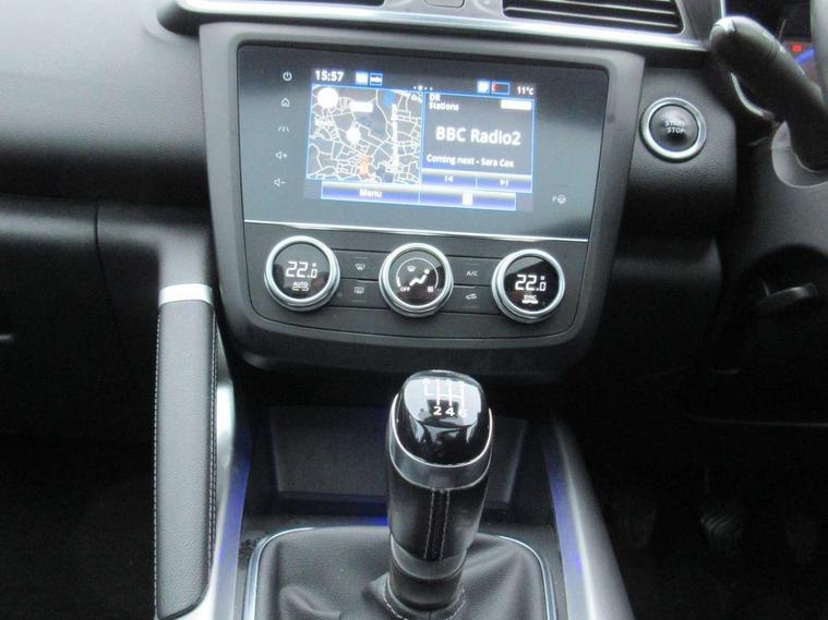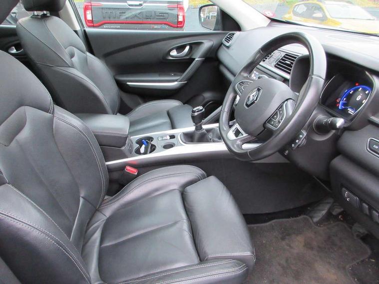 Blind spot warning with lateral sensors, Cruise control + speed limiter, Digital speedometer with 7 TFT screen, Door/boot open warning light, Eco mode, Exterior temperature indicator, Gear change indicator, Hands free parking system with 360 degree parking sensors, Lane departure warning system, Low fuel level warning light, Multi function trip computer, Oil level gauge, Over speed and traffic sign recognition, PAS, R-Link 2 Multimedia system + 7" touchscreen, TomTom + West European Map, DAB/FM/AM radio, bluetooth + hands free, USB/AUX, voice control, Rev counter, Smartphone integration, Bose sound system with 7 speakers/digital amplifier + 1 Subwoofer, Fingertip controls for audio system, Two rear USB sockets, Adamantium front and rear skid plates, Auto dimming rear view mirror, Automatic headlights, Automatic high/low beam, Automatic windscreen wipers with variable speed adjustment, Body colour door handles, Body coloured bumpers, Body coloured door mirrors, Bodyside mouldings with chrome inserts, Chrome fog light surround, Chrome front grille, Chrome roof rails, Chrome window surround, Electric adjustable/heated/folding door mirrors, Extra tinted glass in rear windows and tailgate, Fixed panoramic glass sunroof, Flank protection, Front and rear electric windows, Front and rear towing rings, Heated rear windscreen, Integrated C shape indicators with side repeaters, Integrated fuel filler cap, LED daytime running lights, LED front fog lamps with cornering function, LED high and low beam headlights with LED turn indicators, Rear wiper, Shark fin antenna, Side and boot kick plates, 12v socket in front, 3 height adjustable rear headrests, 3 seat rear bench, 60/40 split folding rear seat, Accessory power point, Adjustable dashboard illumination, Air recirculation system, Centre rear armrest with cup holder, Driver and front passenger seat cushion extension, Driver sunblind with illuminated mirror and ticket holder, Driver's seat with lumbar adjustment, Driver/passenger reading lights, Dual zone automatic climate control, Easy life quick folding rear seat, Electric adjust driver's seat, Front courtesy lights, Front footwell illumination, Front/rear floor mats, Heated front seats, Height adjustable front headrests, Height adjustable passenger seat, Height/reach adjust steering wheel, Illuminated boot, Illuminated centre console, ISOFIX child seat anchorage points attached on outer rear seats, Leather steering wheel, Multi positional boot floor, Pollen filter, Rear courtesy lights, Rear passenger air vents, Sliding front centre armrest, Storage glovebox, ABS/EBD, Advanced emergency braking system, Driver/passenger 2 stage auto adaptive airbags, Electronic parking brake, ESP with ASR and UCL (understeer control logical), Front and rear curtain airbags, Front lateral airbags, Front seat belts warning, Height adjustable front seatbelts with double pretensioners, Hill start assist, Passenger airbag deactivation system, Rear seatbelt warning indicator, Side impact protection, Three point rear center seatbelt, Traction control, Tyre pressure monitor, 3 Button retractable key, Anti-drill door locks/ignition barrel, Deadlocks, Insurance approved Cat 1 alarm system, Insurance Approved Immobiliser, Key card hands free with walk away lock function, RAID (Renault Anti-Intruder Device) with automatic door locking, Remote central locking, 19" Poseidon diamond cut alloy wheels,