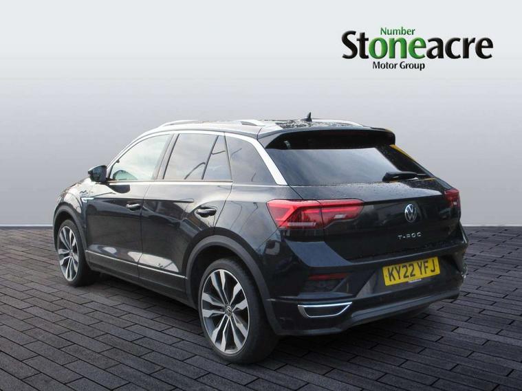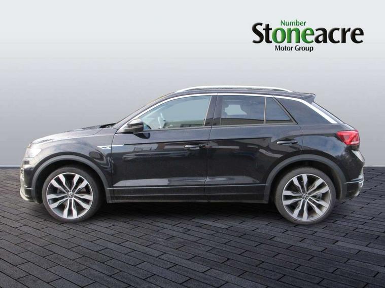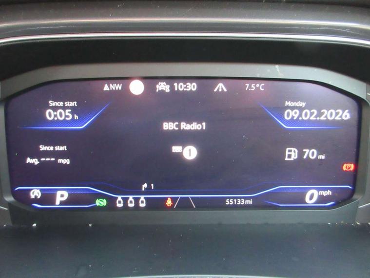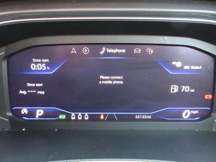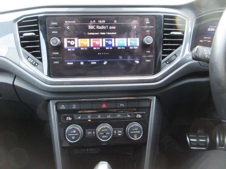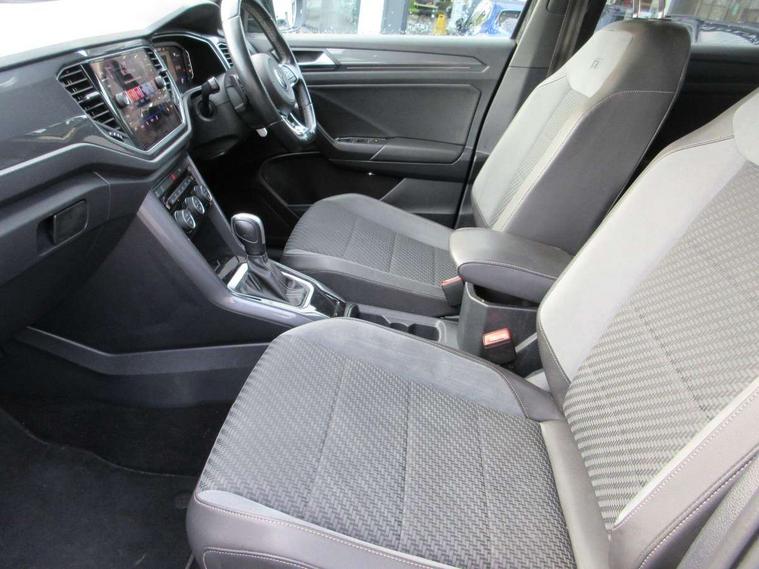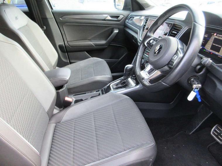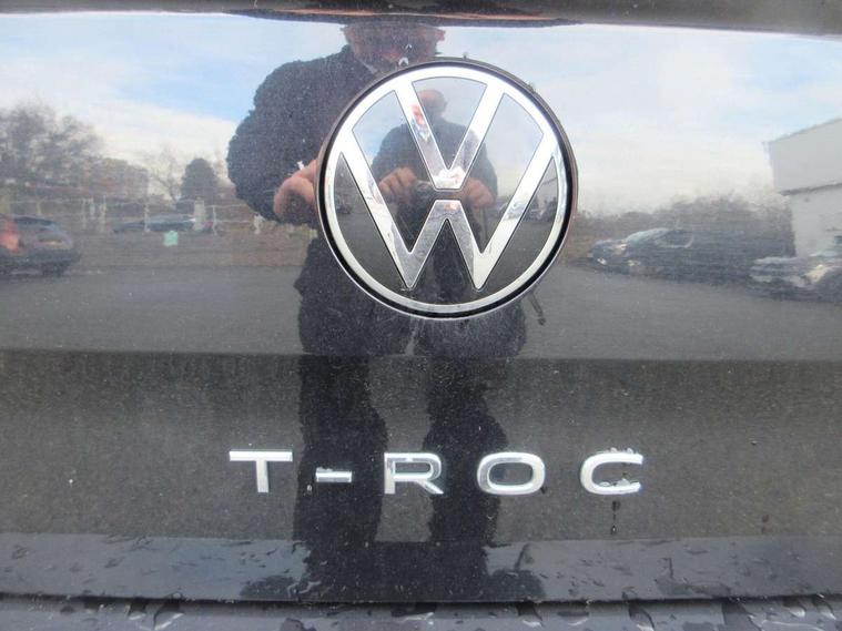 'Lights On' Reminder warning buzzer, Adaptive cruise control, Bluetooth telephone and audio connection for compatible devices, Car information display, Digital Cockpit Pro - Active info display, Driver alert system with audible and visual fatigue detection system, Driver tips and journey analysis, Dusk sensor, Emergency call service, Lane assist with warning text instrument cluster, Modified key software - reduce switch off time for key status change to Long no motion, Multifunction camera, Multifunction computer with visual gear change recommendation for fuel consumption, Navigation system discover media including streaming and internet, Service interval indicator, Think blue trainer driver tips and journey analysis, Traffic sign recognition, Voice activation, Warning sound and light for front seatbelts unfastened, Wireless app connect for apple carPlay, Battery regeneration during braking, Misfuel prevention device for diesel engine, Rear shock absorption for sports version, Start/stop function with battery regeneration, DAB Digital radio, Disk brakes in front, Diversity antenna for FM reception, Music playback - MP3, WMA and AAC files, Premium USB cable in choice of either Apple or Android smartphone compatibility, SD card slot, Simultaneous pairing of 2 compatible mobile devices, SMS functionality - read, compose and send SMS messages using touch-screen display, Storage compartment with longitudinal and height adjustable in armrest and two rear air vents, Three route options - Fast, Short, Eco, Title and cover art display, USB-C Interface and USB charging socket, Auto dimming interior rear view mirror, Automatic coming/leaving home lighting function and daytime running lights, Automatic hazard lights activation under emergency braking, Black grained lower door protectors, Body colored door lower parts, Body colour door handles, Body colour rear roof spoiler, Chrome effect left and right trapezoid exhaust tailpipe fascia surround, Chrome plated moldings, Chrome plated radiator grille inserts, air vent surrounds and light switch surrounds, Chrome trim on upper and lower radiator grille, Dynamic headlight range control with self adjusting whilst driving, Electrically foldable, adjustable and heated door mirrors with puddle lights and reverse activated kerb-view adjustment on passenger's door mirror, External USB type C socket and charging sockets, Front and rear electric windows, Front fog lights with static cornering function, Front windscreen wiper with intermittent wipe and 4 position delay, Fully galvanised body, Heated rear window, Heated windscreen washer jets, High level 3rd brake light, LED darkened rear light clusters, LED headlamps with automatic range adjustment and unique signature LED separate daytime running lights, LED rear number plate lights, LED tail lamp rear comination lamps, Privacy glass, R-Line design body coloured bumpers, Rain sensor, Rear tinted glass from B-pillar backwards approx 65% tinted, Rear wash/wipe with intermittent wipe setting, Silver anodised roof rails, Volkswagen roundel, 12V socket in centre console storage area, 3 rear head restraints, 4 load lashing points in luggage compartment, Aluminium pedals, Black roof lining and sun visors, Branded points of interest, Carbon flag cloth upholstery, Climate control - 2 zone electronic air conditioning with automatic air recirculation and allergy filter, Door and side trim panel, Door and side trim panel in foam film, insert in leatherette, Drawer under drivers seat, Front + rear carpet mats, Front centre armrest, Front cupholders x 2, Front seat back storage pockets, Front sports seats with R-Line logo on seat backrest, Glovebox, Heated front seats, Height adjustable front seats, Height/reach adjust steering wheel, Instrument lighting, white adjustable panel illumination, Interior light delay, Interior light in footwell, Isofix easy fit child seat preparation for 2 outer rear seats, Leather gearshift knob, Leather multi function sport steering wheel with gear change selection via paddle shift on steering wheel, LED interior light with switch off delay/dimmer and 2 front/rear LED reading lights, Load through provision with single cup holder when folded down, Luggage compartment cover, removable, Luggage compartment lighting, R Line badge, Scuff plates in door apertures, Split folding rear seat backrests with centre armrest, Stainless steel pedals, Storage compartment in left and right luggage area, Storage compartment in rear doors, Storage compartments in driver and front passenger doors, Sunvisors with illuminated vanity mirrors, Unique R Line door sill protectors, White ambient lighting, R line styling pack - T-Roc, Winter pack - T-Roc, 3 rear three point seatbelts, ABS, Curtain airbags, Driver and front passenger safety-optimised head restraints, Drivers and front passengers airbags with passengers deactivation switch, Drivers seatbelt reminder, Electronic parking brake with auto hold, Electronic stability control (ESC) includes ASR, EDL, EDTC and trailer stabilisation function, Front assist with city emergency braking and pedestrian monitoring, Front seat side impact airbags, Hill start assist, Predictive pedestrian protection, Rigid safety cell with front and rear crumple zones, Single tone horn, Three point height adjust front seatbelts + pretensioners, Tyre pressure loss indicator, Ventilated front and rear disc brakes, Volkswagen roadside assistance, Alarm with remote central locking and interior protection, Electronic engine immobiliser, Remote central locking with SAFELOCK, radio remote control with 2 remote control folding keys, Shadow grey decorative inserts in dash, centre console and door panel, 19" Suzuka alloy wheels with low rolling resistance tyres and anti wheel bolts,