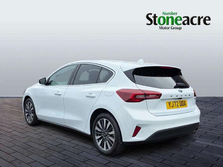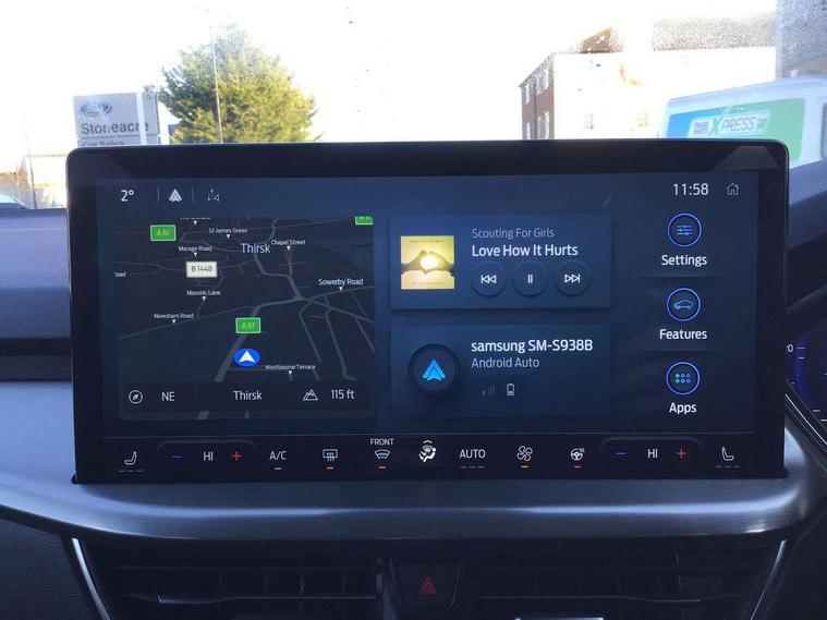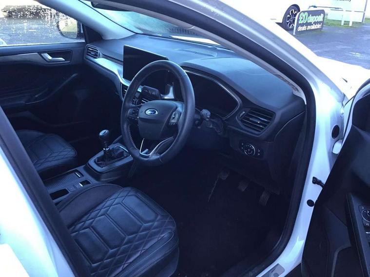 12.3" Digital instrument cluster, Bluetooth system, Digital clock, Easy fuel capless refuelling system, Eco mode, Ford SYNC4 Nav with 13.2'' touchscreen, DAB, Emergency Assistance, Apple Carplay & Android Auto, B&O Premium Audio with 10 speakers, FordPass Connect, Lane keeping system - lane keeping alert and lane keeping aid, PAS, Rev counter, Selectable drive mode, Service interval indicator, Trip computer, Wireless charging pad, 2 USB ports, Auto headlamps (on/off), Body coloured door handles, Electrically operated front and rear windows with one touch opening and closing, Electrically operated heated power fold door mirrors with puddle lamp with side indicators, Front variable intermittent wipers with electric wash, Grille with chrome bars and self colour surround, Heated rear window, LED daytime running lamp, LED rear lamps, LED third brake light, Privacy glass, Quickclear heated windscreen, Rain sensor, Rear side wing doors, Tailgate wash/wipe, 3 rear headrests, 3 seat bench in 2nd row, Dual zone electronic air temperature control, Full sensico premium upholstery, Height adjustable front headrests, Isofix child seat preparation, Load through ski hatch, Manual 2-way passenger seat adjust, Power 4-way driver seat adjust, with power lumbar adjust, Reach + rake adjustable steering column, Single front passenger seat, Winter pack - Focus, 3x3 point rear seatbelts, ABS+Electronic Brake force Distribution, Auto hold function, Driver airbag, EDL traction control, Electronic parking brake, Electronic stability control, Front and rear seatbelt reminder, Front inertia reel height adjustable seatbelts with pre-tensioners, Front passenger airbag, Front side airbags, Passenger airbag deactivate switch, Post collision braking, Pre collision assist with autonomous emergency braking and pedestrian/cyclist detection, Remote/power child rear door locks, Side curtain airbags, Three rear inertia reel lap/diagonal seatbelts, Tyre pressure monitoring system, Keyless entry and keyless start, MyKey system, Remote central locking & engine immobiliser, Thatcham alarm with power door dead locks, 17" 5x3 spoke alloy wheels with Pearl grey machined finish with mini spare wheel,