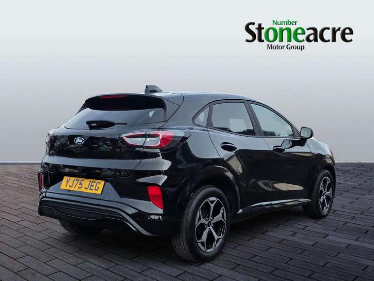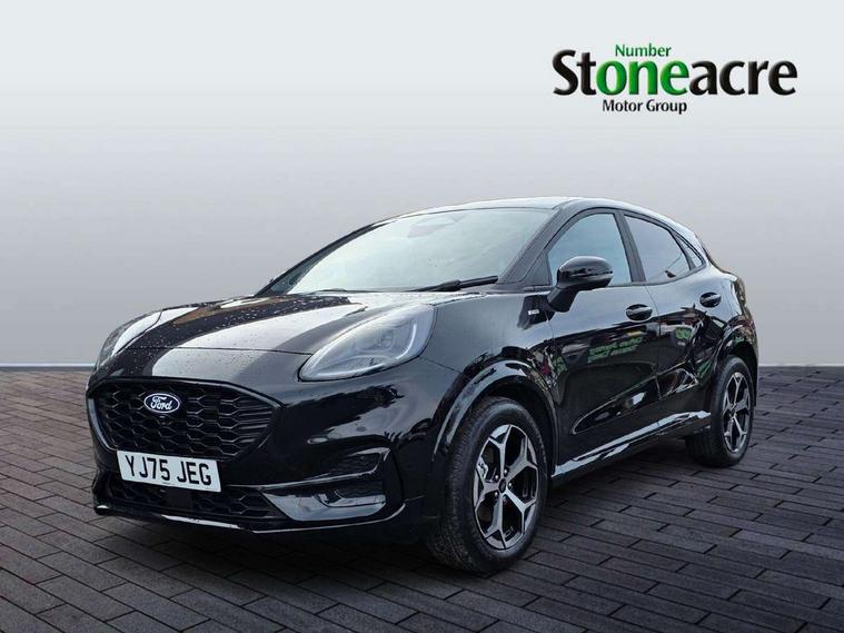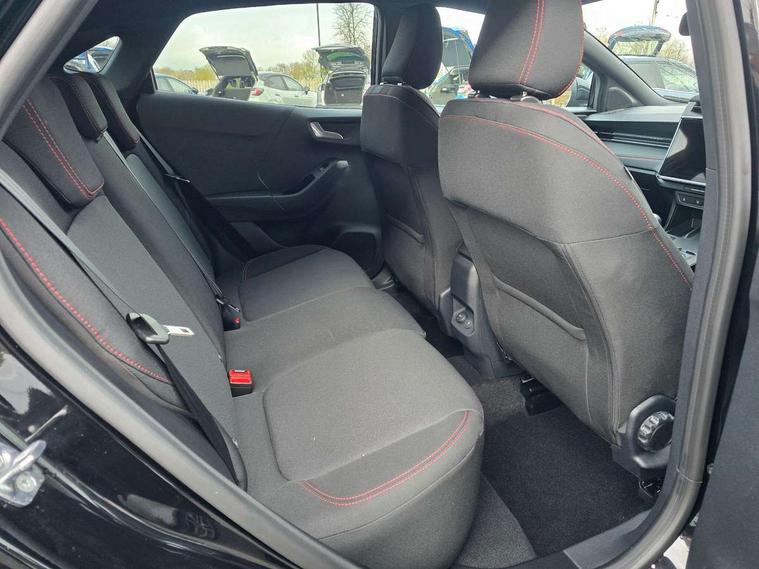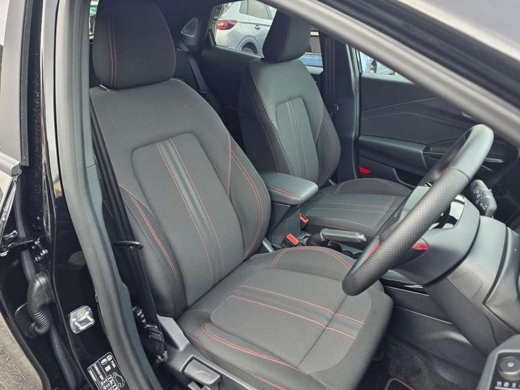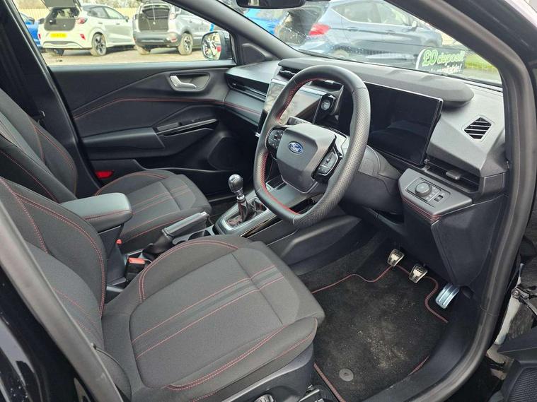 Driver impairment monitor, Emergency call service, Ford easy fuel, Full digital 12.8" instrument cluster, Lane keeping aid with lane departure warning, Power assist steering, Selectable drive modes(Normal, Eco, Sport, Slippery and Trail), Speed sign recognition, Sport suspension, 12" landscape touchscreen display with wireless apple car play and android auto 6 speaker audio system, Ford pass connect and emergency assistance, Ford SYNC4 with connected navigation, Automatic headlights with rain sensing wipers and auto high beam, Front fog lamps, LED daytime running lights, LED rear lamps, LED third brake light, Power foldable heated door mirrors with puddle lamps and puma logo protection, Quickclear heated windscreen, Rear privacy glass, Rear side wing doors, Rear wiper, ST-Line body styling kit with unique grille, 3 seat bench in 2nd row, Centre console with armrest and stowage, Electronic automatic temperature control (EATC), Ford megabox extended bootspace, Front and rear head restraints, Front floor mats, Manual 4 way driver seat adjust with lumbar adjustment, Single front passenger seat, ST- Line cloth trim with red stitching, 3 rear seatbelts, Child safety lock, Electronic stability control (ESC) and hill start assist, Pre-collision assist with autonomous emergency braking, pedestrian/cyclist detection & post-collision braking, Tyre pressure monitoring system (TPMS), Thatcham alarm,