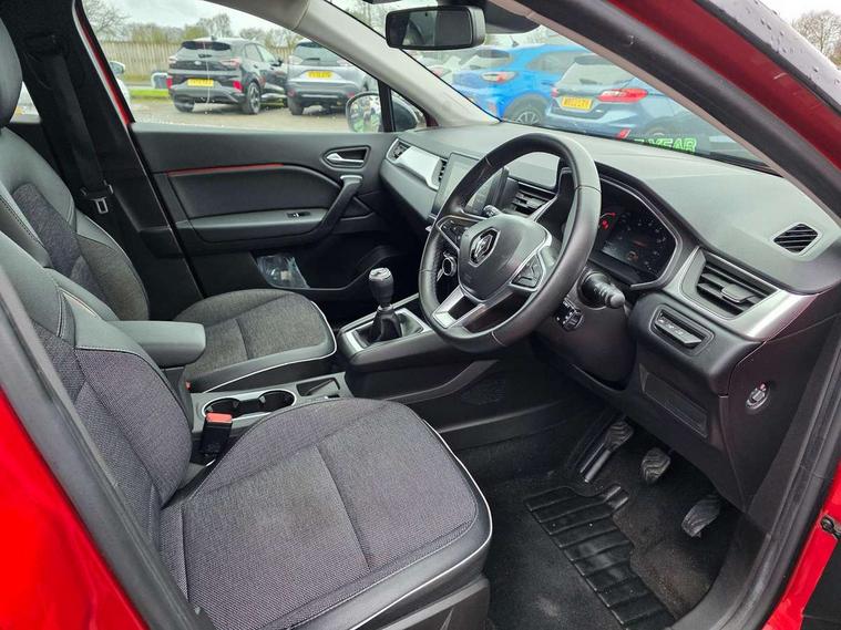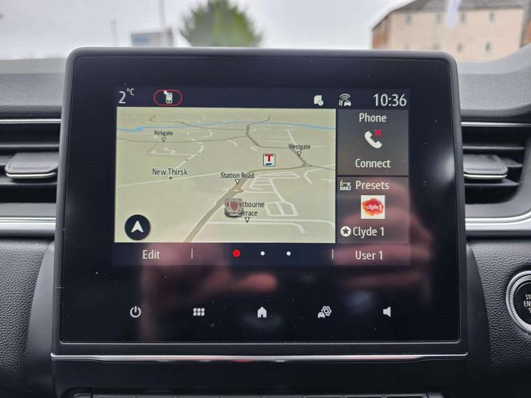 7" TFT Driver information display, Cruise control + speed limiter, EasyLink 7" touchscreen with navigation, google search and traffic information, Eco mode, Front and rear parking sensors with rear view camera, Gear change indicator, Lane departure warning system, Lane keep assist, Multisense with 3 driving modes + 8 ambient lighting colours, Renault automatic emergency assist, Smartphone integration compatible with Apple CarPlay and Android Auto, Traffic sign recognition with over speed prevention, Trip computer, Variable assistance power steering, Wireless phone charger, DAB Radio with Bluetooth and USB, 2 reverse gear LED lamps and 1 rear LED fog lamp in the bumper, Auto dimming rear view mirror, Automatic front wipers with rain sensors, Automatic headlights, Automatic high/low beam, Black side door protection with chrome effect, Body colour door handles, Body coloured bumpers, Body coloured door mirrors, C Shaped LED front and rear lighting signatures with 3D effect on the rear lights, Chrome around front air deflectors, on front wing deco element and window lining, Day time running light, Drivers one touch window with anti-pinch feature, Extra tinted glass in rear windows and tailgate, Front and rear electric windows, Front grille with chrome upper trim, Full LED headlights, Grey front and rear skid plate, LED front fog lights, LED high level brake lights, LED turn indicators on door mirrors, Longitudinal roof bars, Rear side wing doors, Rear wiper, Shark fin antenna, 12V Accessory socket, 3 rear headrests, 60/40 split and fixed base rear seat bench, Automatic climate control with one touch demist function and air quality regulator, Centre console storage tray, Front head restraints, Glovebox, Heating system with pollen filter, Height adjustable driver's seat, Height adjustable passenger seat, Height/reach adjust steering wheel, ISOFIX child seat fixing points on rear outermost seats, LED front roof lights, Middle console with armrest and storage, Modular boot floor, Rear air vents, Single front passenger seat, Sliding rear bench, Synthetic leather steering wheel, Synthetic leather/cloth upholstery, 3 rear seatbelts, ABS+EBA, Distance warning alert, Driver and front passenger, side, head and curtain airbags, Driver height adjustable seat belt, Electric parking brake with auto hold function, Electronic stability control, Front and rear no seatbelt warning sound, Front dash warning indicator in case of heavy braking, Front driver and passenger side airbag deactivation, Hill start assist, Rear door and window child locking function for rear door, Tyre pressure warning light, Anti drill door locks and locking fuel cap, Central door locking, Deadlocking system, Hands free keycard with push button and start/stop function, RAID (Renault Anti-Intruder Device) automatic door locking, Black soft touch dashboard, 18" Pasadena diamond cut alloy wheels with grey inserts,