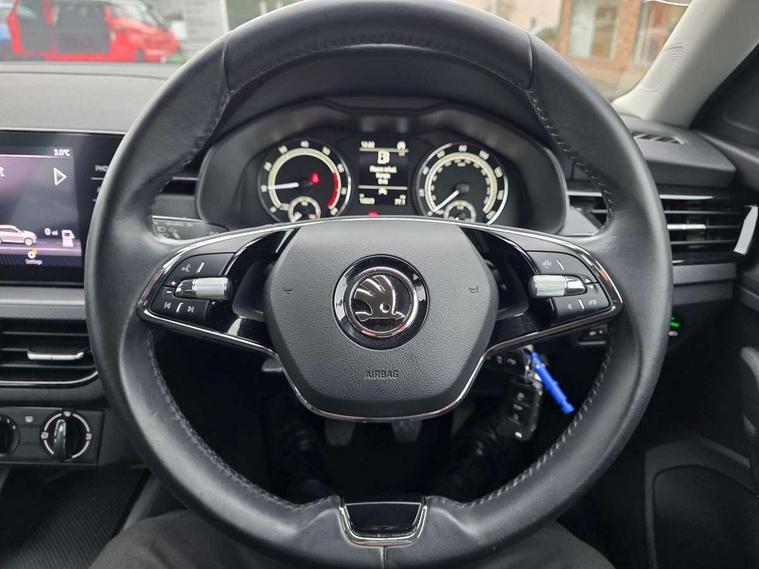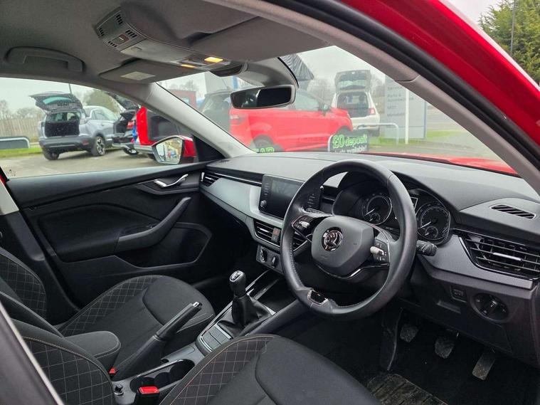 Bluetooth system, E-call, Front assist system, Lane assist, PAS, Service indicator, Speed limiter, Trip computer, Wireless SmartLink for Apple Car Play, 2 USB - C ports with 1x adaptor cable, Auxiliary input socket, DAB Digital radio, Auto dimming rear view mirror, Body colour bumpers, Body colour door mirrors and handles, Chrome grille surround, Electrically adjustable and heated door mirrors, Front and rear electric windows, Headlight range control, Heated rear window, Light and rain sensors, Rear fog lights, Rear wiper, 12V Accessory socket in centre console, Chrome inner door handles, Front head restraints, Glove compartment with illumination, Ice scraper, Isofix child seat fittings on outer rear seats, ISOFIX on front passenger seat, Manual lumbar support for front seats, Rake/reach adjustable steering wheel, Reading lights for driver and front passenger, Sun visor with make up mirror for front passenger, Textile floor mats, Third rear headrest, Top tether for front passenger seat, Umbrella in driver's door, 3x3 point rear seatbelts, Airbags - driver and front passenger, ESP, Front passenger airbag deactivation switch, Front side airbags with curtain airbags, Hill hold control, Manual parking brake, One tone horn, Rear disc brakes, Seatbelt reminder for driver an co-driver, Traction control, Tyre pressure monitor, Alarm with interior monitoring, back up horn and tilt sensor with safe function and towing protection, Anti-theft wheel bolts, Immobiliser, Remote central locking with SAFE system,