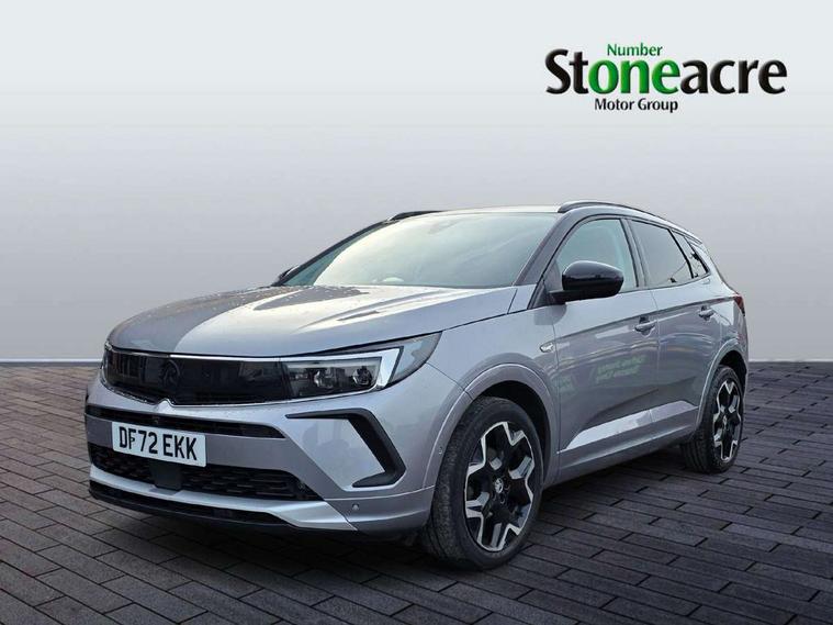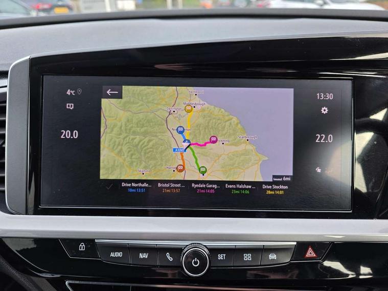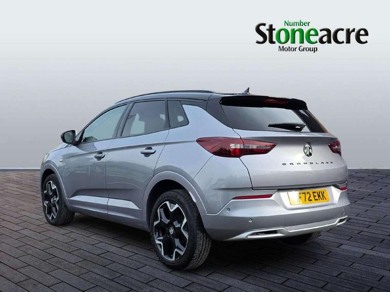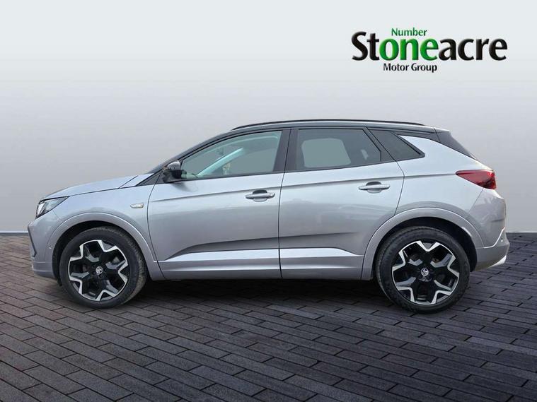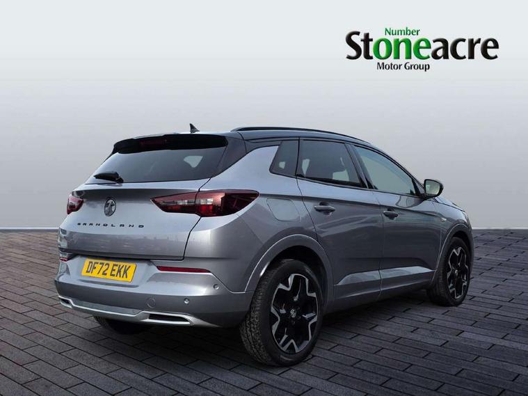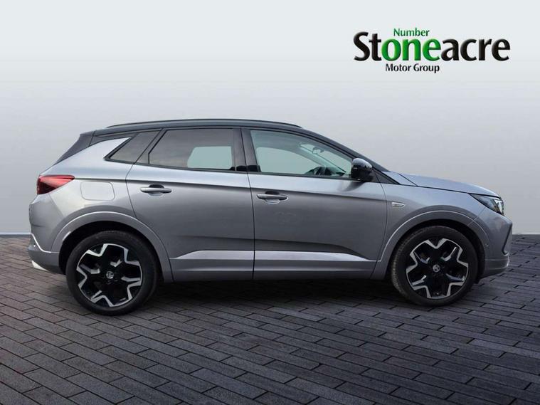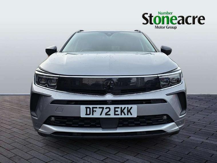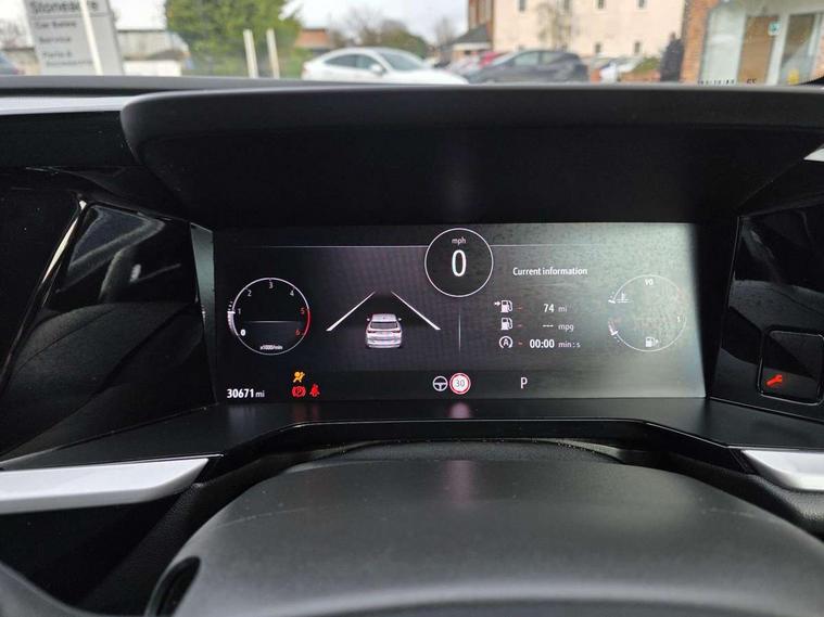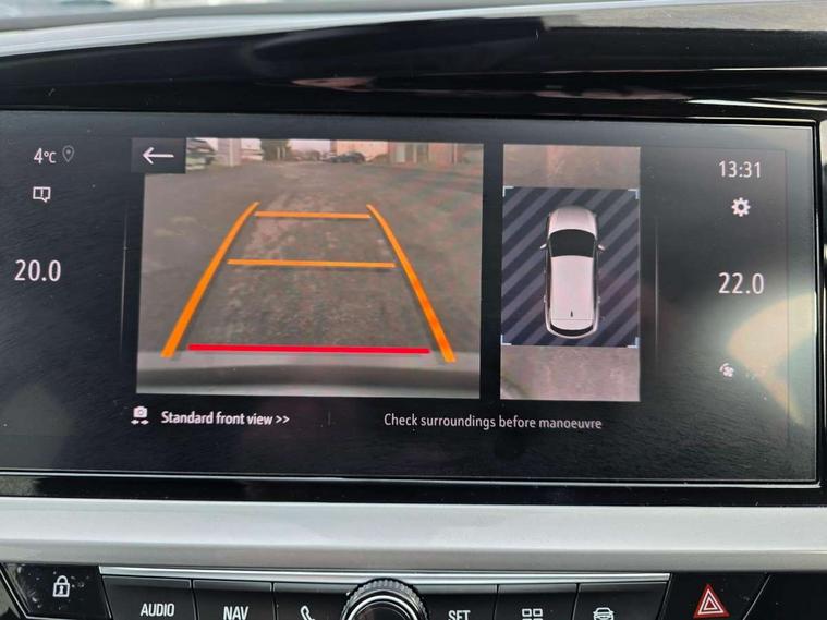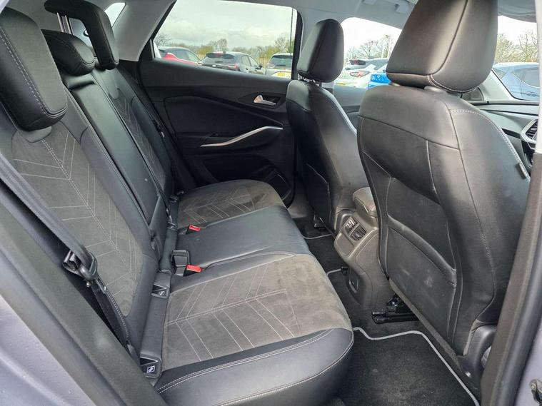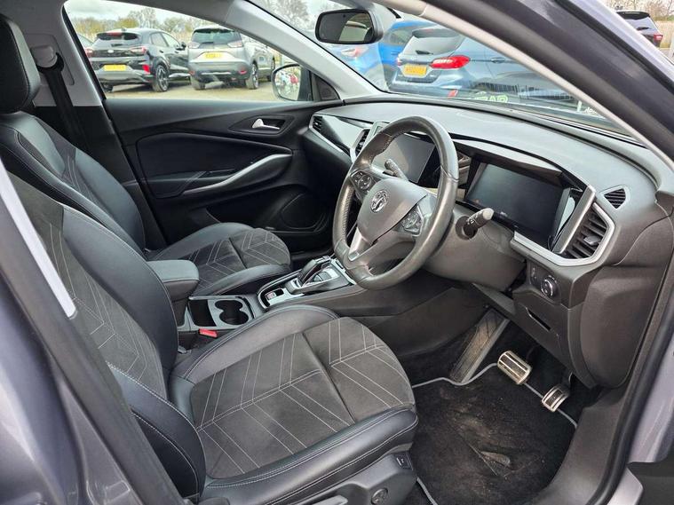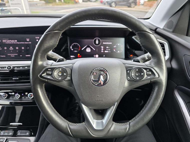12" colour digital cluster, Central facia display with digital clock, outside air temperature and audio information, Digital fuel gauge with low fuel level warning light, Digital rev counter, Digital speedometer, Digital water temperature gauge with warning light, Driver drowsiness alert system, Driver information - Total mileage, service indicator, oil life, Front and rear parking distance sensors with 360 degree rear view camera and advanced park assist, Gearshift up/down indication light, Highway integration assist (Lane positioning assistant and Adaptive cruise control), Lane departure warning system, Lane keep assist, Lights on audible warning, Multi function trip computer - Trip odometer, vehicle range, average speed and fuel economy, instantaneous fuel economy and driving time, Multimedia navi pro with 10" colour touch+ sat nav+AM/FM/DAB radio, bluetooth audio streaming/mobile phone portal, Apple carplay/Android auto, USB, Power operated tailgate with foot sensor, Side blind spot alert, Speed sensitive electric power assisted steering, Speed sign recognition, Vauxhall connect including Emergency call (SOS e-call) and Breakdown call (b-call), Wireless charger for mobile devices, Anti-roll bars, Compound crank rear suspension with coil springs and gas pressure dampers, Independent decoupled MacPherson strut front suspension with gas pressure dampers and coil springs, anti-roll bar, Six speaker - four front + two rear, Steering wheel mounted audio/phone/cruise controls, Alloy effect front and rear skid plates, Automatic lighting control, Automatically dimming anti dazzle rear view mirror, Black door mirrors, Black roof, Black side window trim, Body colour door handles, Body colour lower front and rear bumpers, protective wheel arches and lower door cladding, Body colour upper front bumper, Collapsible windscreen wipers, Dark tinted rear side and tailgate windows, Door to door illumination, Electrically operated front and rear windows with safety auto reverse and one touch up/down facility, Front wiper system spraying directly from wipers, Hazard warning lights, Heated rear screen with timed cut off, Heated windscreen, High beam assist, High gloss black Griffin for Vizor and tailgate with high gloss black Grandland tailgate lettering, High gloss black roof rails, High level centre rear brake light, IntelliLux adaptive LED pixel headlights and LED tail lights, Intermittent rear window wash/wipe, LED daytime running lights, LED front fog lights, Magic wash, Manual headlight beam levelling, Rain sensor windscreen wipers, Rear side wing doors, Rear spoiler, Reversing light, Shark fin aerial, Silver effect protective front and rear skid plate, Soundproof insulated windscreen, Tinted windows, Twin electrically adjustable and heated power door mirrors (wide-angle on drivers side) with automatic timed cut-off, Two speed windscreen wipers with variable intermittent wipe, Upper and lower bumper design, Vizor front grille, Welcome lighting, 12v plug in front console and 12v plug in boot, 3 bench rear seats in 2nd row, 3 spoke flat bottom leather steering wheel with satin chrome effect bezel, 4 way electric driver lumbar support, 4 way passenger electric lumbar support, 60/40 split folding rear seat with centre rear seat armrest and load though facility, Advanced predictive logic control system using a sun sensor, Alcantara upholstery, Alloy sports pedals, Ambient centre console downlighter, Automatic air direction and fan speed with manual override, Charcoal filter, Chrome effect interior door handles, Covered storage compartment in centre console and in driver armrest, Driver's centre armrest, Drivers and front passengers seat with height, reach, tilt, backrest adjustment and seat cushion extension, Dual zone electronic climate control, Ergonomic active drivers sports style seat, Ergonomic active front passenger sports style seat, Front door pockets with 2.6 litre capacity, Front seat back storage pockets, Fully carpeted luggage area, Height adjustable headrests, Illuminated driver/passenger sunvisors with vanity mirror, Illuminated luggage area, ISOFIX on front passenger and rear outer seats, Luggage compartment cover, Reach + rake adjustable steering column, Rear centre seat head restraint, Rear door pockets with 1.8 litre capacity, Rear passenger compartment heating ducts, Rear reading lights, Two drinks holders in centre console, Winter pack - Grandland, Anti-lock braking system (ABS), Automatic emergency braking with pedestrian detection, Child proof locks on rear doors, CSC - Cornering stability control, Deactivation switch for front passenger front and side impact airbags, Deflation detection system, Driver airbag, Dual seatbelt pretensioners on front seats, EBD - Electronic brakeforce distribution, Electronic parking brake, Electronic stability program (ESP) including traction control, Forward collision alert, Front brake ventilated disc 304mm diameter, Front passenger airbag, Front seat side impact airbags, Full size curtain airbags for driver, front seat passenger and outer rear seat passengers, Hill start assist, Hydraulic Brake Assist (HBA), Inertia reel lap and diagonal seatbelts for all seats, Load limiters on outer rear seatbelt retractors, Pretensioners on outer rear seatbelt retractors, Rear brake ventilated disc 268mm diameter, Smart seatbelt reminder for front and rear seats, Tyre pressure monitoring system, Deadlocking system, Electronically protected audio equipment, Engine deadlock immobiliser, Keyless entry and start, Locking wheel nuts, Remote control central locking activation switch on driver door, Remote security alarm system, Black door panels with black premium leather effect inserts, Dax decor facia panel with palladium medium finish, 19" diamond cut bi-colour alloy wheel, Tyre inflation kit,