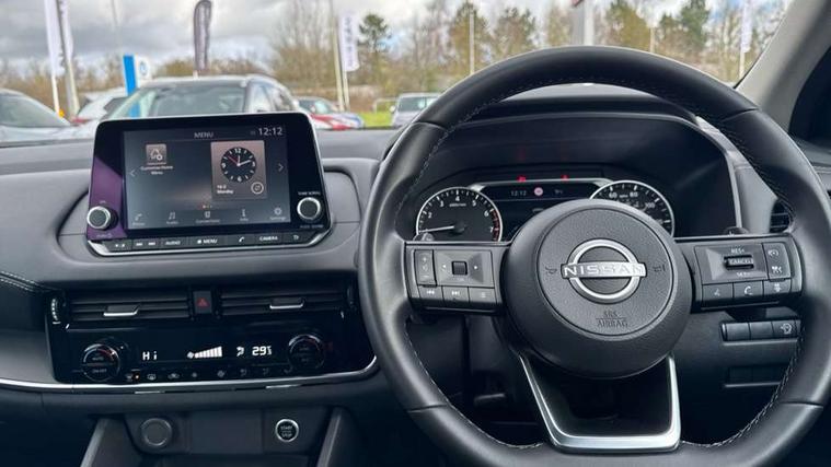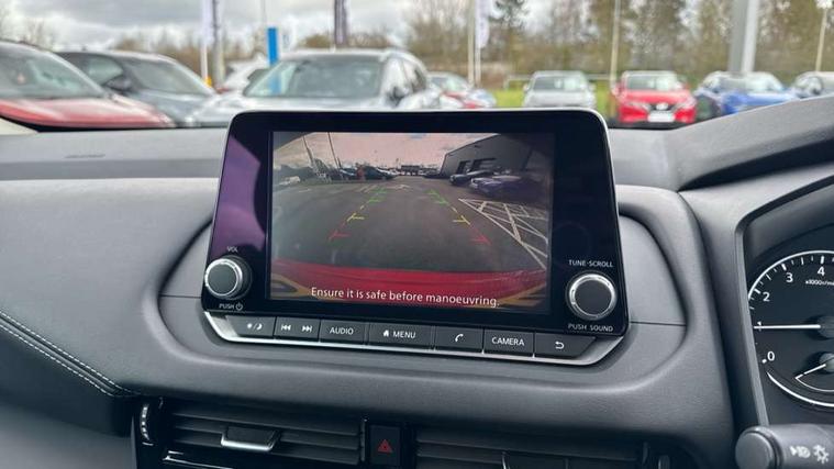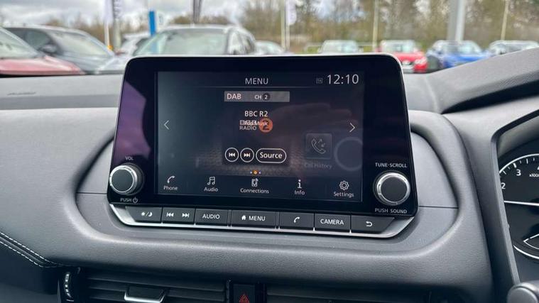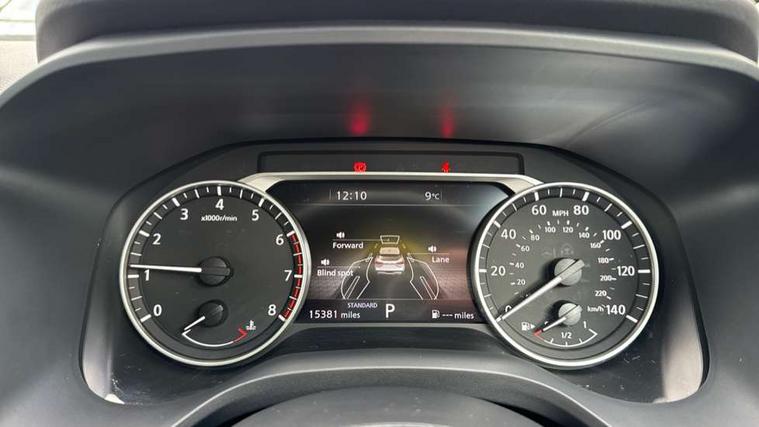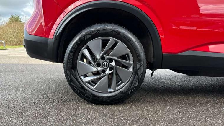 7" High definition full colour TFT screen combimeter, Android auto/Apple CarPlay (Wired), Blind spot warning, Drive modes (sport, normal, eco), Electric speed sensitive power steering, Emergency and breakdown call, Idle stop/start system, Intelligent Cruise control (ICC), Intelligent driver alert system, Intelligent forward collision warning, Intelligent lane intervention, Lane departure prevention, Lane departure warning system, Maximum speed limiter, Nissan connect 8" touchscreen infotainment system, Push button starter, Rear cross traffic alert, Rear parking sensors, Rear view camera, Traffic sign recognition with legal speed adjustment, Trip computer, 6 speakers, AM/FM audio system with DAB, Bluetooth audio streaming, Front USB connections (Type-A and Type-C), Auto dimming rear view mirror, Auto rear wiper when reversing, Automatic hazard signal with emergency stop signal, Body colour mirror caps, Body coloured door handles, Bodyside mouldings, Chrome side window finisher, Door handle with button, Electric auto folding door mirrors, Electrically adjustable and heated door mirrors with LED turn indicator, Follow me home headlights, High beam assist, Intelligent auto headlights, LED 3rd brake light, LED daytime running lights, LED Headlights, LED rear lights, One touch front and rear electric windows with remote opening and closing, Partially body coloured bumpers, Rear reversing light (bulb lighting), Rear roof spoiler, Rear side wing doors, Shark fin antenna, Splash free rain sensing wipers, Three blink turn signal, 12v power socket in dashboard and luggage, 2x Rear coat hooks, 3 bench rear seats in 2nd row, 3 rear headrests, 4 folding assist grip, 6-way manually adjustable driver's seat, 60/40 split folding rear seat bench, Centre console storage tray, Chrome interior door handles, Cloth monoform upholstery, Driver and front passenger sunvisors with illuminated vanity mirrors, Dual zone automatic climate control with pollen filter, Electrically adjustable lumbar support for driver, Front and rear door storage, Front centre console and armrest, Front cupholders x 2, Front door with bottle holders, Glovebox with light, Hard trunk cover, Height adjustable driver's seat, Height adjustable front headrests, Height adjustable passenger seat, Luggage space lighting, Manually adjustable passenger (slide recline + lifter), Multifunction steering wheel, Passenger seat back pocket, Rear armrest with 2 cupholders, Rear door bottle holders, Single front passenger seat, Steering wheel gearshift paddles, Steering wheel switches, Sunglasses holder, Tilt/telescopic adjustable steering wheel, Two rear isofix child seat anchorage points with top tether, 3x3 point rear seatbelt pretensioners + load limiters, ABS with EBD and brake assist, Active brake limited slip, Auto hold function, Child locks on rear doors, Curtain and front side, far side airbags, Driver and passenger airbags, Driver, passenger and 2nd row rear seat belt reminder, Electronic parking brake, Front seatbelt pretensioners + load limiters, Height adjustable front seatbelts, Hill start assist, Intelligent blind spot intervention, Intelligent front emergency braking with pedestrian, cyclist recognition and junction assist, Intelligent rear automatic braking, Tyre pressure monitoring system, Vehicle dynamic control, Capless fuel filler, Engine immobiliser, Intelligent Key, Remote central door locking with deadlocking, Thatcham Cat.1 alarm, Interior instrumental panel A finisher, 17" Alloy wheels, Tyre puncture repair kit,