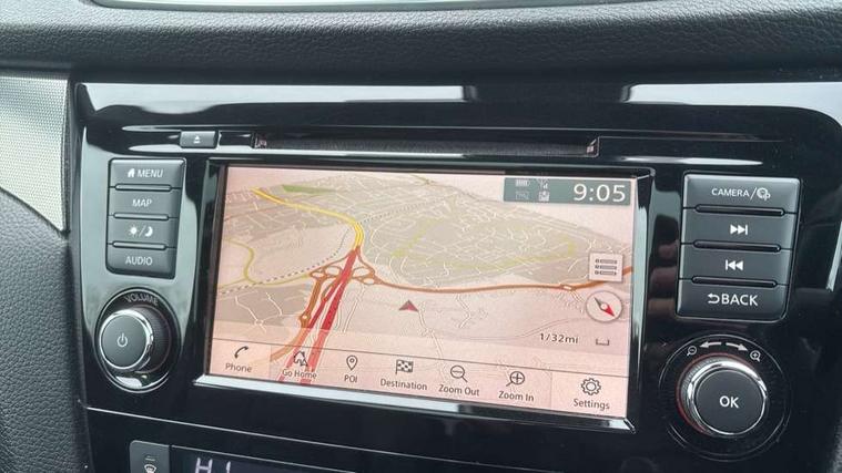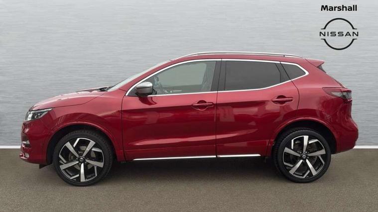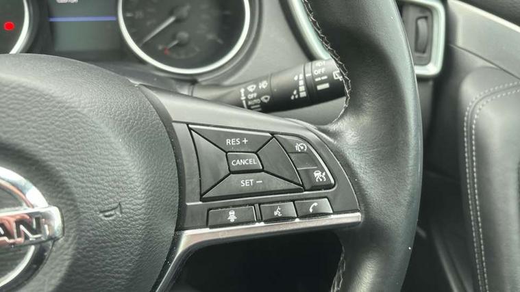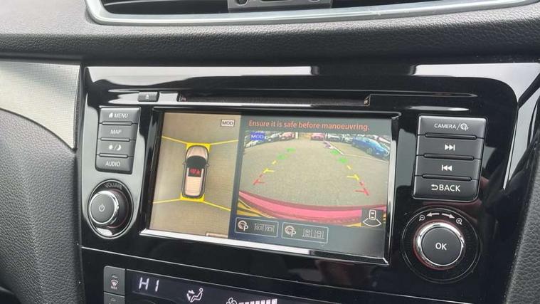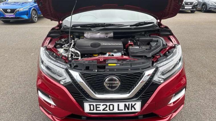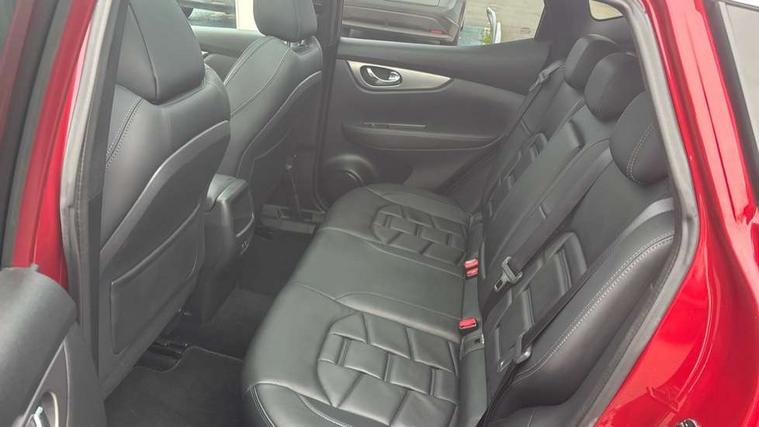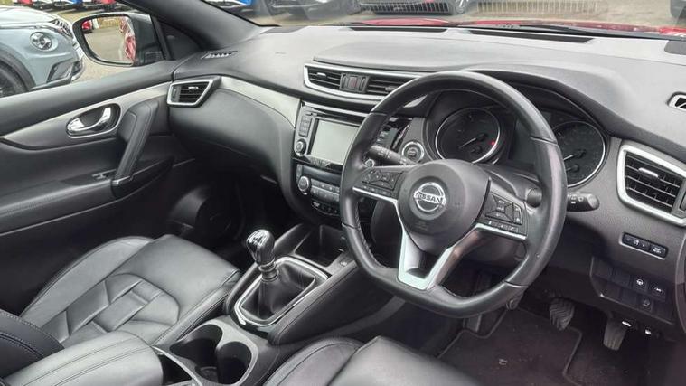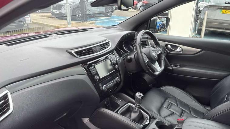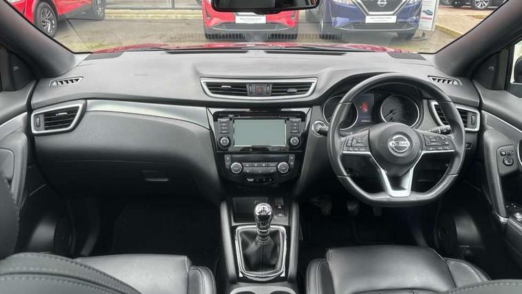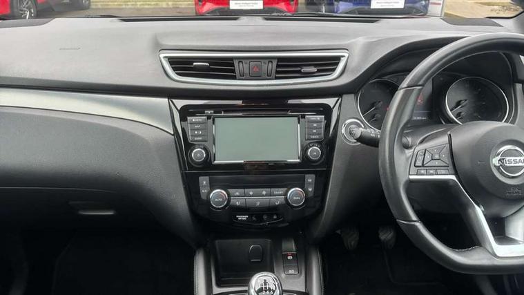 Advanced drive assist display 5'' TFT coloured screen, Android Auto, Apple CarPlay preparation, Bluetooth connectivity, Electric speed sensitive power steering, Front parking sensors, Intelligent around view monitor, Intelligent parking assist, Lane departure warning system, Nissan connect evo 7" touchscreen navigation and entertainment system, Normal or sport selectable steering, Outside temperature sensor, Push button starter, Rear parking sensors, Rear view camera, Service interval indicator, Smartphone integration, Stop/start system, Tomtom connected services, Traffic sign recognition, Trip computer, Voice control system, Diesel particulate filter, AM/FM radio, CD audio system, Aux-in socket, Bose premium 8 speaker system, DAB Digital radio, Rear USB connection, Steering wheel mounted audio controls, USB port, Anti dazzle rear view mirror, Auto wipers, Body coloured door handles, Chrome window surround, Daytime running lights dip function when turn signal applied, Electric folding door mirrors, Electric front and rear windows with one touch illuminated window controls, Electric front/rear windows, Electrically adjustable door mirrors, Front fog lights, Front/rear full painted bumper/side silver finisher, Gloss silver door mirror caps, Halogen headlights, Heated door mirrors, High beam assist, Intelligent auto headlights, LED indicators in door mirrors, Matt silver roof rails, One touch 4x auto windows with illuminated switches, Panoramic sunroof with one touch shade, Privacy glass, Rear roof spoiler, Rear wiper with reverse link, Shark fin antenna, Underbody vortex generators, 2 X front 12v power sockets, 3 height adjustable rear headrests, 60/40 split folding rear seat, Ambient lighting, Ambient lighting in centre console, Boot lighting, Centre console storage box/armrest, Chrome interior door handles, Configurable luggage board system, Dark headlining, Dual zone climate control, Electric 4-way lumbar support for drivers seat, Electrically adjustable driver seat, Electrically adjustable passenger seat, Front and rear door pockets with bottle holders, Front and rear seat belt pre-tensioners with load limiters, Height adjustable front headrests, Individual rear seat reading lights, ISOFIX restraints on outer rear seats x2, Leather D shaped steering wheel, Leather gear lever, Leather knee pad, Manual lumbar support on passenger seat, Map reading lamp, Memory for drivers seat/door mirrors, Monoform front seats with plastic backboard, One touch electric shade, Parcel shelf stow function under luggage board, Pollen filter, Rear armrest with 2 cupholders, Synthetic leather wrapped door handle with contrasting stitching, Tilt/telescopic adjustable steering wheel, Drive assist package - Qashqai, Heat package - Qashqai, Safety shield plus pack - Qashqai, 6 airbags - Driver, front passenger, curtain and side airbags, ABS, ESP, EBD and brake assist, Auto hold function, Child locks on rear doors, Electronic parking brake, Front and rear seat belt warning, Front passenger airbag deactivation, Height adjustable front seatbelts, Hill start assist, Intelligent emergency braking with pedestrian recognition, Three 3 point rear seatbelts, Tyre pressure monitoring system, Anti-theft immobiliser, Intelligent Key, Remote central locking, Thatcham Cat.1 alarm, Carbon graphite dash trim, Tyre puncture repair kit,