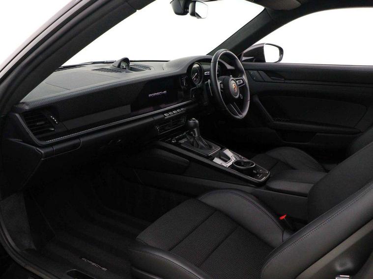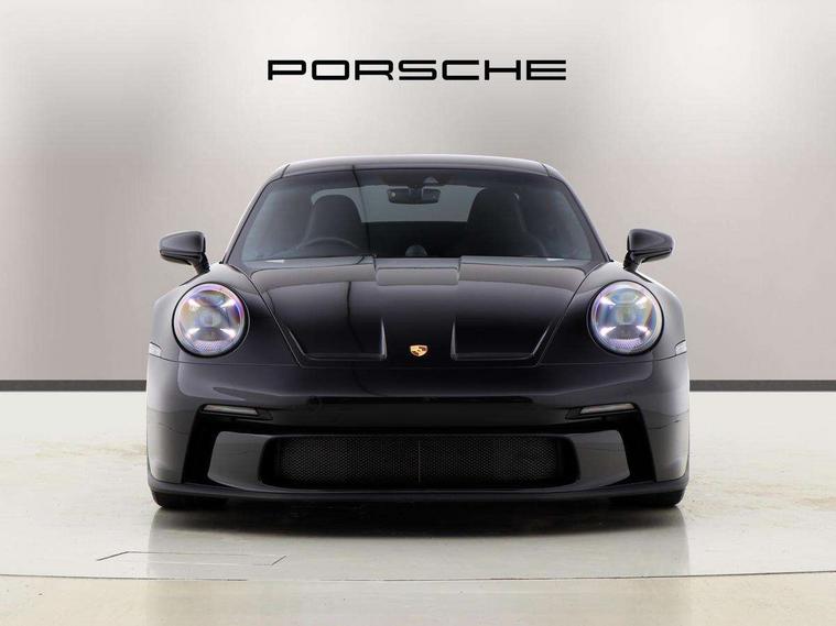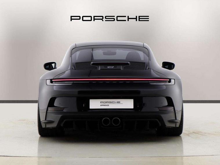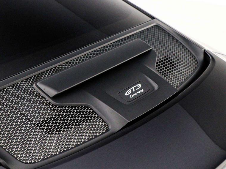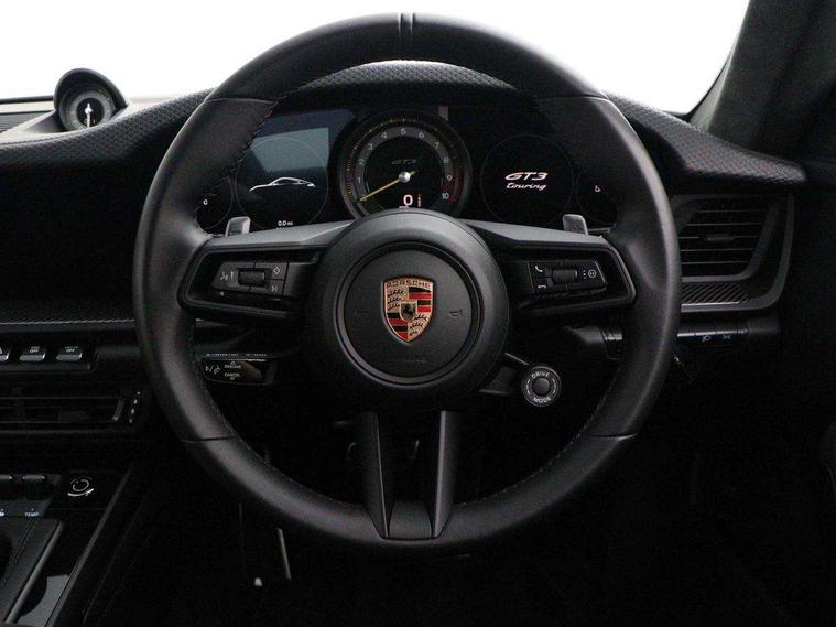Automatic start/stop system, Brake pad wear indicator warning light, Cruise control, eCall emergency system, Electromechanical power-assisted with variable steering ratio and speed sensitive power steering assistance, Instrument cluster with central analogue rev counter and two 7-inch TFT displays with track screen, Porsche Communication Management (PCM) including online navigation module, mobile phone preparation, audio interfaces and voice control system, Porsche track precision app, Rear axle steering with sport tuning, Rev counter with digital display for selected gear and vehicle speed with distinguishable yellow dial and illuminated "GT3" logo, Service indicator, Smartphone integration with Apple CarPlay and Android auto, Trip computer, 2 seat coupe with rear mounted engine, 60Ah Lightweight starter battery, 7 Speed Porsche Doppelkupplung (PDK) with short transmission ratios and sports set up, Adjustable suspension for race track use in toe, camber, anti-roll bars, Aluminium engine block and cylinder heads, Direct fuel injection (DFI), Dry-sump lubrication with separate engine oil tank, Four valve technology with cam followers, Front axle - Double wishbone front suspension with anti-roll bar, all suspension mountings ball jointed, Multi-link rear axle with integrated helper springs, anti roll bar, selected suspension mountings ball jointed, Porsche Active Suspension Management (PASM) sport tuning and 25mm lower chassis, Porsche Stability Management (PSM), including ABS, with two switchable stages (SC OFF and SC+TC OFF), Porsche Torque Vectoring (PTV) including mechanical rear differential lock with asymmetrical lock factor, Rear wheel drive, Two gasoline particulate filter, Two three-way catalytic converters and on-board diagnostics for monitoring emission control system, Variable plastic intake manifold with switchable tuning flap, VarioCam camshaft control for inlet and exhaust valves, 2 USB ports in centre console main storage comaprtment lid, DAB Digital radio, Automatic headlight activation including welcome home lighting, Automatically dimming interior and exterior mirrors with integrated rain sensor, Automatically extendible rear spoiler and distinctive air intake grille including plaque with GT3 touring logo, Central wheel bolts in black and wheel hub cover with two tone Porsche crest, Deletion of model designation on rear apron PORSCHE logo retained, Electrically adjustable heated exterior mirrors on door waist rails, aspherical on driver's side, Front apron entirely in exterior colour with integral cooling air intakes with anthracite coloured grilles and black spoiler lip, Heated rear windscreen, Intelligent lightweight body in Aluminium/Steel composite construction, LED auxiliary light units in the front end with position lights, direction indicators and side indicators, LED courtesy light, Lightweight black carpet rear cover, Lightweight bonnet in carbon fibre reinforced plastic in exterior colour with two air outlets, Lightweight glazing made of compound glass and acoustic, Lightweight stainless steel sports exhaust system with 2 central tailpipes in black, Power windows with one touch operation and door seal protection, Rear apron with additional air outlets including anthracite coloured grilles, black lower section, Rear boot, Rear side wing doors, Retractable door handles, Seamless taillight strip with integrated PORSCHE logo in high gloss light silver, Side window trim in anodised aluminium and side skirts in black, Side window with water repellent coating, Taillight strip as rear driving lights with integrated parking and rear fog light, Underbody panelling with finned rear diffuser, Windscreen washer system with aero wiper blades, two wiping speeds, adjustable intermittent wipe and washer jets, Windscreen with grey top tint, 12V socket in front passenger footwell, 2 individual seats in 2nd row, Clothes hooks on seat backrests and on B-Pillar, Driver and front passenger illuminated vanity mirrors, Front and rear head restraints, Headrests embossed with Porsche crest, backrest shells in dark silver, LED footwell lights, LED glove compartment lighting, LED ignition light, LED luggage compartment lighting, LED orientation light, LED reading lights, Lockable glove compartment, Luggage compartment at front, Multifunction GT3 sports steering wheel, PDK shift paddles and mode switch, steering rim and top centre marking and airbag module in black leather, Oil supply with fully variable hydraulic oil pump, seven suction stages and centrifugal oil cleaner, Partial seat centre, steering rim, gear selector grip area incl gaiter, door pulls, door panel armrest, centre console storage compartment lid armrest, Particle/pollen filter with active carbon filter, Seat bolsters, headrests and steering wheel airbag module in black leather, Single front passenger seat, Smooth finish leather airbag module in black and manual fore/aft and height adjustment, Stitching and door release levers in black, Storage compartment in centre console, Storage compartments in doors, Two individual cupholders 1x as inlet in centre console and 1x passenger side, Two zone auto climate control with separate temperature settings for driver/front passenger, automatic air recirculation mode incl air quality sensor, Black exterior touring package - 911, 3 Point automatic front seat belts with buckle on seat, Composite brake discs with aluminium brake chambers, 408mm diameter at front and 380mm at rear, internally vented and cross drilled, Electric parking brake, Forged titanium piston rods, Full size airbags for driver and front passenger, Porsche side impact protection incl side impact protection in doors, thorax airbag side front seat bolster, curtain airbag door panels for passengers, Tyre pressure monitoring system with race circuit mode, Dashcam prep, Engine immobiliser with remote central locking and alarm system with radar based interior surveillance, Keyless drive, Porsche vehicle tracking system (PVT
