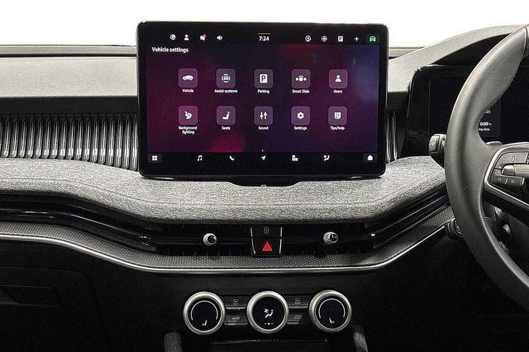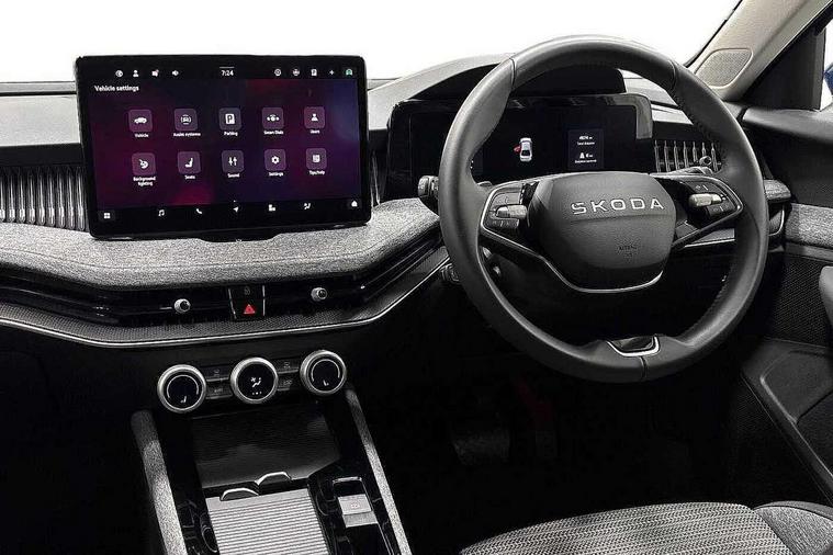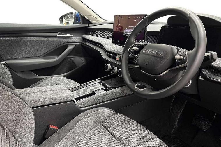 13" touchscreen display with satellite navigation, 4x USB-C ports (2x in front centre console and 2x in rear) (45W), Adaptive cruise control with speed assist, lane assist plus and traffic tram assist, Blind spot detection with door exit warning, Bluetooth system, CareConnect and Emergency Call, ChatGPT functionality, Driver fatigue sensor, Front assist with extended predictive pedestrian protection, Front cross traffic assist, PAS, Quick start all heating software functionality, Stop/start engine system, Traffic sign recognition, Turn assist with evasive assistance, Virtual Cockpit - 10.25" digital display, Voice control system, Washer for rear camera, Wireless charging for one smartphone (15W) with cooling function, Wireless smartlink apple carplay, SmartLink+ android auto, 8 Speakers, DAB Digital radio, Display cleaner, FM radio connection, Web radio connection, Acoustic side windows and interior noise suppression, Backdrop lighting, Body colour door handles, Body coloured door mirrors, Chrome window surround, Dark chrome grille surround, Electrically adjustable, heated, folding and driver side auto-dimming door mirrors with integrated indicators and logo projection, Frameless auto-dimming rear view mirror with USB-C, Ice scraper in fuel tank cap, LED 3rd brake light, Light assist with High beam control, Light assistant (coming/leaving home/tunnel light), Privacy glass, Rear fog light (x1), Rear side wing doors, Unique dark chrome design logo on alloy wheels, Windscreen wipers with rain sensor, 12V socket 1x centre console 1x boot, 2x cargo elements in boot, 2x light in boot, 3 seat bench in 2nd row, 60:40 Split folding rear seats, Bottle holders in the front doors 1.5 litre bottle and rear 1.5 litre bottle, Cup holder in front with easy open mat, Front armrest with storage box, Front comfort seats, Heated front seats, Height adjustable driver and front passenger seats with 2-way electric tilt, 4-way pneumatic lumbar support, and extendable thigh support, Height adjustable front and rear head restraints, Height adjustable front passenger seat, Illuminated glovebox, Interior lights with control switches, Isofix child seat fittings in outer rear and front passenger seats, LED front and rear reading lights, Massage function for front seats, Single front passenger seat, Skoda lettering on steering wheel, Storage compartment with cover, Storage pockets on back of front seats, Sun visors with illuminated vanity mirrors, Ticket holder on A Pillar, Tri zone climate control, Umbrella in driver's door, 3 rear seatbelts, 8 Airbags - Front driver and passenger, front side driver and passenger, centre, curtain front and rear, drivers knee, Crew protect assist, Driver and passenger seatbelts with warning light, Electronic parking brake, ESC including ABS, EBV, MSR, ASR, EDS, HBA, DSR, RBS, CBC, multi-collision brake (MKB) and Auto hold, Hill hold assist, Power operated child lock in rear doors, Alarm with interior monitoring tilt sensor and back up horn, Backrest remote release from trunk, Electronic engine immobiliser, Keyless start/stop, Remote central locking with SAFE system, Third key, Decorative front door sills,