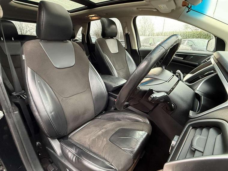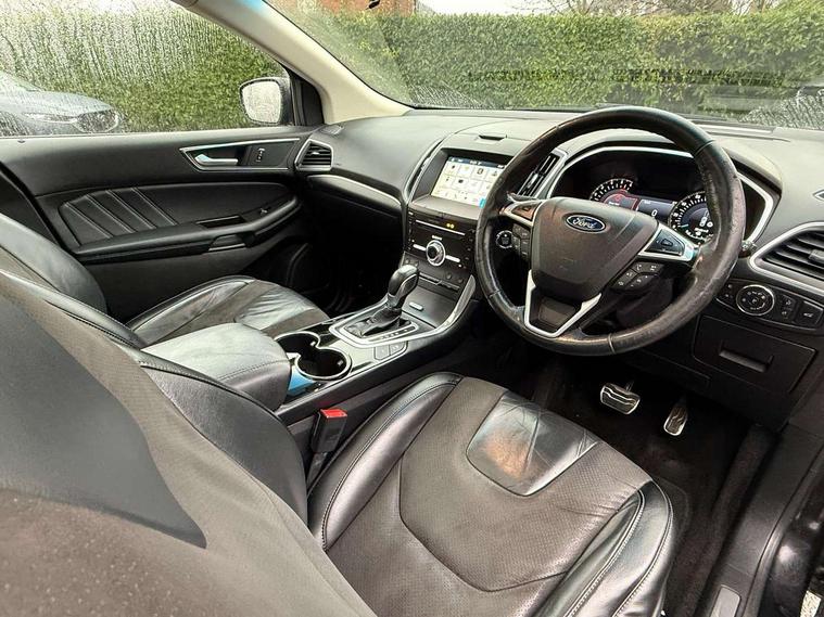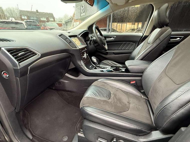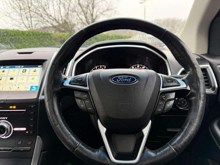 Adaptive steering, Bluetooth connectivity with voice control, Easy fuel capless refuelling system, Ford SYNC 3 with 8" colour touch screen, Front and rear parking sensors, Intelligent speed assist, Lane keep assist, PAS, Rear view camera, Service indicator, Sony DAB Audio and navigation system with 12 speakers, SYNC Emergency Assistance, TFT cluster screen, Traffic sign recognition, Trip computer, Sports suspension, Auxiliary input socket, USB/iPod connection, Acoustic laminated side glass, Auto dimming rear view mirror, Auto high beam, Automatic front windscreen wipers, Automatic headlights, Automatic low beam headlights, Body colour lower mouldings, Body styling kit, Chrome grille trim, Dark tinted rear privacy glass, Electric door mirrors + memory, Electric folding door mirrors with puddle lamps, Electric front windows, Front fog lights, LED rear lights, Power windows with global open/close, Quickclear heated windscreen, Rain sensor windscreen wipers, Rear spoiler, Rear wiper, 10 way driver/8 way passenger electrically power adjustable seats with driver memory, 220v power socket, Air conditioning + Dual Electronic Automatic Temperature Control, Alloy pedals, Ambient lighting, Centre console with armrest/storage box + cupholder, Folding rear seats, Front and rear velour floor mats, Heated front sports seats, Height/reach adjust steering wheel, Illuminated scuff plates, Isofix child seat attachment, Leather steering wheel and gear knob, Leather/Dinamica upholstery, LED reading lights, Lumbar support, Rear headrests, 3x3 point rear seatbelts, ABS, Active city stop, Curtain Airbag, Driver airbag, Electronic parking brake, ESP, Front passenger airbag, Rear airbags, Side airbags, Traction control, Tyre pressure monitoring system, Immobiliser, Keyless entry system with handsfree boot opening + electric power tailgate, Keyless start, Thatcham Cat.1 alarm, 20" Platinum Grey Alloy wheels, Mini steel spare wheel,
