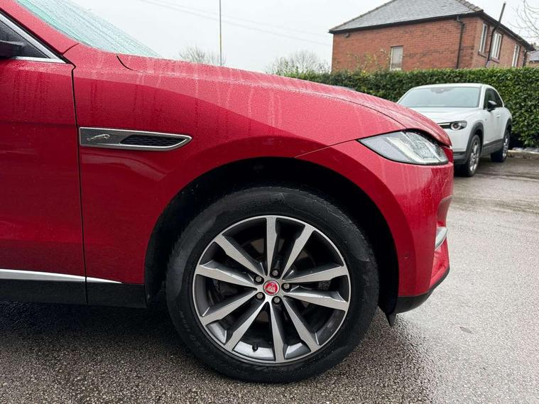 11.4" touchscreen, 3D surround camera, Android Auto, Apple car play, Blind spot assist, Bluetooth connectivity, Clear exit monitor, Driver alert system, Driver condition monitor, Eco driving style assistant, Electric power assisted steering, InControl remote, Interactive Driver display instrument cluster, Jaguar Toggle shift selector, Lane departure warning system, Lane keep assist, Outside temperature gauge, Personalisation profile management, Pivi pro connected navigation system with app interface and media storage, Pro services and wifi hotspot, Push button starter, Rear traffic monitor, Service interval indicator, Speed proportional steering, Start up sequence with movement in dials and lighting, Traffic sign recognition with adaptive speed limiter, Trip computer, Voice control system, 8 speed automatic transmission, All terrain progress control, All Wheel Drive (AWD), Open differential with torque vectoring by braking, AM/FM radio, Bluetooth streaming, DAB Radio (Digital Audio Broadcasting), Dynamic volume control, InControl apps, InControl protect, iPod integration, 3 flash lane change indicators, Animated directional indicators, Approach Illumination, Auto dimming rear view mirror, Automatic headlights, Body colour door mirrors, Electric heated/power fold memory door mirrors with approach lights and auto dimming driver side, Electric windows with one touch open/close and anti trap, F-Pace badge, Green tinted glass, Heated front windscreen + heated washer jets, Heated rear window with timer, Illuminated metal tread plates with Jaguar script, Jaguar script and leaper, LED tail lights, Non acoustic front windscreen, Rain sensor windscreen wipers, Rear fog lights, Rear metal tread plates, Rear wiper, Trailer stability assist, Variable front intermittent wipers, 12V power point front, 3 rear headrests, Air distribution speed, Cabin lighting, Centre armrest console, Centre console with side storage, Door sill tread plates, Electrically adjustable steering column, Fold flat front seats, Front centre armrest with storage compartment, Front door storage space, Glovebox finisher with jaguar script, Heated steering wheel, Hooks in loadspace, Illuminated glovebox, Interior front door handles with separate locking switches, ISOFIX on outer rear seats, Jaguar sense, Luggage tie downs in loadspace, Mist sensing, Multifunction steering wheel, Overhead lighting console, Overhead stowage for sunglasses, Passive front head restraints, Premium carpet mats, Rear air vents, Rear armrest with twin cupholders, Rear centre headrest, Rear door storage space, Reversible boot floor, Satin chrome gearshift paddles, Shopping bag hook, Split rim leather steering wheel, Sunvisors with illuminated vanity mirrors, Twin front cupholders with cover, Online Pack with data plan - F-Pace, 355mm front brakes and 325mm rear brakes, 3x3 point rear seatbelts, ABS, All surface progress control (ASPC), Brake pad warning light, DSC - Dynamic Stability Control, Electric parking brake (EPB), Front airbags with passenger seat occupant detector, Front and rear seatbelt reminder, Front side airbags, Full length side window curtain airbag, Hill launch assist, Power operated child locks, Torque vectoring brake, Traction control, Tyre pressure monitoring system, Immobiliser, Keyless entry, Keyless start, Locking wheel nuts, Perimeter alarm, Remote central locking, Valet mode,