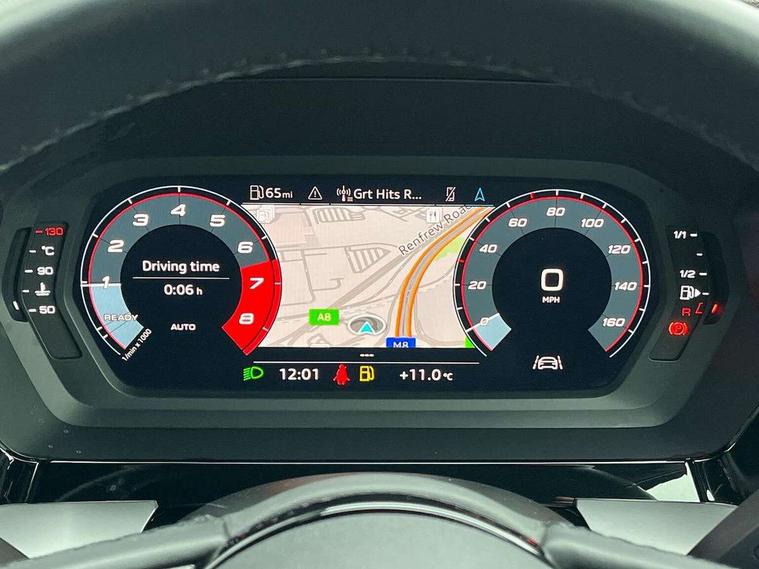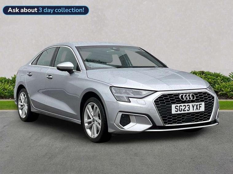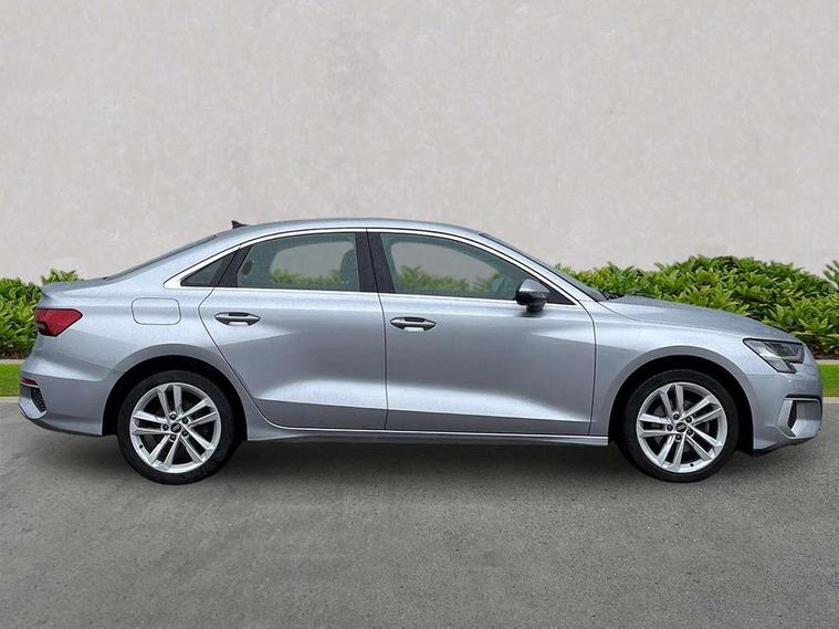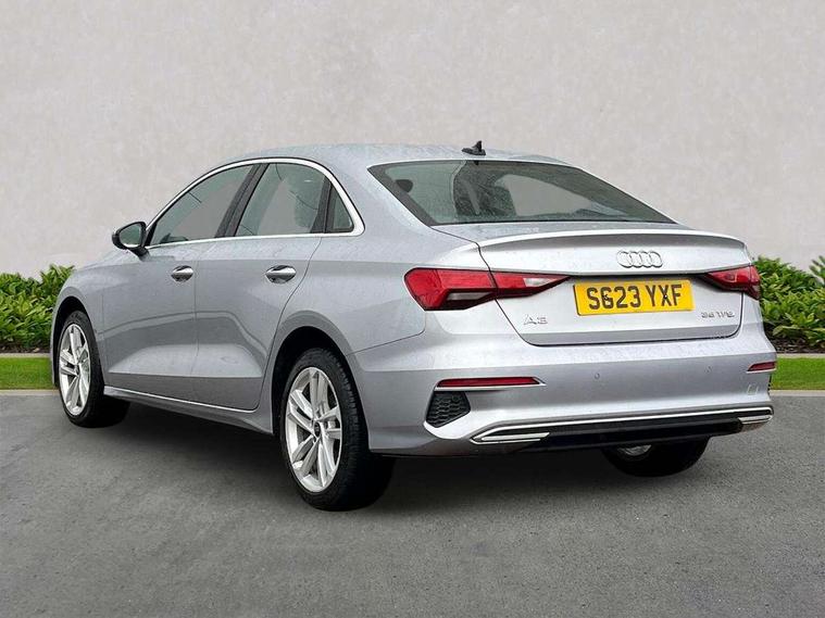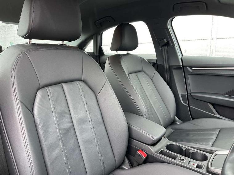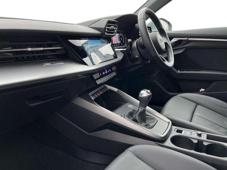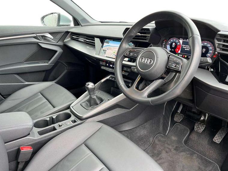Audi connect emergency call and service, Audi drive select (Auto, Comfort, Dynamic, Efficiency and Individual), Audi smartphone interface, Audi Virtual Cockpit - 10.25" digital and colour instrument cluster, Automatic start/stop system with recuperation, Bluetooth interface, Collision avoidance assistant, Cruise control + speed limiter, Electromechanical power speed sensitive steering, Lane departure warning system, MMI Navigation Plus with high resolution 10.1" colour touch screen display, Rear parking sensors, Service indicator, Voice control system with natural language interaction, Standard suspension, 2x USB Type C ports (for charging and data transfer), 6 passive loudspeakers, CD player, DAB Digital radio, 3rd brake light, Acoustic glass windscreen, Aluminium window trim, Auto dimming frameless rear view mirror, Body colour exterior mirrors, Body colour roof spoiler, Electrically adjustable/heated/folding/auto dimming door mirrors with integrated LED indications + kerb view function for passenger side, Front electric windows, LED daytime running lights, LED headlights and halogen rear lights, Light and rain sensors, Model and engine designation badges at rear, Rear boot, Rear electric windows, Rear side wing doors, Rear window, rear door windows and rear side windows in clear glass, 12V socket and storage compartment in front centre console, 3 seat bench in 2nd row, 3 spoke leather multifunction steering wheel, 40/20/40 split folding rear seat bench with cupholder, Dual zone electronic climate control, Front and rear headrests, Front centre armrest, Front door sill trims with aluminium inlay, Front/rear floor mats, Height and reach adjustable steering wheel, Interior lighting - Front and rear roof module including reading lights, glove compartment light and right hand side, Luggage compartment floor covering, Manual boot compartment lid, Manually adjustable front seats, Seat side bolsters, Single front passenger seat, Steel grey cloth headlining, Twin leather upholstery, Aluminium interior elements pack - A3, Sport styling pack - A3 Saloon, 3x3 point rear seat belts, Driver and front passenger airbag with passenger airbag deactivation, Electronic Stabilisation Control (ESC) including ABS, ASR and EDL, First aid kit with warning triangle and 2 safety vests, Front side airbags with head airbags and interaction airbag, Hill hold assist, Pre-sense front with pedestrian and cyclist detection, Seatbelt monitoring, Tyre pressure loss indicator, Anti theft alarm, Anti-theft wheel bolts, Electronically operated child locks, Immobiliser, Remote control central locking, Aluminium air vent surrounds, Aluminium trim elements, Inlays with silk effect paint in platinum grey,