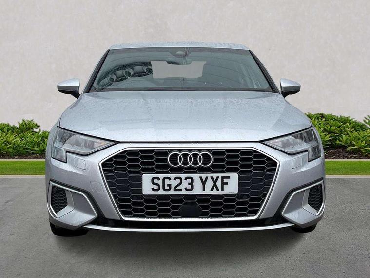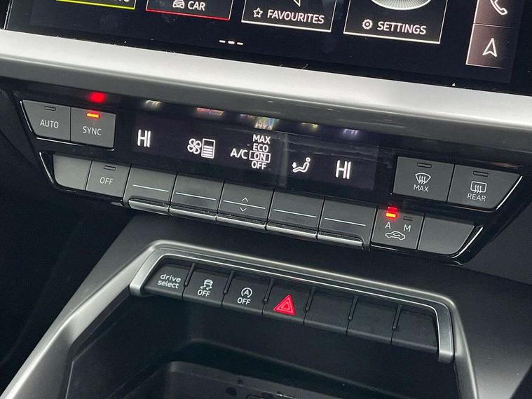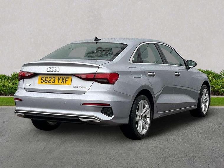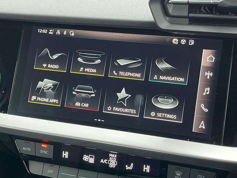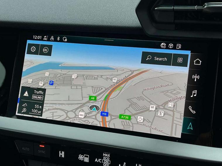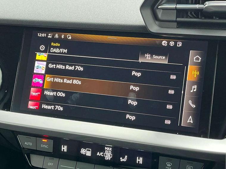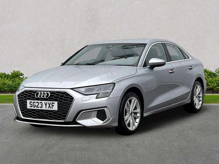 Audi connect emergency call and service, Audi drive select (Auto, Comfort, Dynamic, Efficiency and Individual), Audi smartphone interface, Audi Virtual Cockpit - 10.25" digital and colour instrument cluster, Automatic start/stop system with recuperation, Bluetooth interface, Collision avoidance assistant, Cruise control + speed limiter, Electromechanical power speed sensitive steering, Lane departure warning system, MMI Navigation Plus with high resolution 10.1" colour touch screen display, Rear parking sensors, Service indicator, Voice control system with natural language interaction, Standard suspension, 2x USB Type C ports (for charging and data transfer), 6 passive loudspeakers, CD player, DAB Digital radio, 3rd brake light, Acoustic glass windscreen, Aluminium window trim, Auto dimming frameless rear view mirror, Body colour exterior mirrors, Body colour roof spoiler, Electrically adjustable/heated/folding/auto dimming door mirrors with integrated LED indications + kerb view function for passenger side, Front electric windows, LED daytime running lights, LED headlights and halogen rear lights, Light and rain sensors, Model and engine designation badges at rear, Rear boot, Rear electric windows, Rear side wing doors, Rear window, rear door windows and rear side windows in clear glass, 12V socket and storage compartment in front centre console, 3 seat bench in 2nd row, 3 spoke leather multifunction steering wheel, 40/20/40 split folding rear seat bench with cupholder, Dual zone electronic climate control, Front and rear headrests, Front centre armrest, Front door sill trims with aluminium inlay, Front/rear floor mats, Height and reach adjustable steering wheel, Interior lighting - Front and rear roof module including reading lights, glove compartment light and right hand side, Luggage compartment floor covering, Manual boot compartment lid, Manually adjustable front seats, Seat side bolsters, Single front passenger seat, Steel grey cloth headlining, Twin leather upholstery, Aluminium interior elements pack - A3, Sport styling pack - A3 Saloon, 3x3 point rear seat belts, Driver and front passenger airbag with passenger airbag deactivation, Electronic Stabilisation Control (ESC) including ABS, ASR and EDL, First aid kit with warning triangle and 2 safety vests, Front side airbags with head airbags and interaction airbag, Hill hold assist, Pre-sense front with pedestrian and cyclist detection, Seatbelt monitoring, Tyre pressure loss indicator, Anti theft alarm, Anti-theft wheel bolts, Electronically operated child locks, Immobiliser, Remote control central locking, Aluminium air vent surrounds, Aluminium trim elements, Inlays with silk effect paint in platinum grey,