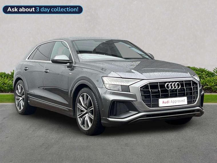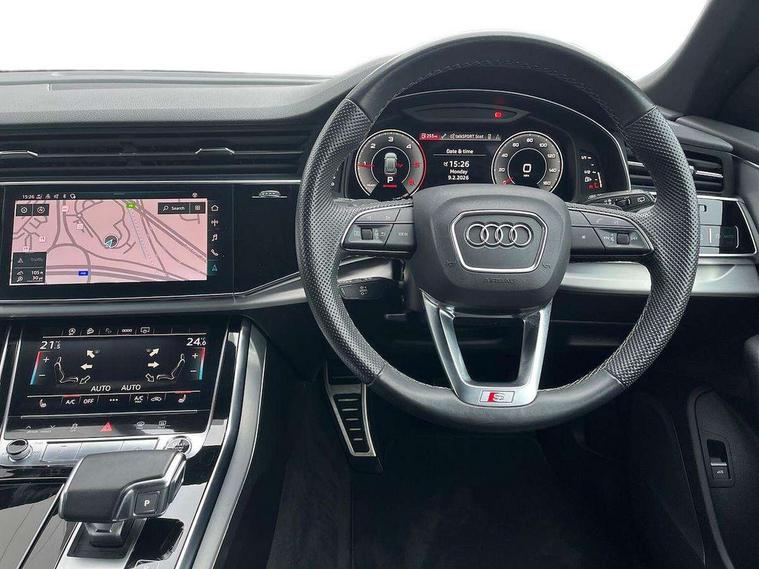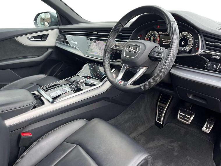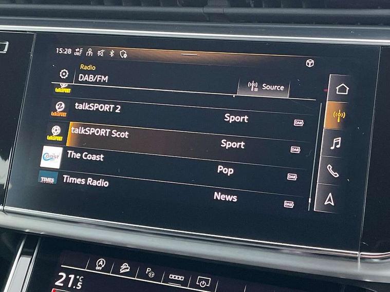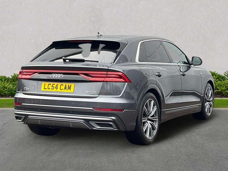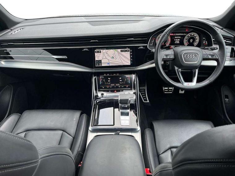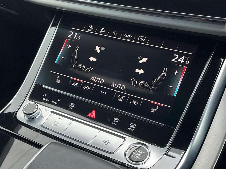 10.1" and 8.6" Dual colour touchscreens, Audi connect safety and service (e-call), Audi connect with Amazon Alexa Integration, Audi drive select, Audi parking system plus includes 360 degree display with front and rear sensors, Audi virtual cockpit - 12.3" high resolution LCD display with fully customisable instrument cluster, Automatic start/stop system, Electro-mechanical PAS, Low washer fluid indicator, MMI - Multi Media Interface control system, MMI navigation plus with MMI touch, Natural voice recognition, On board computer, Operating buttons in black, glass look with haptic feedback, Power operated tailgate, Rear view camera, Service interval indicator, Smartphone interface includes wireless Apple carplay/Android Auto, 48V Mild hybrid technology, Adaptive sport air suspension, Diesel particulate filter, Quattro all wheel drive with self locking centre differential, Audi music interface with 2 USB ports with charge and data functions, Audi sound system with 6 channel amplifier, 180 watt amplifying capacity and 10 loudspeakers including subwoofer, Aux-in socket, DAB Digital radio, 3rd brake light, Acoustic windscreen, Aluminium window trim, Audi HD Matrix LED headlights with dynamic front and rear indicators, Auto dimming frameless rear view mirror, Body colour door mirrors, Coming/leaving home lighting function, Electric front+rear windows, Electrically folding auto dimming/adjustable/heated door mirrors with memory function, LED side indicators and kerb view function for passenger side, Headlight washers, Heat insulating glass in windshield, Illuminated door sill trims with S line logo, LED signature daytime running lights, Platinum grey front spoiler lip and diffuser insert with honeycomb grille in black, Privacy glass - dark tinted rear and rear side windows from B-pillar backwards, Rain and light sensors, Rear side wing doors, Rear wiper, S line badges on front wings, S Line body styling, S line bumpers in full body colour paint finish, S line roof spoiler, S Line side skirts, S line side ventilation grille, 2 zone automatic climate control, 3 bench rear seats in 2nd row, 4-way lumbar support for front seats, 40:20:40 split folding rear bench seat, Black cloth headlining, Comfort front centre armrest, Driver seat memory function, Electrically adjustable front seats, Front head restraints, Front/rear floor mats, Heated front seats, ISOFIX child seat mounting for front passenger seat and 2 outer rear seats with top tether child seat mounting for all 3 rear seats, LED interior ambient lighting, Luggage compartment sill protection in stainless steel, Rear centre armrest with 2 cupholders, Rear headrests, Single front passenger seat, Stainless steel pedals, Sunvisors with illuminated vanity mirrors, 3 point seatbelts on all seats, Audi pre sense front, Child locks on rear doors, Driver and front passenger, front side and curtain airbags, Electromechanical parking brake, Electronic Stability Control (ESC) including ABS, ASR and EDL, Front passenger airbag deactivation, Hill descent control, Hill hold assist, Predictive pedestrian protection, Seatbelt monitoring, Traction control, Tyre pressure loss indicator, Warning triangle and first aid kit, Anti theft alarm with tow away protection, Anti-theft wheel bolts and wheel loosening detection, Immobiliser, Keyless go with remote central locking, Dark matt brushed aluminium inlay, Tool kit, Tyre repair kit,