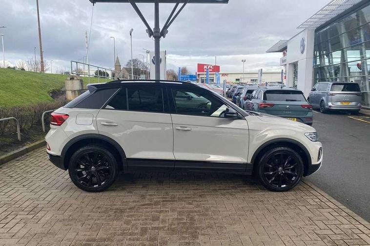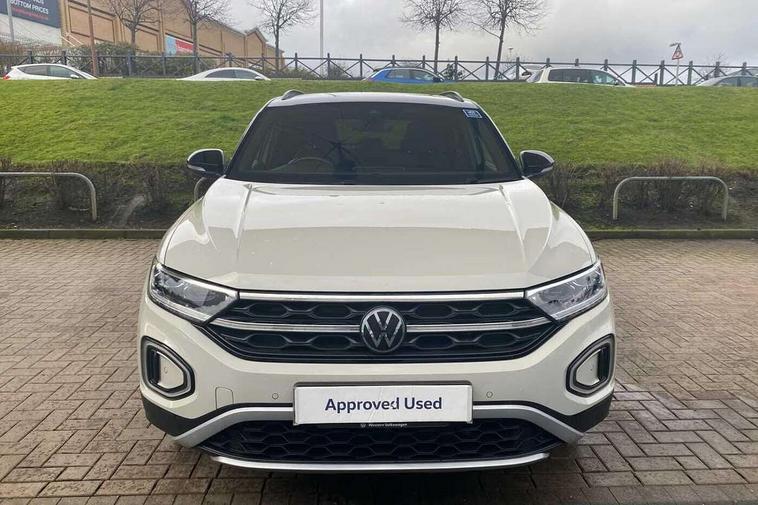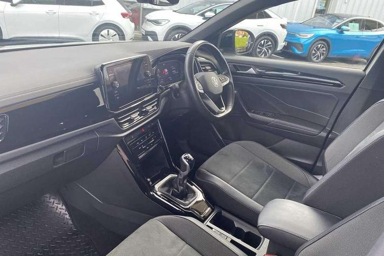 10.25" Digital cockpit pro, Bluetooth mobile phone interface, Driver alert system with fatigue detection, Driver tips and journey analysis, Dynamic road sign display, Emergency call service, Lane keeping system Lane Assist, Modified key software - reduce switch off time for key status change to Long no motion, Online services, Park assist including front and rear parking sensors, Power assisted speed sensitive steering, Service interval indicator, Tailgate/trunk lid release from outside, Think blue trainer driver tips and journey analysis, Warning sound and light for front seatbelts unfastened, Wireless app connect, Battery regeneration during braking, Front shock absorption, Rear shock absorption chassis with increased ride height, Start/stop function with battery regeneration, Diversity antenna for FM reception, Music playback - MP3, WMA and AAC files, Premium USB cable in choice of either Apple or Android smartphone compatibility, SD card slot, Simultaneous pairing of 2 compatible mobile devices, Title and cover art display, We Connect and We Connect Plus functionality, 3rd brake light, Auto dimming interior rear view mirror, Automatic hazard lights activation under emergency braking, Automatic headlight control with LED separate daytime running lights with coming/leaving home function, Body colour sports bumpers with silver metallic underbody fascia, Dynamic headlight range control with self adjusting whilst driving, Extended roof spoiler, Exterior mirrors aspherical on driver side, convex on front passenger side, External USB type C socket and charging sockets, Front windscreen wiper with intermittent wipe and 4 position delay, Heated rear window, LED rear combination lamps, LED rear number plate lights, LED tail lamp rear comination lamps, Light mode for poor weather, rain, fog or snow, Power windows with comfort operation and circuit breaker, Rain sensor, Rear exhaust tailpipe, Rear fog light on one side and reversing lights on both sides, Rear side wing doors, Rear wash/wipe with intermittent wipe setting, Remote electrically foldable door mirrors, puddle lights and reverse activated passenger's door mirror, 12V power socket in centre console, 3 rear head restraints, 3 seat bench in 2nd row, 4 load lashing points in luggage compartment, Air care climatronic air conditoning system with active combination filter and 2-zone temperature control, Chrome plated radiator grille inserts, air vent surrounds and light switch surrounds, Door and side trim panel with leatherette insert, Drawer under drivers seat, Front + rear carpet mats, Front centre armrest, Front comfort sports seats, Front cupholders x 2, Front footwell illumination, Instrument lighting, white adjustable panel illumination, Interior ambient lighting and surround lighting, Interior light delay, Isofix child seat preparation, Leather gearshift handle, LED interior light with switch off delay/dimmer and 2 front/rear LED reading lights, Load-through provision with cup holder when folded down ('Unsplit rear seat bench, split folding backrest, with centre armrest), Luggage compartment lighting, Non-folding front passenger seat backrest, Single front passenger seat, Storage compartment in left and right luggage area, Storage compartment in rear doors, Storage compartments in driver and front passenger doors, Sunvisors with illuminated vanity mirrors, Variable boot floor, height adjustable and removable, Driver assistance pack without proactive passenger protection - T-Roc, 3 point height adj front seatbelts + pretensioners, 3 point seatbelts in outer rear with ECE label, ABS, Child locks on rear doors, Driver and front passenger airbag with front passenger airbag deactivation, Driver and front passenger safety-optimised head restraints, Drivers seatbelt reminder, Electronic parking brake, Electronic Stability Control (ESC) inc EDL (Electronic Differential Lock) and ASR (Traction Control), Front and rear passengers curtain airbag system including front side airbags, Front assist with city emergency braking and pedestrian monitoring, Front disc brakes, Front seat side impact airbags, Predictive pedestrian protection, Rear disc brakes, Single tone horn, Tyre pressure loss indicator, Volkswagen roadside assistance, Anti-theft alarm system with interior monitoring, backup horn, and towing protection, Remote central locking with SAFELOCK, radio remote control with 2 remote control folding keys, Trims for alloy wheels,