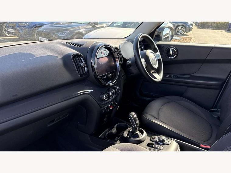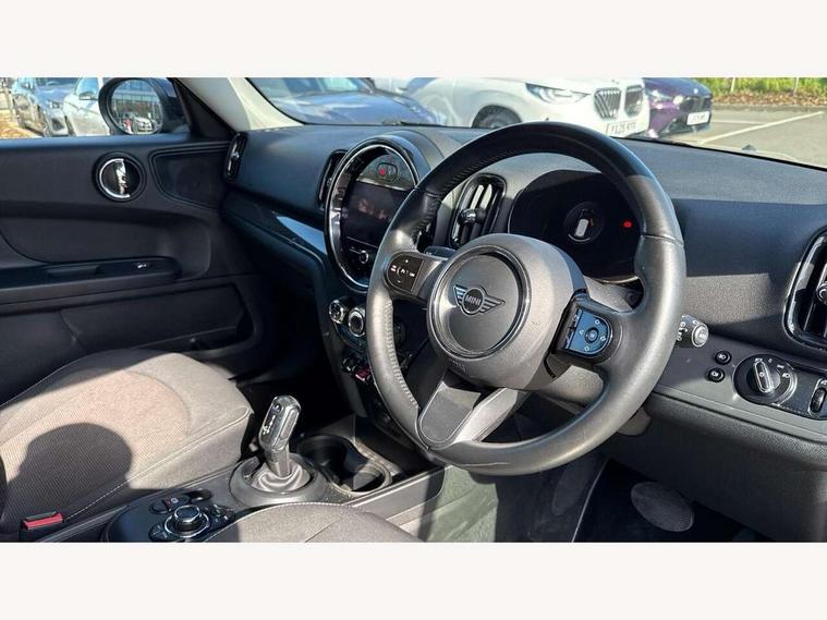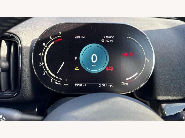 Active Guard incl speed limiting and lane departure functions with auto steering, and front collision warning with brake intervention, Automatic start/stop function with brake energy recuperation, Compatible mobile phone bluetooth with audio streaming, Cruise control with brake assist, Electro-mechanical speed dependant steering assistance, Instrument cluster, Mini E-call, On board computer, Rear parking distance control, 51 Litre fuel tank, Double Vanos system, Fully variable valve control, High precision injection, Performance Control, Steptronic transmission with double clutch, FM tuner and DAB digital radio, 3rd brake light, Body colour fuel filler cap, Day time driving lights, Door sill strips, Dynamic brake lights, Electric windows, Heated rear window, Heated windscreen washer jets, LED fog lights, LED Headlights, Left exhaust tailpipe with chrome finisher, Model logo, Model logo on Tailgate, Radiator grille, Rain sensor with auto headlights, Rear fog lights, Rear side wing doors, Rear window wiper, Side scuttle panel with integrated indicator, Split rear doors, Sun/heat protection glass, White indicator lenses, 12V socket in centre console, 3 seat bench in 2nd row, 3 spoke sport leather steering wheel + limiter function and audio controls, 360L luggage compartment capacity, 4 lashing eyes in luggage compartment, 40:20:40 split folding rear seats, Chrome interior highlights, Colour line - Carbon black, Cupholders, English handbook, Floor mats, Front headrests, Glove compartment, Headliner with grab handles and clothes hooks, Height and length steering column adjustment, Interior lighting with 12 basic colours selectable via toggle switch in roof, Isofix rear child seat preparation, Leather gearshift lever and handbrake gaiters, LED reading lights, vanity mirror lights, front foot well light and spotlight on front seats, Manual air conditioning, Mechanical seat adjustment, driver seat height adjust, forward/back and front seats backrest, Multifunction steering wheel, Passenger seat height adjuster, Rear headrests, Single front passenger seat, Storage compartments in doors, Sunvisors with vanity mirrors, Excitement pack - Countryman, Navigation pack - Countryman, 2 tone horn, 3 point seatbelts on all seats, 6 Airbags - front, side, head and seat belt tensioners, Anti-lock braking system (ABS), DSC - Dynamic Stability Control, Electronic handbrake, Front and rear disc brakes, Hill start assist, Manual rear child locks, Tyre pressure monitoring system, Alarm system with tilt sensor, monitoring doors, bonnet interior and tailgate, Auto drive away locking, Deadlocking function, Electronic vehicle immobiliser, Locking wheel bolts, Start/stop toggle with keyless go, Tool kit,