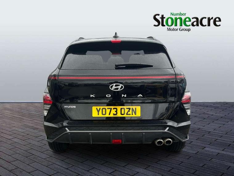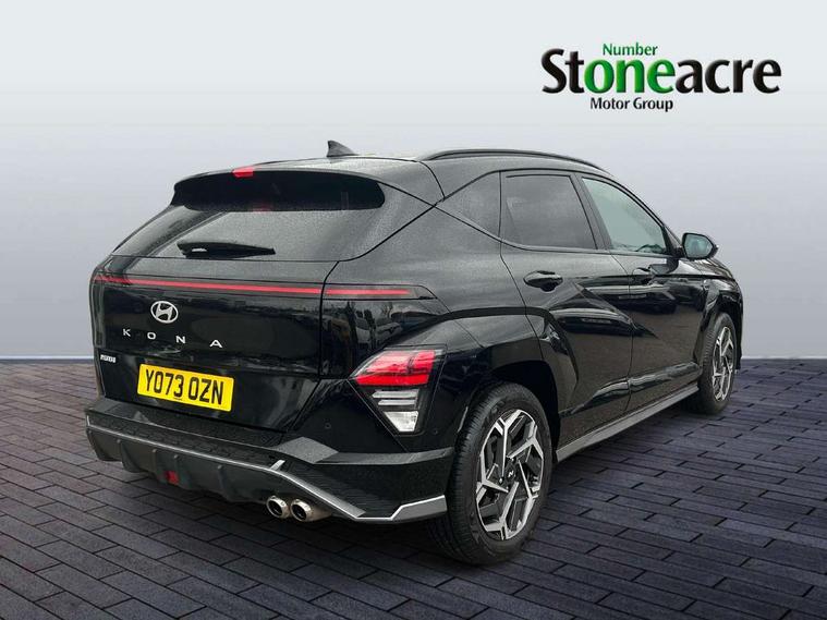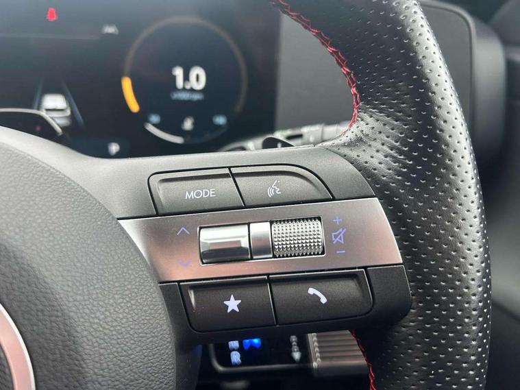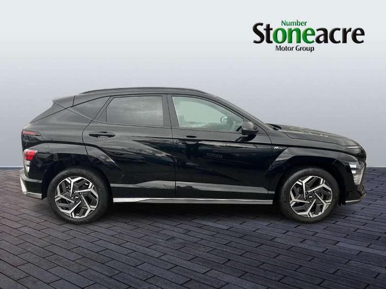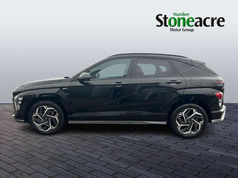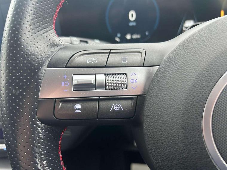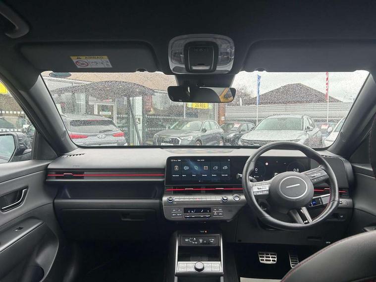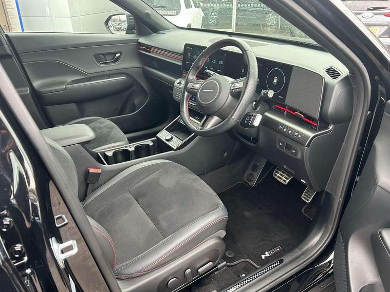 12.3" touchscreen centre console display satellite navigation with bluelink, live services and mapcare, Blind spot collision avoidance assist, Blind spot view monitor, Bluetooth connectivity with voice recognition, Digital clock, Driver status monitor (DSM), Driver supervision instrument cluster with 12.3" LCD display, eCall emergency call system, Feature on demand - Enabled, Forward collision avoidance assist (FCA 1.5) - Car, pededstrian, cycle and junction turning, Front parking sensor, HDA - Highway Drive Assist Level 1.5, Height adjustable power tailgate, Intelligent speed limit assist, Lane follow assist, Lane keep assist, Leading vehicle departure alert (LVDA), Parking Collision Avoidance Assist-Reverse (PCA-R), Parking distance warning - side, Parking system with rear camera and guidance system, PAS, Rear cross traffic collision avoidance (RCCA), Rear parking sensor, Roadside assistance, Safe exit warning (SEW), Smart cruise control with stop and go functionality, Surround view monitor, Windscreen washer fluid sensor and warning indicator, Wireless phone charging pad, Wireless Smartphone Integration includes Apple CarPlay and Android auto, 2 front USB C and 2 rear USB C charging points, Bose Premium Audio system with 7 premium speakers + subwoofer, DAB Digital radio, Steering wheel audio, phone and cruise controls, Auto dimming rear view mirror, Automatic headlights with dusk sensor, Automatic windscreen wipers with rain sensor, Body colour bumpers, Body colour exterior door handles, Body coloured wheel arch inserts, Door mirror LED indicator lights, Electric front windows with anti-trap mechanism and one touch control, Electric rear windows, Electrically adjustable and heated door mirrors, Gloss black door mirrors, Horizon centre LED DRL, LED projector headlights, LED upper and lower rear lights, Power folding door mirrors, Privacy glass - Rear windows and tailgate, Rear roof spoiler with integrated LED brake light, Rear side wing doors, Rear wiper, Roof rails, Solar glass with front door glass and windscreen, Tinted glass in front and rear doors, Windscreen auto defog function, 12V power outlet in front console, 2 zone climate control, 3 seat bench in 2nd row, 40/20/40 split folding rear seat, Adjustable head restraints, Aluminium pedals, Ambient lighting, Driver and passenger front seat pockets, Driver's seat electric adjustments, Driver's seat lumbar support, Driver/passenger sunvisors and illuminated vanity mirrors, Floor mats, Front passenger's seat electric adjustments, Heated front seats, Heated rear seats, Heated steering wheel, Height/reach adjustable steering column, Isofix rear child seat fastenings, Leather wrapped steering wheel, LED centre interior light, LED front interior light, Luggage compartment LED lighting, Luggage net, Luggage shelf, Metal paint effect interior door handles, N Line Alcantara/leather upholstery, Parcel shelf, Rear centre armrest, Rear centre console with air vents, Shift by wire SBW, Single front passenger seat, Ventilated front seats, Vertical adjustment rear head restraints, N Line exterior design pack - Kona, Trailer wiring package - Kona, Airbag - front, front side, curtain and centre front airbag, Anti-lock brake system (ABS), Childproof rear door locks, Downhill brake control, EBD + Brake Assist, Electric parking brake, Electronic stability control, Fasten seatbelt reminder, Fixed 3 point for second row centre passenger seatbelt, Front seatbelt pretensioners, Height adjustable front seatbelts, Hill start assist control (HAC), Passenger airbag deactivate switch, Rear seat alert, Traction control, Tyre pressure monitoring system, Alarm/immobiliser, Deadlocks, Folding key, Locking wheel nuts, Remote central locking, Smart key with keyless entry and engine start/stop button, Five year annual vehicle health checks, Temporary mobility kit (TMK),