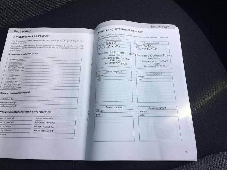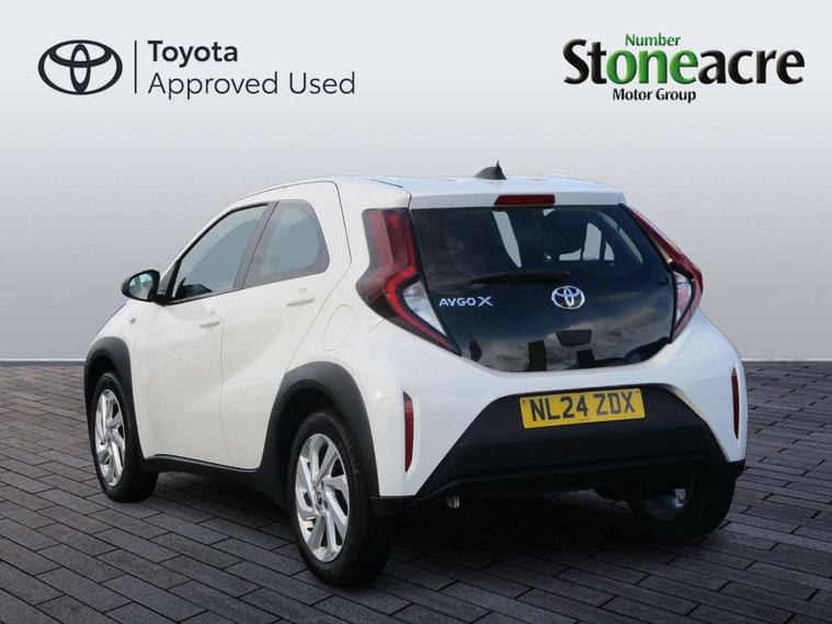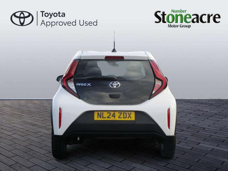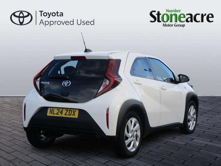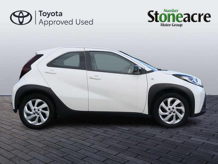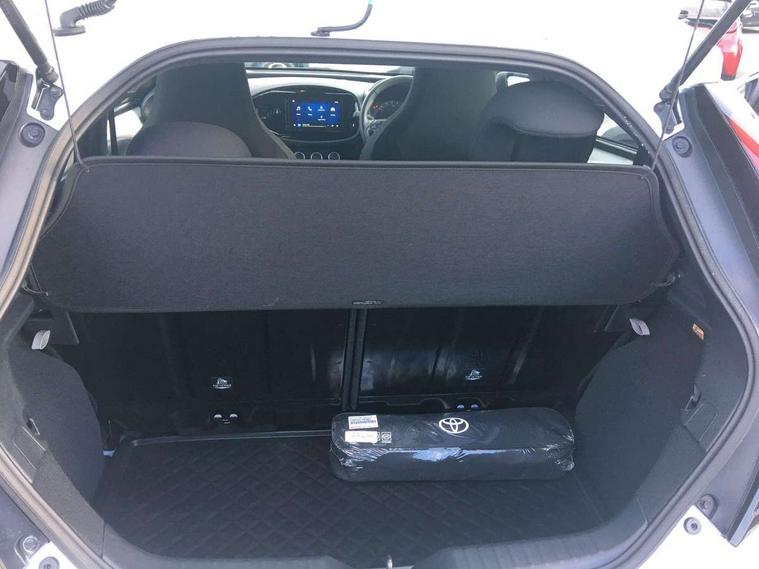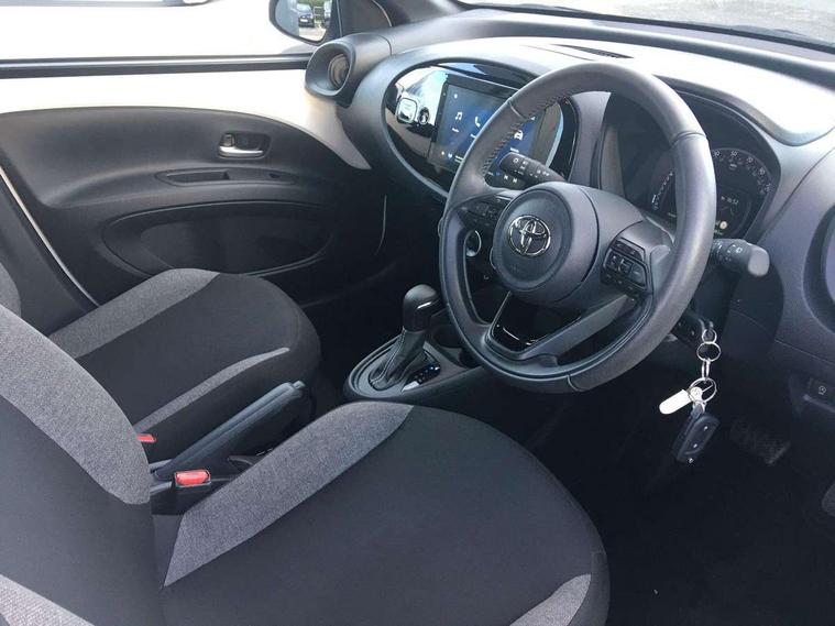 4.2" TFT colour screen, Adjustable speed limiter, Analogue speedometer, Bluetooth connectivity, Digital tachograph, Driver attention alert system, eCall emergency call system, ECO-driving indicator, Electric power steering, Intersection turn assist, Key reminder warning, Noise reduction kit, Pre collision system with emergency steering assist, Reversing camera with static guide lines, Smart phone integration with Apple car play/Android Auto, Speed limit display, Start and stop, Vehicle Stability Control (VSC), 4 speakers, 9" HD multimedia display touch screen with Toyota smart connect, DAB digital audio broadcast, USB connector, Auto headlights, Automatic headlights cut-off, Bicycle towing hook, Black lower front grille, Black rear bumper, Black side protection mouldings, Black upper front grille, Black wheel arch mouldings, Body colour door handles, Body coloured front bumper, Boot door scuff plate, Electric heated door mirrors, Follow me home headlights, Front power windows, Gloss black door mirrors, Headlight cut-off reminder, LED daytime running lights, LED front light guide, LED High mounted stop lamp, Manual day/night rear view mirror, Manual headlight levelling, Pagoda roof, Power adjustable door mirrors, Power back door, Projector halogen headlights, Rain sensor, Rear combination lights LED bulb type, Rear side wing doors, Rear windscreen defogger, Rear windscreen wiper, Short antenna, Variable intermittent windscreen wipers, 12v power outlet - front, 2 seat bench in 2nd row, 3 spoke leather steering wheel, 50/50 split folding rear seat, Adhesive roof headlining, Adjustable speed limiter switch on steering wheel, Audio and telephone switches on steering wheel, Black insert on steering wheel, Boot light, Centre room light, Chrome interior door handles, Chrome surround on air conditioning buttons, Clean air filter, Fabric upholstery, Floor mats, Front and rear cup holders, Front head rest deco art, Front head restraints, Gear shift indicator, Height adjustable driver seat, Intelligent adaptive cruise control switch on steering wheel, ISOFIX child restraint system on rear seats, Lane departure alert switch on steering wheel, Leather gearshift knob, Light grey roof lining, Manual air conditioning, Manual tilt steering wheel, Manually reclining and sliding driver seat, Manually reclining and sliding front passenger seat, Multimedia switches on steering wheel, Pollen filter, Rear door pockets, Rear head restraints, Resin console box storage, Satin silver insert on gear shift knob, Silver stitching on gear shift knob, Single compartment glovebox with lights, Single front passenger seat, Soft tonneau cover, Sun visors with mirror on driver and passenger side, Voice recognition switch on steering wheel, Toyota safety sense pack - Aygo X, Anti lock braking system + Electronic brake force distribution, Child safety door lock, Emergency brake light signal (EBS), Hill start assist control (HAC), Passenger airbag on/off switch, Seat belt reminder for front and rear seats, Supplement restraints system (SRS) - 6 airbags, Traction control, Tyre pressure warning system, Immobiliser, Remote power door locks, Black air vent surround, Black wheel centre caps, Tyre repair kit,