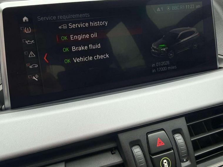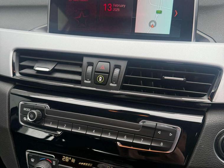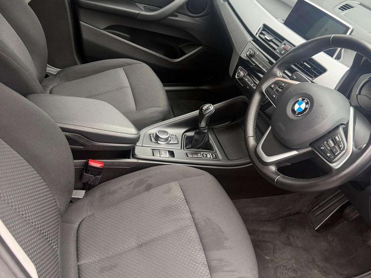 Active Guard incl speed limiting and lane departure functions with auto steering, and front collision warning with brake intervention, Ambient temperature display, Apple CarPlay, Arrow pointers, north up, direction of travel and perspective map displays, Attentiveness assist, Automatic tailgate opening, BMW ConnectedDrive, BMW Online services, BMW remote services, BMW Teleservices, Brake pad wear indicator in front and rear, Characteristic map controlled oil pump system, Cruise control with brake assist, Front axle single joint with specific axle kinematics to minimise drive influences on steering + provide increased rigidity agile driving behaviour, Front/rear park distance control (PDC), Instrument cluster with Black optic display featuring superimposed dials and 5.7" colour display, Instrument cluster with speedometer with miles per hour read out, tachometer and fuel gauge, Integrated hard drive with map data updates via USB interface, Lights on warning by audio warning signal when ignition is switched off, On board computer, Operation by iDrive with direct selection buttons and 8 programmable buttons, Optimum shift indicator, Outside temperature gauge, Park assist system, Personal Profile - automatic lock when driving away selectable, Real time traffic information, Rigidly mounted rear subframe - Multi link construction with separate spring / damper configuration and excellent driving characteristics, Service interval indicator, Servotronic PAS, Tyre puncture warning system, 12V compressor with integrated sealant injection bottle and hose, Aluminium lightweight construction including crankcase, Anti-roll bars, Balancer shaft, Double VANOS, Drive performance control with ECO PRO comfort + sport mode, High precision injection, Performance Control, Standard suspension, Stop/start function, Turbocharger with Valvetronic, Twin tube gas filled shock absorbers with degressive characteristic curve, BMW professional radio includes amplifier power 100w, Two mide range speakers in door trims and two woofers as central bass speaker under front seats, DAB Digital radio, Adjustable headlights, Aero curtain, Automatically dimming rear view mirror, Black roof rails, BMW Icon design LED daytime driving lights, Body colour bumpers, Body colour door handles, Body colour door mirrors, Direction indicator side lights integrated exterior mirrors, Dynamic brake lights, Electric windows - front and rear, with open/close fingertip control, anti-trap facility and comfort closing, Electrically adjustable door mirrors with aspheric on driver side, convex on passenger side with integrated indicators, Follow me home headlights, Front air guide finished in black silver, Front and rear bumper system, Green tinted heat protection glazing glass, Headlight beam throw control, Heated door mirrors, Heated windscreen washer jets, High level third brake light, Kidney grille with 14 chrome black vertical bars, LED direction indicator lights in headlight eyebrow, LED front fog lights, Lightweight engineering, Model designation, Rain sensor including auto headlights activation, Rear fog lights, Rear window aerial, Rear window wash/wipe, Reversing light in rear light cluster, Roof mouldings in matt black, Shark fin antenna, Sill cover finished matt black, Single chrome exhaust tailpipe, Two eye face design on light, Visible VIN plate, Welcome lighting, 12v power point in centre console, 2 cup holders in front, 3 rear headrests, 3 spoke sport leather steering wheel, 40:20:40 split folding rear bench seat, Black door sill finishers with BMW designation, Boot light, Centre armrest in 20 degree part rear seat backrest, Child seat ISOFIX attachment for two outer rear seats and front passenger seat with anchorage points, Conditioned based service, Driver/front passenger seat backrest back with luggage net, Dual zone automatic air conditioning, Four grab handles integrated in roof linings, Front and rear side armrests integrated into door trim, Front centre armrest/sliding cover, Front centre interior light over interior mirror and rear centre automatic interior light when door is opened/ignition switched off or via remote key, Front standard seats, Front/rear adjustable head restraints, Illuminated glovebox, Leather gearknob/gaiter/handbrake grip, Luggage area underfloor compartment, Luggage compartment access via recessed handle below tailgate, Luggage compartment lighting, Manually adjustment steering wheel column, Multifunction steering wheel, Rear coded belt buckles, Standing free front adjustable armrest and fixed in different positions, Velour floor carpets, Extended storage package - X1, ABS/EBD, Audio/visual collision warning system, Automatic Stability Control (ASC), Battery safety cut-off, BMW emergency call, Brake drying, Brake energy regeneration, Braking readiness, Collision mitigation braking system, Cornering brake control (CBC), Crash Sensor - activates hazard/interior lighting + unlocks doors, Driver/Front Passenger airbags, Driver/front passenger side airbags, Dynamic brake control, Dynamic stability control + (DSC+), Dynamic Traction Control - DTC, Electronic differential lock control (EDLC), Electronic parking brake, Front and rear head airbags, Front passenger airbag deactivation, Front seatbelt force limiters, Front ventilated disc brakes, Hill start assist, Pyrotechnically pre-tensioned front seatbelts, Rear disc brakes, Rear door child safety locks, Seatbelt security check for driver and front passenger, Side impact protection, Three point seat belts in all seats, Twin horns, Tyre pressure monitor, Warning triangle and first aid kit, Central locking switch for all doors, fuel filler cap and luggage compartment, Check control system for monitoring of lights and door/luggage compartment open warning, Engine immobiliser, Locking wheel bolts, Remote control Thatcham category 1 alarm, Remote control with integrated two key, Start/stop button with comfort go keyless engine start and auto start stop deactivation bu