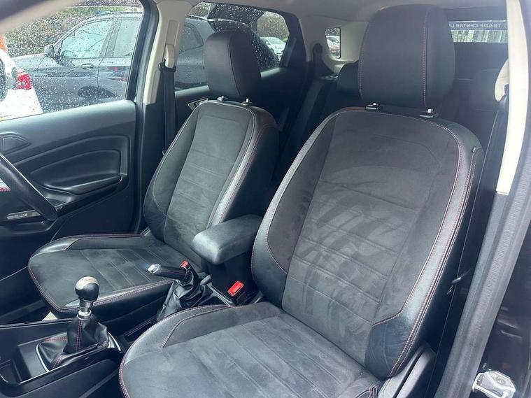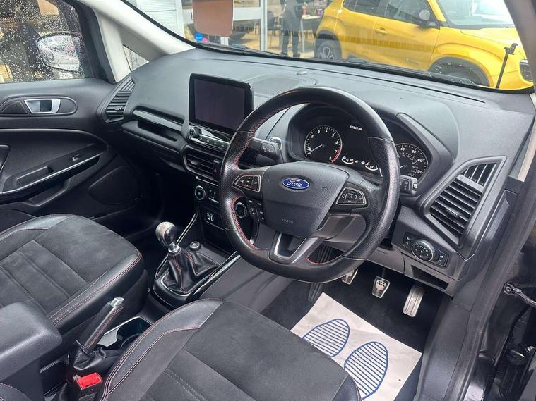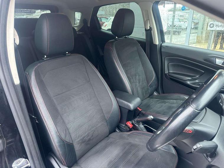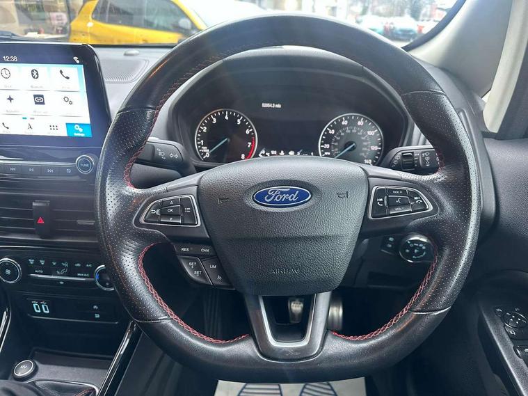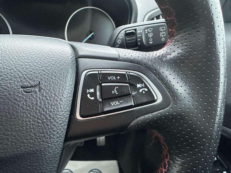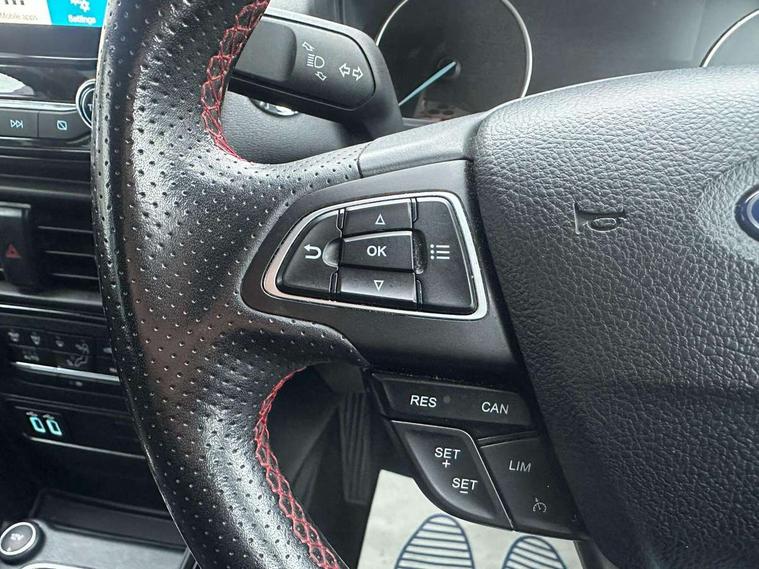 Cruise control, Easy fuel capless refuelling system, PAS, Rear parking sensors and rear view camera, SYNC 3 nav system with DAB radio, 8" touch screen, emergency assistance, Apple car play/Android auto, 2x USB sockets, Trip computer, Voice control system, Sports suspension, Steering wheel mounted audio controls, 'Quickclear' heated windscreen/heated washer jets, Auto dimming rear view mirror, Automatic headlights, Black roof rails, Body colour door handles, Body coloured bumpers, Body styling kit, Electric heated door mirrors, Front fog lights, Headlight levelling control, High gloss black front grille surround, Large rear spoiler, LED daytime running lights, Rain sensor windscreen wipers, Rear wiper, 12V socket in front and rear, 60/40 split rear seats, Ambient interior lighting, Ambient light, Centre console with sliding front armrest, Cooled glovebox, Courtesy lights with map reading light, Driver's side glovebox, Driver/passenger sunvisors and lidded vanity mirrors, EATC - Electronic Auto Temperature control, Folding grab handles, Footwell ambient lighting, Front head restraints, Front seat back map pockets, Front/rear floor mats, Height adjustable drivers seat with lumbar support, Illuminated glovebox, Illuminated luggage compartment, Isofix system on outer rear seats, Leather steering wheel/gearshift/handbrake lever with red stitching, Luggage compartment carpet, Overhead console with sunglasses holder, Part leather upholstery, Rake adjustable rear seats, Reach + rake adjustable steering column, Rear headrests, Stainless steel sports pedals, Steering wheel with chrome inserts, Storage drawers under front seats, Tie down hooks, Variable boot floor, 3x3 point rear seatbelts, ABS, Child locks on rear doors, Curtain airbags, Driver airbag, Drivers knee airbag, Electronic Stability Programme, Emergency brake assist, Front passenger airbag deactivation, Front side airbags, Hill launch assist, Passenger airbag, Seatbelt reminder for driver and front passenger, Traction control, Tyre pressure monitoring system, Immobiliser, MyKey system, Remote central locking, Thatcham 1 volume sensing alarm, Tyre repair kit,