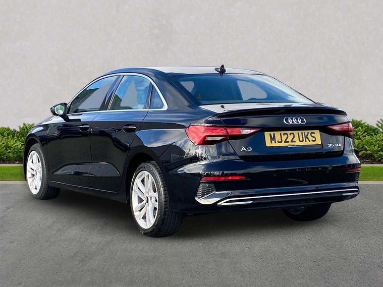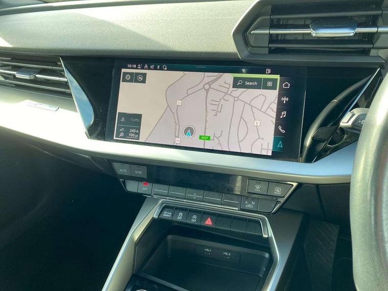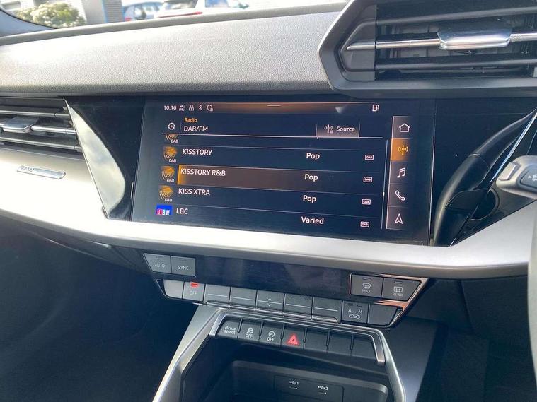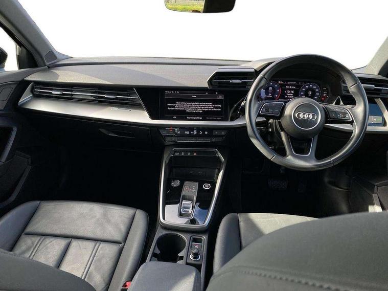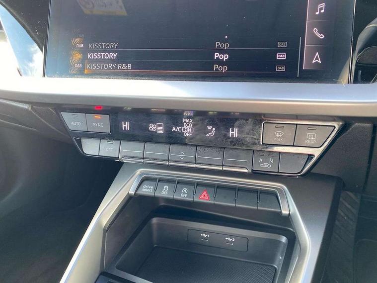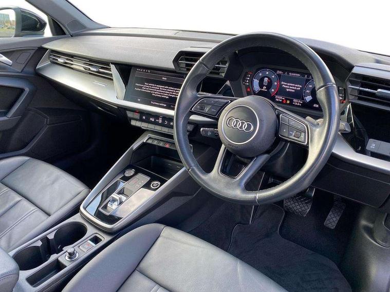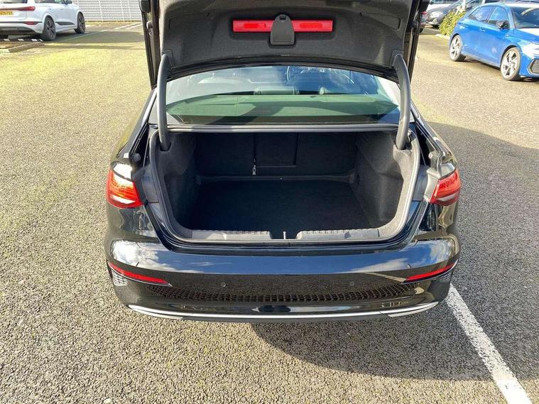 Audi connect emergency call and service, Audi drive select (Auto, Comfort, Dynamic, Efficiency and Individual), Audi smartphone interface, Audi Virtual Cockpit - 10.25" digital and colour instrument cluster, Automatic start/stop system with recuperation, Bluetooth interface, Collision avoidance assistant, Electromechanical power speed sensitive steering, Lane departure warning system, MMI Navigation Plus with high resolution 10.1" colour touch screen display, Service indicator, Voice control system with natural language interaction, Diesel particulate filter, Standard suspension, 2x USB Type C ports (for charging and data transfer), 6 passive loudspeakers, CD player, DAB Digital radio, 3rd brake light, Acoustic glass windscreen, Aluminium window trim, Auto dimming frameless rear view mirror, Body colour exterior mirrors, Body colour roof spoiler, Electrically adjustable/heated/folding/auto dimming door mirrors with integrated LED indications + kerb view function for passenger side, Front electric windows, LED daytime running lights, LED headlights and halogen rear lights, Light and rain sensors, Model and engine designation badges at rear, Rear boot, Rear electric windows, Rear side wing doors, Rear window, rear door windows and rear side windows in clear glass, 12V socket and storage compartment in front centre console, 3 seat bench in 2nd row, 40/20/40 split folding rear seat bench with cupholder, Dual zone electronic climate control, Front and rear headrests, Front centre armrest, Front door sill trims with aluminium inlay, Front/rear floor mats, Height and reach adjustable steering wheel, Interior lighting - Front and rear roof module including reading lights, glove compartment light and right hand side, Luggage compartment floor covering, Manual boot compartment lid, Manually adjustable front seats, Seat side bolsters, Single front passenger seat, Steel grey cloth headlining, Twin leather upholstery, Aluminium interior elements pack - A3, Sport styling pack - A3 Saloon, 3x3 point rear seat belts, Driver and front passenger airbag with passenger airbag deactivation, Electronic Stabilisation Control (ESC) including ABS, ASR and EDL, First aid kit with warning triangle and 2 safety vests, Front side airbags with head airbags and interaction airbag, Hill hold assist, Pre-sense front with pedestrian and cyclist detection, Seatbelt monitoring, Tyre pressure loss indicator, Anti theft alarm, Anti-theft wheel bolts, Immobiliser, Manual child locks, Remote control central locking, Aluminium air vent surrounds, Aluminium trim elements, Inlays with silk effect paint in platinum grey,
