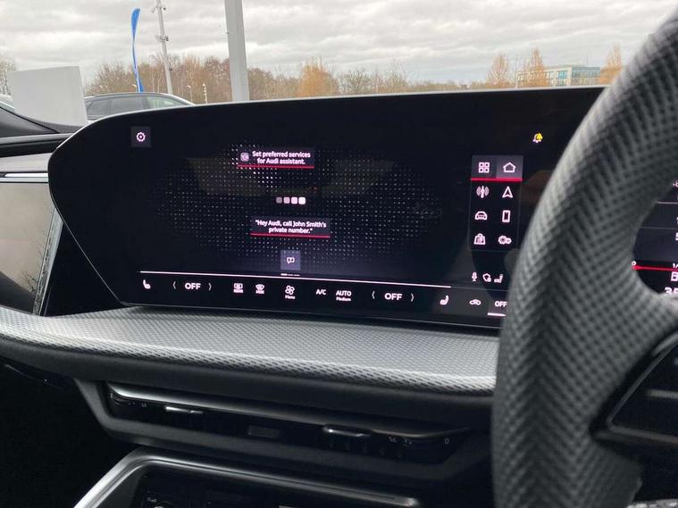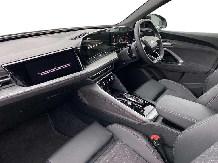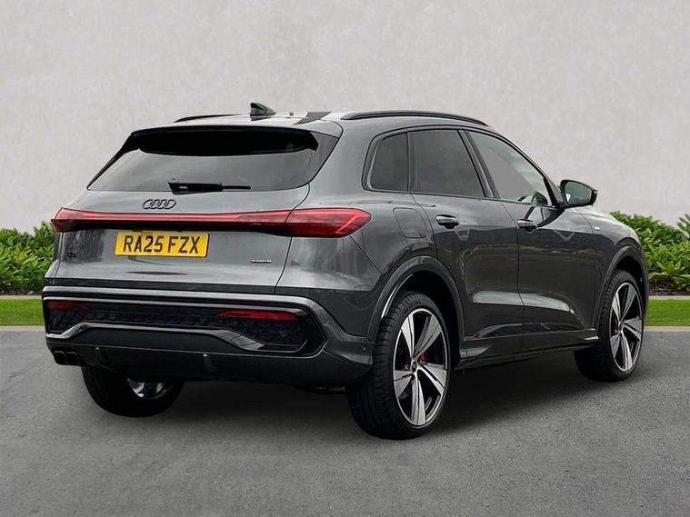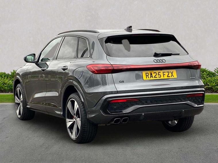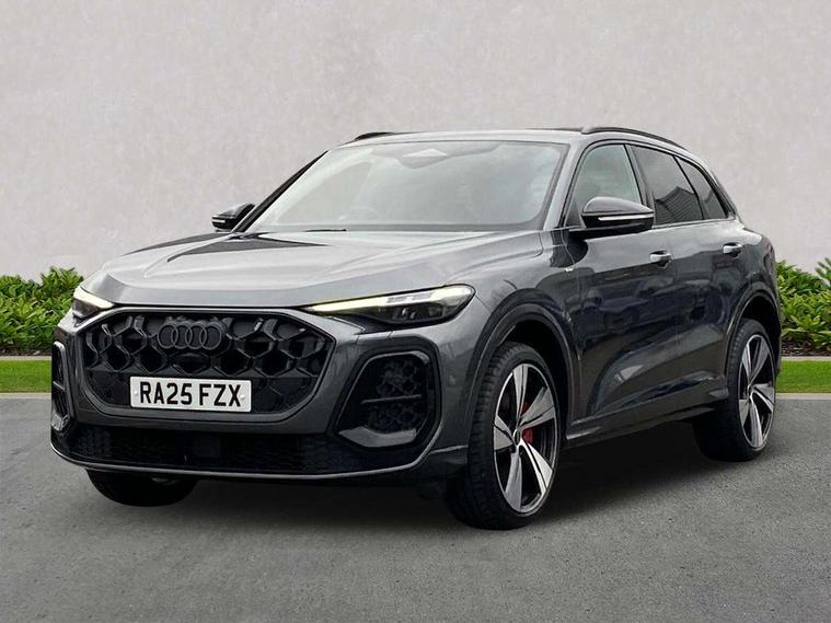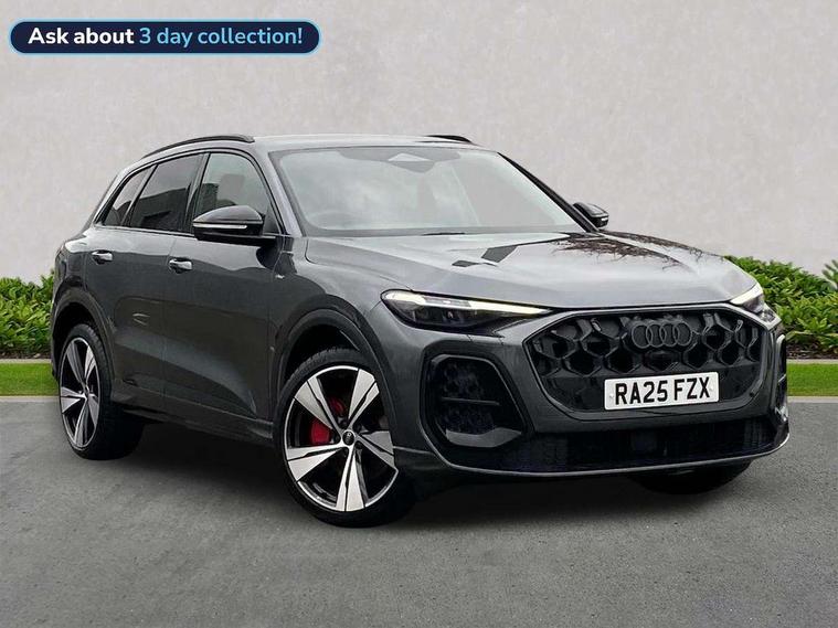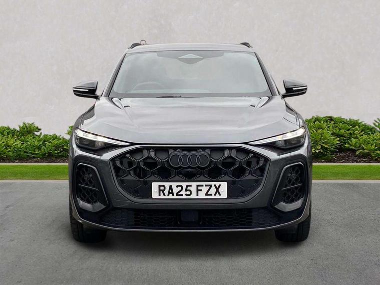 Adaptive cruise control, Advanced driver attention alert, Audi application store, Audi connect emergency call and service, Audi drive select, Audi smartphone interface, Audi virtual cockpit plus with 11.9" OLED colour display, Camera based traffic sign recognition, Fatigue monitor, Front cross traffic intersection assist, Lane change assistant with exit warning system, rear cross traffic alert and rear turn assist, Lane departure warning with emergency assist, MMI 10.9" front passenger touch display, MMI navigation plus with high resolution 14.5" OLED touchscreen colour display, Park assist plus, Parking system plus with 360 display, PAS, Reversing camera, Swerve assist and turn assist, Top view camera, Traffic sign based speed limiter, 2 USB-C ports in both the front and rear, Audi sound system impressive sound with 8 loudspeakers including centre speaker and subwoofer, 6-channel amplifier with a total output of 180 watts, DAB Digital radio, Smartphone compartment with wireless charging, Active digital light signatures - Six additional combinations of active daytime running light signature, Auto dimming rear view mirror, Black roof rails, Coming/leaving home lighting function, Electrically adjustable heated and folding + automatically dimming exterior mirrors, Exhaust tailpipes in dark chrome, Front and rear electric windows, Front door sill trims with aluminium inlays, illuminated with 'S' logo, Full body paint finish, Grill frame, inlay and front air inlets in matt anthracite chrome, Headlight cleaning system, Heated rear window, High beam assist, High gloss window surrounds, LED rear lights pro incl. dynamic rear indicators and illuminated light strip with animated coming and leaving home function, Logo projection light in exterior mirrors, Matrix LED headlights, Memory function for door mirrors, Privacy glass, Projection third brake light for rear window in LED, Radiator grille in phantom black, Rear and side windows with heat insulating glass, Rear honeycombe grille in matt black with inlay in matt anthracite chrome, Rear side wing doors, Rear wash/wipe, S Line badge on the front wings, Towbar preparation, Windscreen with acoustic glazing, 3 rear head restraints, 3 seat bench in 2nd row, 3 spoke leather steering wheel with multi-function buttons with touch control, flattened on top and bottom, with S badging and contrast stitching, 4 way electric lumbar support for driver and front passenger, 40:20:40 split folding rear seat bench with centre armrest and cup holders, Comfort centre armrest, Deluxe 3 zone electronic climate control, Dinamica microfiber/leather upholstery with diamond stitching, Electrically adjustable front seats with memory function for driver's side, Front and rear floor mats, Front sport seats with integrated head restraints, Headlining in black cloth, Heated front seats, i-Size child seat mounting on the front passenger side and outer rear seats, i-Size and top tether on the outer rear seats, Interior trim in aluminium look, Luggage compartment lid, electrically opening and closing, Manual steering column adjustment, S embossed logo on front sport seats, Single front passenger seat, Softwrap in Dinamica, Stainless steel pedals and footrest, Steering wheel grips in perforated leather and shift paddles, Ambient lighting package plus - Q5, Black styling package plus - Q5, Storage and luggage compartment pack - Q5, 3x3 point rear seatbelts, ABS, Acoustic vehicle alerting system, Convenience key with safelock, Driver and front passenger airbag with passenger airbag deactivation, Electric child safety locks, First aid kit with warning triangle and high visibility vests, Front emergency brake assist, Front side airbags with head airbag system and front interaction airbag, Hill hold assist, Occupant detection in rear seat area, Proactive passenger protection system for front, sides and rear, Red brake calipers, Side airbags in front and rear with head airbag system and front interaction airbag, Tyre pressure loss indicator, Anti theft alarm, Anti-theft wheel bolts, Remote control key with SAFELOCK and keyless go, Accent surfaces and control buttons in gloss black, Black dashboard with contrast stitching, Steel grey seat stitching, Upper and lower interior elements in dinamica microfiber, Tyre repair kit,