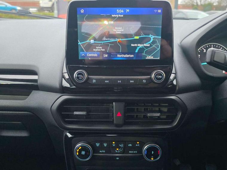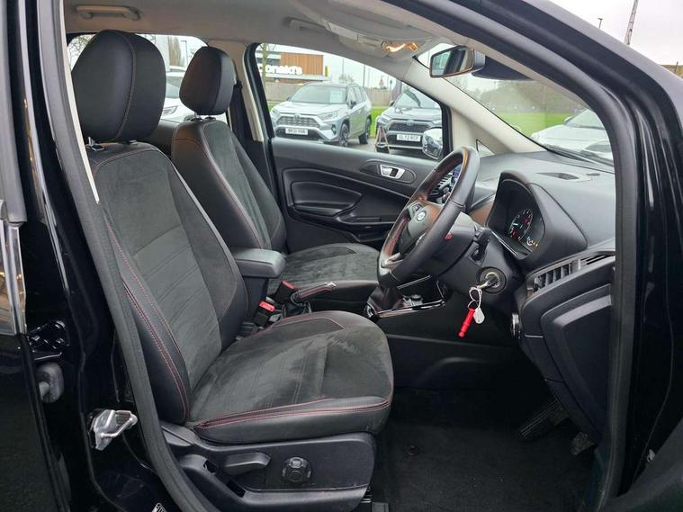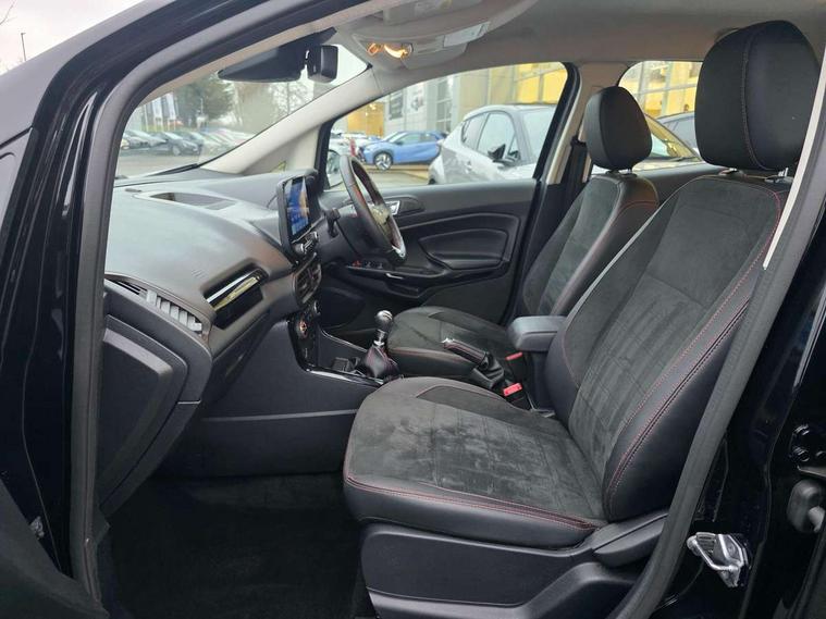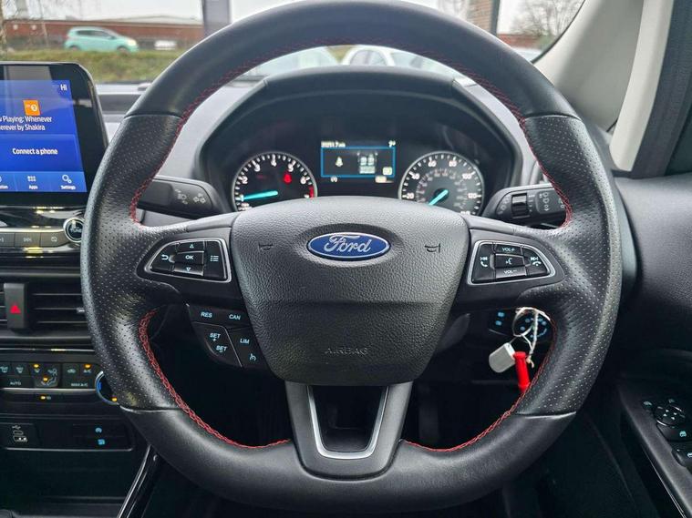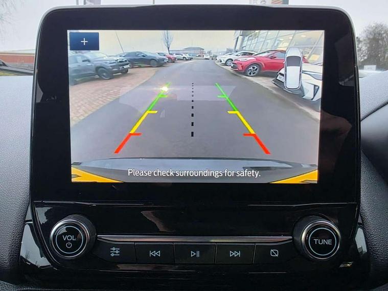 Cruise control, e-Call (emergency call), Easy fuel capless refuelling system, Ford SYNC 3 nav system with DAB radio, 8" screen, emergency assistance, Apple car play/Android auto, 2x USB, 6 speakers, Ford pass connect, Intelligent speed limiter, PAS, Rear parking sensors, Rear view camera, Traffic sign recognition, Trip computer, Sports suspension, Steering wheel mounted audio controls, Auto dimming rear view mirror, Automatic front wipers, Automatic headlights, Black roof rails, Body colour door handles, Body coloured bumpers, Chrome lower window surround, Electrically adjustable and heated door mirrors, Front fog lights, Front grille bars and surround in black, Headlight levelling control, Large rear roof spoiler, LED day running lights, LED third brake light, Power front and rear windows, Puddle lights, Quick-clear heated windscreen, Rear side wing doors, Rear wiper, ST Line body styling kit - Black headlamp bezel, front and rear sport bumpers, body colour lower door claddings, 12V socket in front and rear, 3 seat bench in 2nd row, 60/40 split rear seats, Ambient lighting, Centre console with sliding front armrest, Cooled glovebox, Courtesy lights with map reading light, Driver seat height/lumbar adjust, Driver's side glovebox, Driver/passenger sunvisors and lidded vanity mirrors, EATC - Electronic Auto Temperature control, Folding grab handles, Front head restraints, Front seat back map pockets, Illuminated glovebox, Illuminated luggage compartment, Isofix system on outer rear seats, Luggage compartment carpet, Neosuede/Partial sensico leather upholstery, Overhead console with sunglasses holder, Rake adjustable rear seats, Reach + rake adjustable steering column, Rear headrests, Sensico trimmed steering wheel, handbrake and gearshift gaiter with red stitching, Single front passenger seat, ST-Line Front floor mats with red stitching, Stainless steel sports pedals, Storage drawers under front seats, Tie down hooks, Variable boot floor, 3x3 point rear seatbelts, ABS, Autonomous emergency braking, Child locks on rear doors, Curtain airbags, Driver airbag, Drivers knee airbag, Electronic Stability Programme with hill launch assist, Front passenger airbag deactivation, Front side airbags, Passenger airbag, Pre collision assist system with AEB, Seatbelt reminder for driver and front passenger, Traction control, Tyre pressure monitoring system, Immobiliser, MyKey system, Remote central locking, Thatcham 1 volume sensing alarm, Low rolling resistance tyres, Tyre inflation kit,