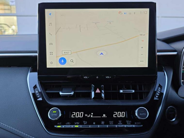 10.5" Multimedia display screen, 12.3" multi information screen, Adjustable speed limiter, Bluetooth telephone connectivity, Colour multi information display with 3D, Connected car functionality upgrade, tracker, remote status and e-care, Drive mode select (Eco, Normal), E-call, Electrically assisted power steering, EV drive indicator, Front and rear parking sensors, Full Digital 12.3" TFT Digital Combimeter, Gear position indicator with meter, Hybrid system indicator, Intelligent parking assist, Key reminder warning, Lane Departure Alert (LDA) switch on steering wheel, Lane departure alert - LDA, Memory on adjustable speed limiter, MyT connected services, Proactive driving assist (PDA), Reversing camera, Smart entry and push button start, Smartphone integration with Apple CarPlay and wired android auto, Speedometer, Toyota remote services, Toyota smart connect multimedia system, Toyota smart connect navigation, Wireless charger, Catalytic converter, Double wishbone rear suspension, Electric accelerator pedal, Front and rear stabilizers, Front differential 2.834, Gasoline particulate filter, MacPherson front suspension, Vehicle Stability Control (VSC), 6 speakers, DAB Digital radio, Smart voice assist/ Voice recognition, USB connector, 20% privacy rear side and quarter glass, A - Pillar garnish, Adaptive automatic high beam system (AHS), Aluminium roof rails, Anti-jam protection on power windows, Auto dimming rear view mirror, Auto headlights, Auto up and down function on all power windows, Automatic folding mirrors, B - Pillar in Black, Black door moulding, Black metallic meshed front grille, Black side air vents, Black toyota logo in front, Body colour rear roof spoiler, Body coloured door mirrors, Body coloured front spoiler, Body coloured outside door handles, Body coloured rear bumpers, Electrochromatic mirror, Ethanol washer fluid, Follow me home headlights, Front and rear fender high liner, Front bumper, Fuel caution label, Gloss black diffuser, Gloss black upper front grille, Height memory opening on power tailgate, LED daytime running lights, LED dual beam projector headlights, LED front fog lights, LED High mounted stop light, LED rear combi lights with LED lightguide, Light remind warning with auto cut off, Lower back and back door plated garnish, Manual headlight levelling system, New grille pattern, Noise reduction layer on front windows, Noise reduction layer on windscreen, Paint protective wrap guard, Power adjustable heated door mirrors, Power front windows, Power rear windows, Power tailgate with kick sensor, Rain sensing wipers, Rear bumper decoration with chrome plated inserts, Rear privacy windows, Rear side wing doors, Rear under guard with chrome ornament, Rear window defogger, Rear window wiper, Remote tailgate release on key, Reverse tilting door mirrors, RHD aimed headlight levelling system, Satin chrome insert on front door assist grips, Satin chrome inserts on rear passenger air vents, Satin chrome surround on lower front grille, Shark fin antenna, Single exhaust tailpipe, Tailgate release with push button, Tailgate remote release in cabin, Time adjustment on intermittent wiper, Turning signal integrated indicators in door mirrors, Unique lower skirt, UV-filter on driver and passenger windows, 12v power outlet - front, 12v power outlet - luggage side, 2 Shopping bag hooks in luggage compartment, 3 rear height adjustable headrests, 3 seat bench in 2nd row, 3 spoke steering wheel with satin insert, 4 tie down hooks in luggage compartment, 60/40 split folding rear seat, Adaptive cruise control (ACC) switch on steering wheel, Adjustable speed limiter switch on steering wheel, Aluminium door scuff plates with corolla batch, Audio, multi-info and telephone switches on steering wheel, Automatic light control system, Black armrest on centre console box, Black out with door sash and wheel house, Boot underfloor storage, Center console cover, Clean air filter, Driver and front passenger personal light, Driver and passenger sun visor with mirror and light, Dual level deckboard, Dual mike in roof, Dual sided boot floor, Dual zone automatic air conditioning with ECO mode switch, Electric lumbar support for passenger, Fabric upholstery, Forward tilting 2nd row seats, Front and rear bottle holders, Front and rear door pockets, Front console box with stitching, Front floor mats, Front head restraints, Front overhead assist grips, Front passenger seat, Front sliding synthetic leather armrest, Gear knob, Gloss black gear shift console, Heated front seats, Illuminated entry system in room lamp, ISOFIX child restraint system, Leather gear shift with satin chrome on gear shift console, LED boot light, Manual height adjustable for driver and front passenger seat, Manual tilt and telescopic steering wheel, Manually sliding driver seat, Manually sliding front passenger seat, Matt black front door assist grip, Nanoe-X air purifier, Passenger seat back pocket, Pollen filter, Power adjustable lumbar support on driver seat, Power window switches with satin chrome inserts, PVC door armrest, Rear air vents, Rear armrest with 2 cupholders, Rear fabric floor mats, Rear overhead assist grips, Rear passenger coat hooks (2), Rear passenger personal lights, Refrigerant correspondent hf01234f, Regulation compliancy wvta label +, Remote air conditioning, Remote controlled Toyota easy flat system, Retractable tonneau cover with luggage partition net, Satin chrome inserts on centre air vents, Satin chrome inside door handles, Satin chrome surround on heater control panel, Satin chrome surround on multimedia, Satin chrome surround on speedometer, Side storage in boot, Slow opening glovebox with lights, Soft touch front and rear door trim, USB charger front, Voice recognition switch on steering wheel, Whiplash Injury Lessening (WIL) feature (active headrest) for seats, White ambient lighting on open tray and front cup holder, Toyota safety sense 3 pack - Corolla, 15" Front brakes, 3x3 point rear seatbe