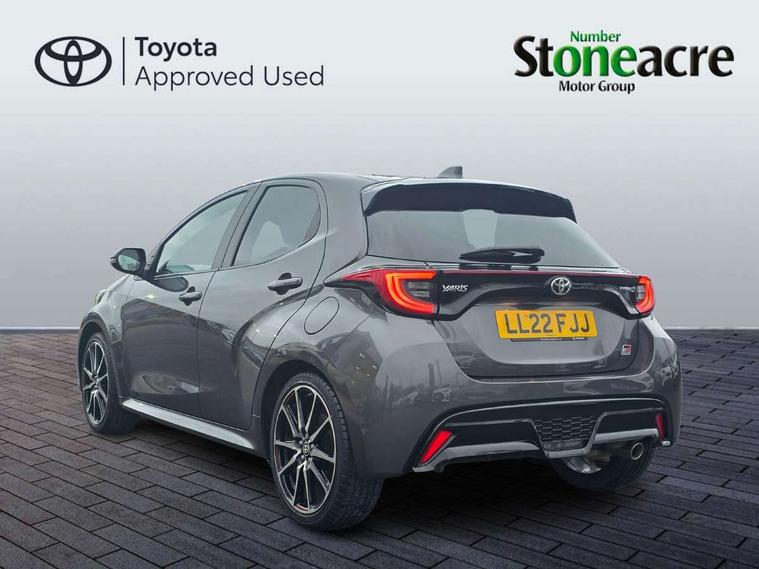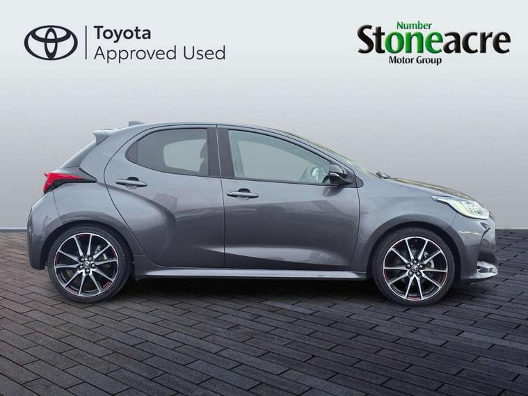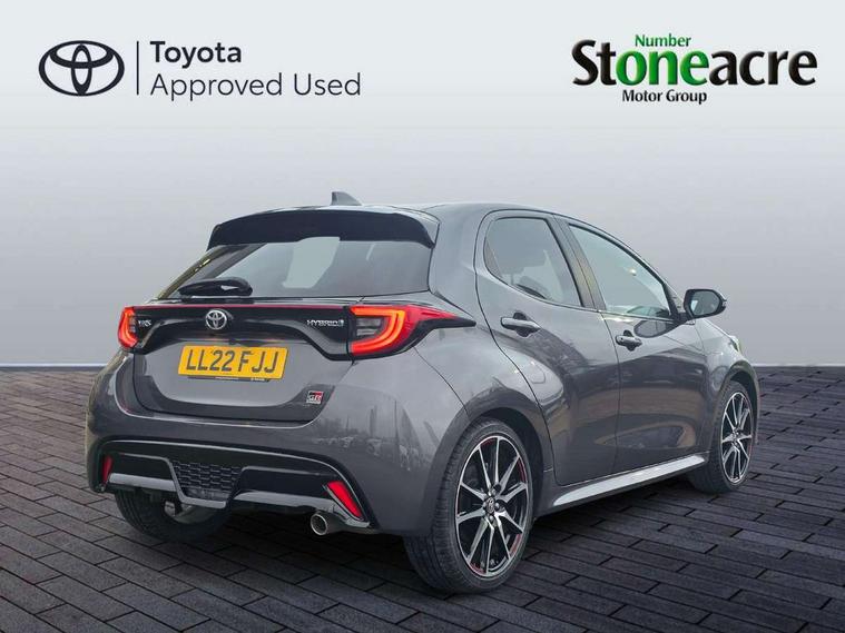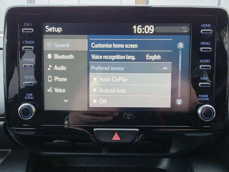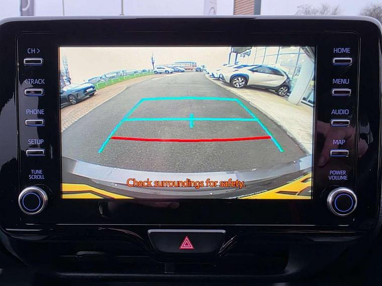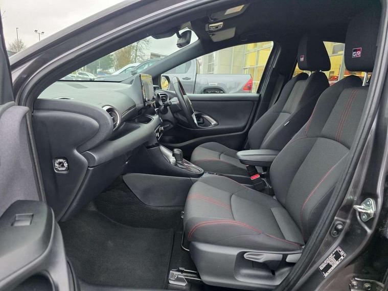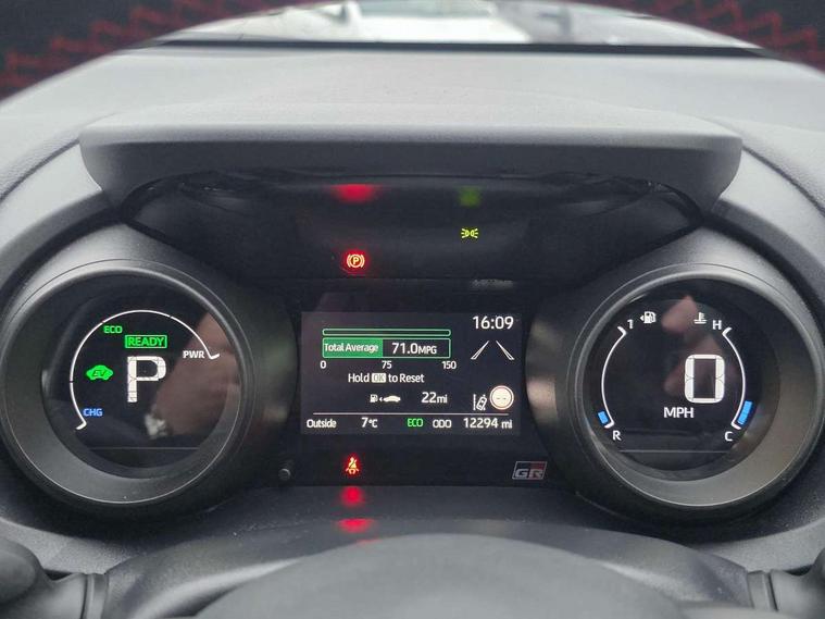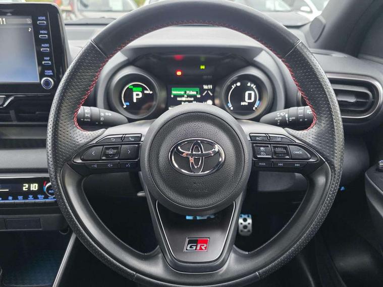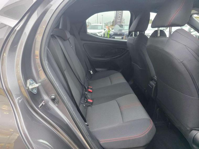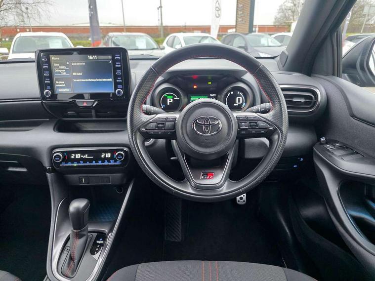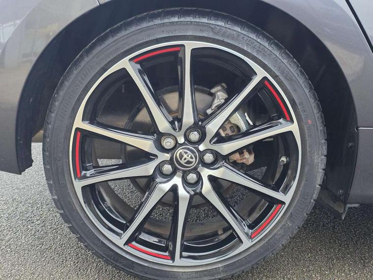Adaptive cruise control, Adjustable speed limit with speed warning, Bluetooth connectivity, Colour binocular inspired displays with digital speedometer, E-call, Electric power steering, Hybrid energy display, Multi information display switches on steering wheel, Reversing camera, Smartphone integration with Apple CarPlay and Android auto, Voice recognition, Vehicle Stability Control (VSC), 6 speakers, 8" Multimedia display touch screen, Toyota Touch 2 with DAB, USB connection, Acoustic windscreen glass, Auto windscreen wipers, Automatic headlights, Body coloured door mirrors, Dark chrome lower meshed front grille, Electric adjustable heated door mirrors, Follow me home headlights, Front auto power windows with anti jam protection, Full LED rear lights, LED daytime running lights, LED front fog lights, LED front light guide, LED Headlights, LED High mounted stop lamp, LED Indicators, LED rear light guide, Manual headlight levelling, Painted chequered front grille with hot stamp in mesh design, Rain sensor, Rear auto power windows with anti jam protection, Rear privacy glass, Rear side wing doors, Rear spoiler, Rear wiper, Shark fin antenna, Turning signal integrated indicators in door mirrors, 3 adjustable rear headrests, 3 spoke leather steering wheel, 60/40 split folding rear seat, Active headrests, Adjustable boot height, Black roof lining, Coat hooks in rear grab handles, Cup holders (2 front & door), Data Communication Module (DCM) connected services, Dual zone automatic air conditioning, Fabric upholstery with red stitching, Front armrest, Front sport seats, Glovebox, Height adjustable driver's seat, Height adjustable passenger seat, Isofix seat fixing, Leather gearshift, Map pockets on the backs of the front seats, Pollen filter, Shopping bag hooks, Single front passenger seat, Tilt/telescopic steering column, 3 point seatbelts on all rear seats, ABS+EBD+Brake assist, Electronic parking brake, Emergency brake light system (EBS), Front passenger airbag on/off switch, Front seatbelt reminder, Hill start assist control (HAC), Rear child proof door locks, Rear seat belt reminder, Supplemental Restraint System (SRS) 8 airbags: Driver & passenger's airbags, dual side curtain airbags, side impact airbags, front centre airbag, Toyota Safety Sense 2, Precollison + Night time Pedestrian & Cyclist Detection, Lane Trace Assist, Auto High Beam, Intelligent ACC & Road Sign Assist, Tyre pressure warning system, 2x Master key, Alarm/immobiliser, Keyless smart entry with push button start, Remote AC via MyT, Remote locking via MyT, Remote powered central double locking doors, GR Sport interior styling with accents and exterior styling, Piano black interior trim, Soft touch instrument panel, Space saver spare wheel,