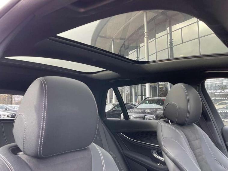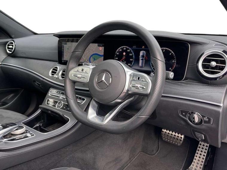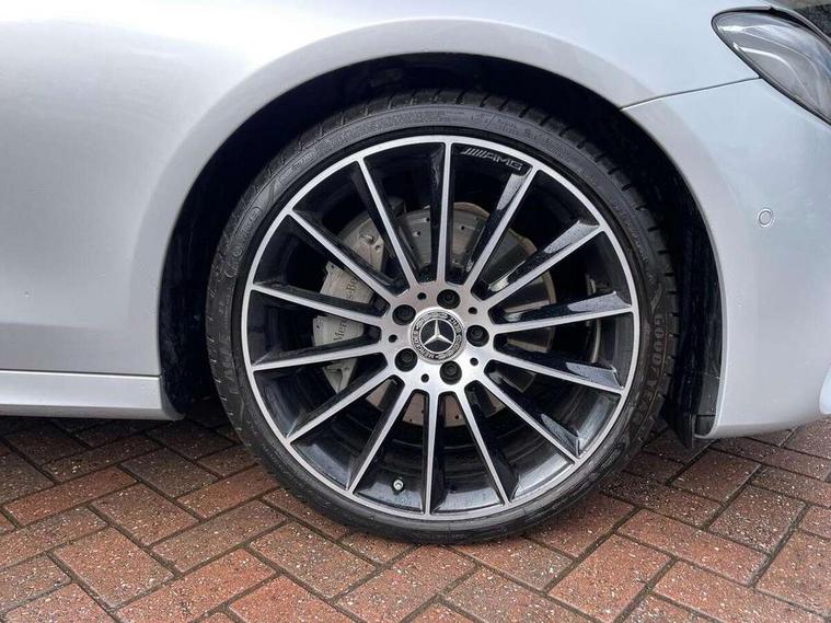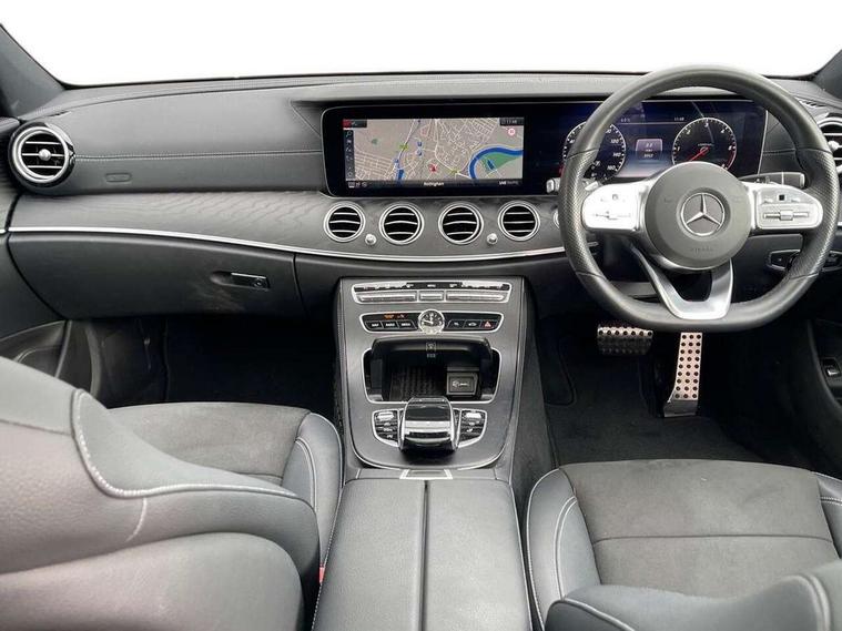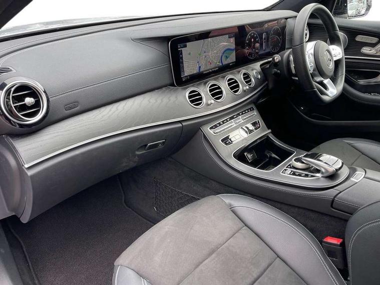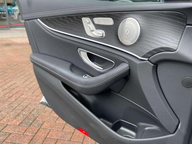 Active parking assist and 360 camera, Analogue clock, Attention assist, Blind spot assist, Boot release from drivers seat, Brake wear warning light, COMAND online HDD navigation with media interface with 12.3 inch colour display, WLAN/Wi-Fi hotspot, Car-to-X Communication, Direct steer speed sensitive steering, DYNAMIC SELECT with a choice of driving modes (ECO, Comfort, Sport, Sport+ and Individual), Easy-pack tailgate - Powered opening/closing automatically, Mercedes connect me, Multi function trip computer, Outside temperature display, Remote boot release, Service indicator (ASSYST), Smartphone integration via Android Auto/Apple CarPlay, Media Interface, USB and Bluetooth interface, Status display for rear seat belts in instrument cluster, Stop/start system, Touchpad with control wheel, Traffic sign assist, Wireless charging, 25 litre AdBlue tank, 66 litre fuel tank, Agility control sports suspension with selective damping system and lowered by 15mm, Diesel particulate filter, Incorrect fuelling protection, Rear air suspension with level control, 2 USB ports in centre console, 2 USB ports in the rear, Burmester surround sound system with 13 speakers, DAB Digital radio, Adaptive brake lights, Aerial integrated in rear window, AMG bodystyling front and rear aprons and side skirts in polished aluminium, Body colour door handles, Chrome roof rails, Chrome trim on the front bumper and high gloss black trim on the rear bumper, Electric panoramic glass sunroof, Electric windows with one touch opening/closing and obstruction sensors, Electrically adjustable and heated door mirrors, Front apron in high gloss black, Front LED fog lights with cornering function, High gloss black door mirrors, LED High Performance headlamps including integral LED daytime running lamps, LED rear lights, MULTIBEAM Intelligent Light System with Adaptive Highbeam Assist, Privacy glass (rear side windows and rear screen), Radiator grille with integral star and 2 louvres in high gloss black, Rain sensor windscreen wipers, Rear wiper, Top surround of side windows in polished aluminium, Visible twin exhaust tailpipe in bumper, Waistline trim strip in high gloss black, 3 spoke flat bottom AMG steering wheel with trimmed in black nappa leather, 40:20:40 split folding rear bench seat, Artico man-made leather/Microfibre Dinamica upholstery, Auto dual-zone climate control system, Auto Mercedes-Benz child seat recognition sensor, Black roof lining, Chrome door pins, Courtesy lights in rear grab handles with reading light functionality, Electric height/reach adjustable steering column, Floor mats with AMG lettering, Folding shopping box, Four way partially front electric seat adjustment, Front and rear door pockets, Front centre armrest with storage compartment, Front door sills with illuminated Mercedes lettering, Glasses compartment in overhead control panel, Head restraints for driver and front passenger (four-way adjustability) and in rear (two-way), Heated front seats, Interior lighting - 64 colour Ambient lighting, Interior rear light/integral reading lights, Lockable/illuminated air conditioned glovebox, Sports pedals in brushed stainless steel with black rubber studs, Steering column electrically adjustable for height and reach, Steering wheel multifunction with gearshift paddles, Steering wheel touch control buttons for audio and onboard settings, Storage compartment with 12V socket in centre console, Sunvisors with illuminated vanity mirrors, Keyless Go comfort pack - E Class, Memory pack - E Class, Mirror pack - E Class, Parking package including 360 degree camera - E Class, Seat comfort pack - E Class, Stowage pack - E Class Estate, 3x3 point rear seatbelts, Active bonnet, Active brake assist, Adaptive brake system with HOLD function and brake drying in the wet, Anti-lock braking system (ABS), Black seat belts, Childproof locks manually operated for rear doors and electrically operated for rear power windows, Driver and passenger side/thorax airbags, Driver/front passenger airbag, Drivers knee airbag, Electronic parking brake, Electronic Stability Programme, Hill hold assist, Hill start assist, ISOFIX child seat attachment points two outer rear seats, Perforated front brake discs with "Mercedes-Benz" lettering, Pre-Safe anticipatory safety system, Seat occupancy sensor, Seatbelt warning, Tyre pressure monitoring system, Warning triangle and first aid kit, Window airbags, Alarm system/interior protection/immobiliser, Central locking with interior switch, automatic locking and crash sensor with emergency opening function, Chrome surround in electric key, Black open pore ash wood dashboard and door trim + Centre console in black open pored ash wood, Contrast stitching, 20" AMG multi spoke light alloy wheels painted in high gloss black sheen finish - RVR, Run flat tyres,