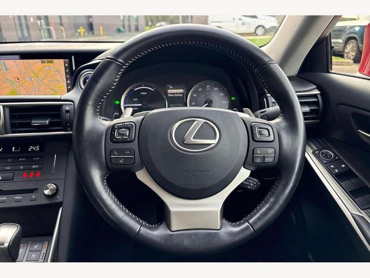 4 driving modes EV/Eco/Normal/Sport, 4 x front and 4 x rear parking sensors, Analogue clock, Bluetooth telephone connectivity, Lane change flasher function, Lexus navigation system, Lexus safety systems+ consisting Dynamic radar cruise control (DRCC), Pre collision system (PCS), Lane keep assist (LKA), Road sign assist (RSA), Push button starter, Speed sensitive power steering, Trip computer, E-CVT with 6 stage sequential shift and kick down switch, VDIM, Vehicle Stability Control (VSC), 2 USB sockets, Aux-in socket, DAB Digital radio, Lexus media display with 6 speakers, 7" display screen, CD and rotary dial controller, Radio/CD, Automatic headlights, Black scuff plates, Body adhesive, laser screw welding and laser brazed roof structure, Electric front/rear windows, Headlight washers, Heated and electrically folding outside mirrors with turn indicators and puddle light, LED brake lights and rear lights with emergency brake signal, LED daytime running lights, LED headlights with automatic high beam, Pop up hood, Rear fog lights, 2 cup holders in the front and rear centre console, 2 map pockets in the rear, 2 x coat hooks in the rear, 2 x sun visors with vanity mirror and lamp, 3 spoke leather steering wheel with paddle shift, 4 x tie down hooks in the boot, 6 way manually adjustable front seats, 60/40 split folding rear seat with lock, Active sound control, Card holder installed in driver and passengers sun visors, Driver and passenger door pockets with bottle holders, Dual zone climate control air conditioning system with S flow and electrostatic temperature control switch, Fabric upholstery, Front and rear LED interior lighting, Front centre armrest with storage, Front headrests, Heated front seats, Leather gear lever, Manual adjustable steering column with lock protect, Rear armrest with 2 cup holders and storage, Rear headrests, Self charging hybrid, Soft console knee pads, Textile carpet mats, 2 x Isofix child rear seat restraints, 3 point ELR (Emergency Locking Retractor) front seat belt with pretensioners, 3 point rear seatbelts, ABS+EBD+Brake assist, Active bonnet, Driver and front passenger 2 stage airbag, Driver and front passenger knee airbag, Driver and passenger side airbags, Electronically controlled braking, Front and rear curtain airbags, Hill start assist control (HAC), Passenger airbag deactivate switch, Traction control, Tyre pressure monitoring system, Anti-theft system with siren, intrusion sensor, tilt sensor and immobiliser, Locking wheel nuts, Two motion door lock with double lock, VIN Window etching, 17" Alloy wheels, Run flat tyres,