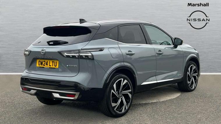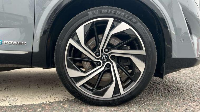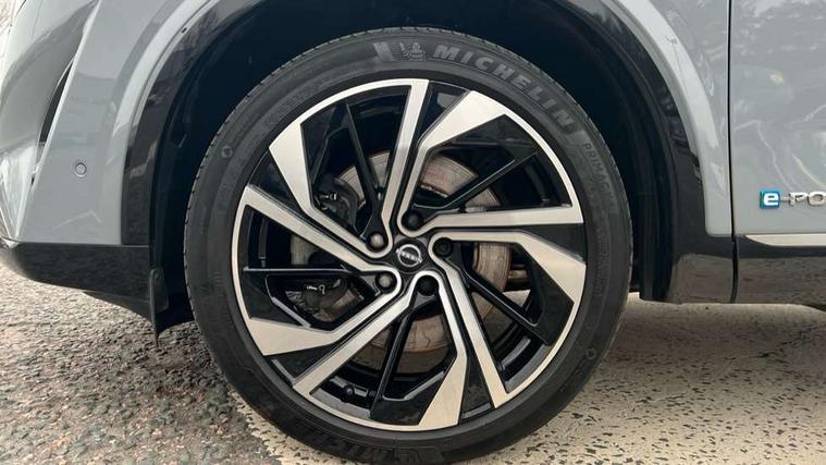 2 front USB-C ports, 2 rear USB-C ports, 360 degree Intelligent around view monitor with moving object detection, Advanced windscreen head up display, Blind spot intervention, Blind spot warning, Drive assist custom mode, Drive modes (sport, normal, eco), Driver drowsiness and attention warning, e-Pedal step, Electric speed sensitive power steering, Emergency and breakdown call, Emergency lane keep assist, Emergency Stop Signal (ESS), Engine start/stop button, EV mode switch, Event data recorder, Front and rear parking sensors, Full Digital 12.3" TFT Digital Combimeter, Google virtual personal assistance, Hands free power tailgate, Idle stop/start system, In-car WIFI hotspot, Intelligent Cruise control (ICC), Intelligent forward collision warning, Intelligent speed assist, Lane departure warning system, Nissan connect 12.3 inch touchscreen infotainment system, Nissan connect navigation with google maps, Nissan connect services 2.0 (Google Automotive System), Outside temperature sensor, Rear cross traffic alert, Reversing detection, Traffic jam pilot, Wireless Apple CarPlay/Android Auto, Wireless charging pad, Limited slip differential, Multi link suspension, 10 Bose speakers - 2 tweeters, 6 high and medium frequency door speakers and 2 in subwoofer, AM/FM audio system with DAB, Bluetooth audio streaming, Bose acoustimass bass box, Auto dimming frameless rear view mirror, Auto rear wiper when reversing, Body colour mirror caps, Body coloured bumpers, Body coloured door handles, Bodyside mouldings, Chrome side window finisher, e-POWER badging, Electric auto folding door mirrors, Electrically adjustable and heated door mirrors with LED turn indicator, Follow me home headlights, Glossy black bumper inserts and fenders, High beam assist, Intelligent auto headlights, LED 3rd brake light, LED daytime running lights, LED headlights with adaptive driving beam, LED rear lights, LED sequential turn lights, One touch front and rear electric windows with remote opening and closing, One touch passenger window, Rear privacy glass, Rear roof spoiler, Rear side wing doors, Rear styling plate, Reverse tilting door mirrors, Shark fin antenna, Silver roof rails, Splash free rain sensing wipers, Super RED rear LED lights, Super UV and infrared cut glass, Thermaclear heated windscreen, 3 bench rear seats in 2nd row, 3 rear headrests, 60/40 split folding rear seat bench, Chrome interior door handles, Dark headlining, Driver seat back pocket, Dual zone automatic climate control with pollen filter, e-POWER shifter, Fixed Glass roof with electric sunshade, Front door with bottle holders, Heated front seats, Heated steering wheel, Height adjustable front headrests, Luggage board system, Luggage space lighting, Multifunction steering wheel, Passenger seat back pocket, Quilted premium leather upholstery, Rear door bottle holders, RGB ambient light (Full area coverage), Single front passenger seat, Smooth leather steering wheel, Tilt/telescopic adjustable steering wheel, Two rear isofix child seat anchorage points with top tether, 3x3 point rear seatbelt pretensioners + load limiters, Autonomous emergency braking, Child locks on rear doors, Curtain and front side, far side airbags, Driver and passenger airbags, Driver, passenger and 2nd row rear seat belt reminder, Electric handbrake with auto hold function, Front seatbelt pretensioners + load limiters, Height adjustable front seatbelts, Hill start assist, intelligent front emergency braking, Rear automatic braking, Tyre pressure monitoring system, Vehicle dynamic control, Engine immobiliser, Intelligent key with walk away lock and approach unlock functions, Remote central door locking with deadlocking, Thatcham alarm, 20" Diamond cut alloy wheels, Tyre puncture repair kit,