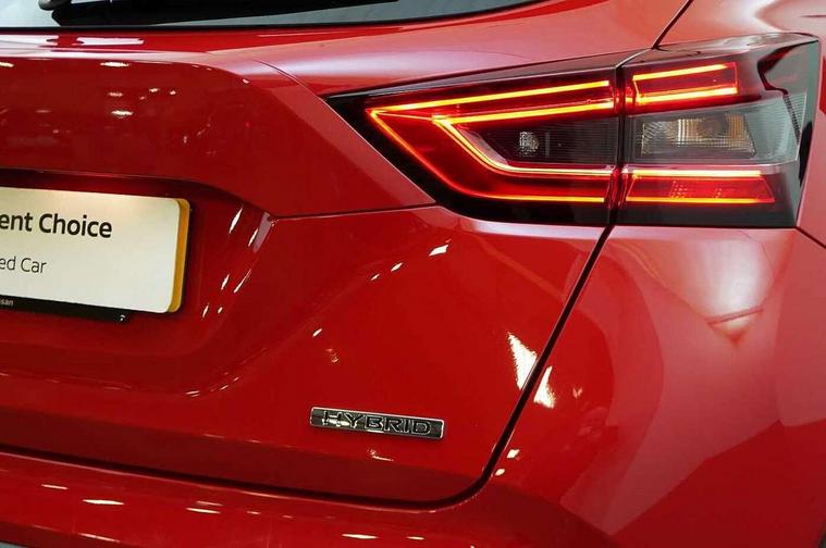 7" full colour TFT screen combimeter, Apple CarPlay and Google Android auto, Drive modes select (Eco, normal and sport), e-Pedal step, Emergency and breakdown call, EV mode selector, Front parking sensor, Intelligent lane intervention, Lane departure warning system, Nissan connect 8" touch screen entertainment system, Nissan connect nav with TomTom traffic, Nissan connect services and Wifi connection, Outside temperature sensor, Power Steering, Rear parking sensor, Traffic sign recognition, Trip computer, Voice recognition, Gasoline particulate filter, 6 speakers, Bluetooth system, USB, Aux-in and 12V socket, DAB Digital radio, Rear console USB port, Auto dimming interior rear view mirror, Auto headlights, Automatic hazard signal with emergency stop signal, Body colour bumpers, Body colour door handles, Electrically adjustable door mirrors with integrated indicators, Follow me home headlights, Front and rear electric window with one touch driver window, Heated and auto folding door mirrors, High beam assist, LED daytime running lights, LED headlamps, LED rear fog lamp, LED rear lamps, Rain sensor windscreen wipers, Rear privacy glass, Rear side wing doors, Rear wiper, Three blink turn signal, 3 height adjustable rear headrests, 3 seat bench in 2nd row, 60/40 split folding rear seat, Automatic climate control, Card holder on driver sunvisor, Cloth upholstery with black and metallic grey syntech leather inserts, Driver and passenger sliding and reclining seats, Driver side rear coat hanger, Driver/passenger sunvisors and vanity mirrors, Front and rear cabin lights, Front armrest, Front door pockets with bottle holders, Front head restraints, Front/rear passenger grab handles, Grey synthetic leather kneepad, Height adjustable driver's seat, Internal chrome door handles, Leather gearshift knob, Leather steering wheel, Luggage board, Luggage space lighting, Monoform sporty seats, Multifunction steering wheel, Rear door bottle holders, Single front passenger seat, Steering wheel mounted gearshift paddles, Telescopic steering wheel adjustment, Two cupholders in front centre console, Two rear isofix child seat anchorage points with top tether, Welcome light and console tray ambient lighting, ABS with EBD and brake assist, Active ride control, Active Trace Control, Driver and passenger airbags, Driver and passenger side airbags, Electric handbrake with auto hold function, Electronic Stability Programme (ESP), Front and rear curtain airbags, Height adjustable seatbelts, Hill start assist, Intelligent emergency braking with pedestrian and cyclist recognition, Rear door child safety locks, Seatbelt reminder for driver/front passenger and rear seats, Single tone horn, Three 3 point rear seatbelts, Traction control, Tyre pressure monitoring system, VDC Dynamic Vehicle Control, Ventilated rear brake discs, Alarm, Immobiliser, Intelligent key and start push button with walk away lock and approach unlock functions, Remote central locking,