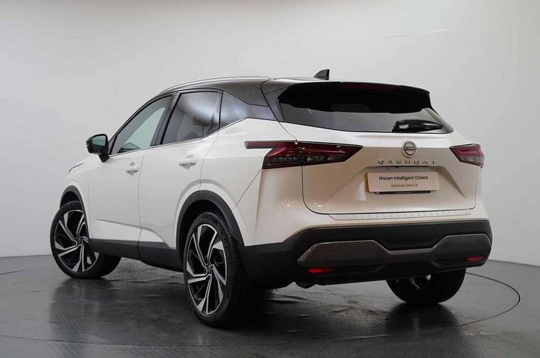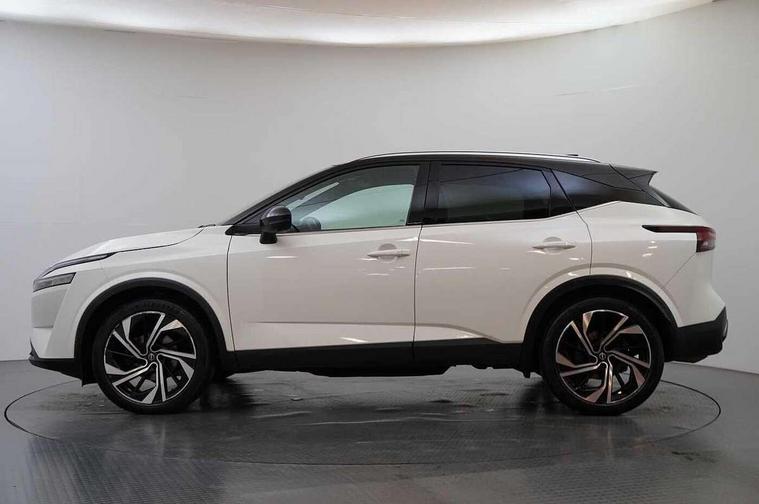 Advanced windscreen head up display, Android auto/Apple CarPlay (Wired), Blind spot warning, Drive modes (sport, normal, eco, snow, off-road), Electric speed sensitive power steering, Emergency and breakdown call, Front and rear parking sensors, Full Digital 12.3" TFT Digital Combimeter, Google maps services - search, weather, 3D maps and Google street view, Hands free power tailgate, Idle stop/start system, Intelligent around view monitor, Intelligent Cruise control (ICC), Intelligent driver alert system, Intelligent forward collision warning, Intelligent lane intervention, Lane departure prevention, Lane departure warning system, Lane keep assist, Moving object detection, Nissan connect 12.3 inch touchscreen infotainment system, Nissan connect navigation, ProPilot, Push button starter, Rear cross traffic alert, Rear view camera, Remote control services - door locks, lights, horn and car locator, Telematics - notifications and connectivity services, TomTom live traffic services, Traffic jam pilot, Traffic sign recognition with legal speed adjustment, Trip computer, Virtual personal assistant and firmware over the air capability, Wireless apple carplay, Wireless charging pad, 10 Bose speakers - 2 tweeters, 6 high and medium frequency door speakers and 2 in subwoofer, AM/FM audio system with DAB, Bluetooth audio streaming, Bose acoustimass bass box, Digital amplifier, Front USB connections (Type-A and Type-C), Rear USB charging only ports (Type-A and Type-C), Auto dimming rear view mirror, Auto rear wiper when reversing, Automatic hazard signal with emergency stop signal, Body colour mirror caps, Body coloured door handles, Bodyside mouldings, Chrome side window finisher, Door handle with button, Door mirror memory, Electric auto folding door mirrors, Electrically adjustable and heated door mirrors with LED turn indicator, Follow me home headlights, Front and rear LED turning signals, Headlights auto levelling system, Intelligent auto headlights, LED daytime running lights, LED front fog lights, LED headlights with adaptive driving beam, LED rear lights, One touch front and rear electric windows with remote opening and closing, Privacy glass, Rear bumper with graphite insert, Rear reversing light (bulb lighting), Rear roof spoiler, Rear side wing doors, Rear styling plate, Reverse tilting door mirrors, Shark fin antenna, Splash free rain sensing wipers, Super UV and infrared cut glass, Thermaclear heated windscreen, Three blink turn signal, 12v power socket in dashboard and luggage, 2x Rear coat hooks, 3 bench rear seats in 2nd row, 3 rear headrests, 4 folding assist grip, 6 Luggage hooks - 4 on floor, 2 on side, 60/40 split folding rear seat bench, Ambient lighting around centre console, Ambient lighting in front doors, Centre console storage tray, Chrome interior door handles, Dark black/blueish PVC wrapping, Dark headlining, Driver and front passenger sunvisors with illuminated vanity mirrors, Driver seat back pocket, Dual zone automatic climate control with pollen filter, Electric 4-way lumbar support for drivers seat, Electric adjustable 4 way lumbar support for passenger seat, Electrically adjustable driver seat with massage and memory functions, Front and rear door storage, Front centre console and armrest, Front cupholders x 2, Front door with bottle holders, Glovebox with light, Hard trunk cover, Heated front seats, Heated steering wheel, Height adjustable driver's seat, Height adjustable front headrests, Height adjustable passenger seat, Leather steering wheel, Luggage board system, Luggage space lighting, Manually adjustable passenger (slide recline + lifter), Multifunction steering wheel, Passenger seat back pocket, Quilted premium leather upholstery, Rear armrest with 2 cupholders, Rear door bottle holders, Single front passenger seat, Soft PVC kneepad, Steering wheel gearshift paddles, Steering wheel switches, Tilt/telescopic adjustable steering wheel, Two rear isofix child seat anchorage points with top tether, Welcome light and doors with console tray ambient lighting, Glass roof pack with roof rails - Qashqai, 3x3 point rear seatbelt pretensioners + load limiters, ABS with EBD and brake assist, Active brake limited slip, Auto hold function, Child locks on rear doors, Curtain and front side, far side airbags, Driver and passenger airbags, Driver, passenger and 2nd row rear seat belt reminder, Electronic parking brake, Front seatbelt pretensioners + load limiters, Height adjustable front seatbelts, Hill start assist, Intelligent blind spot intervention, Intelligent front emergency braking with pedestrian, cyclist recognition and junction assist, Intelligent rear automatic braking, Tyre pressure monitoring system, Vehicle dynamic control, Advance intelligent key with driver memory storage (seats, mirrors, audio), Capless fuel filler, Engine immobiliser, Intelligent Key, Remote central door locking with deadlocking, Thatcham Cat.1 alarm, Interior instrumental panel C finisher, 20" Alloy wheels, Tyre puncture repair kit,