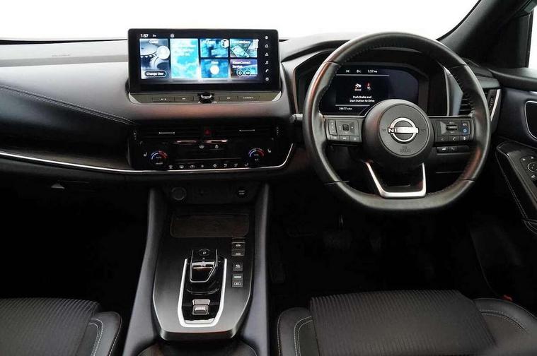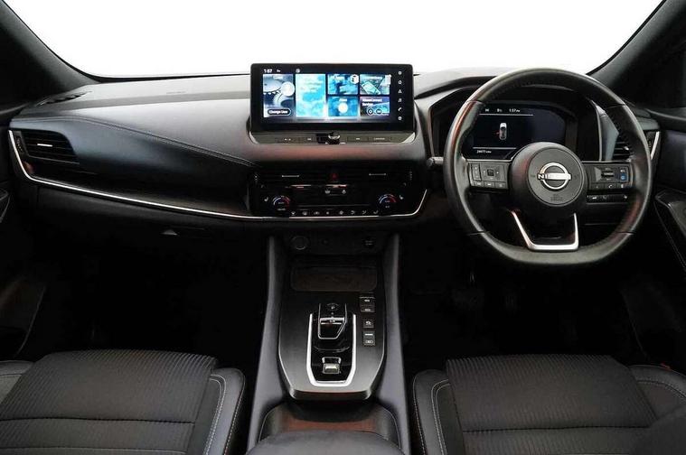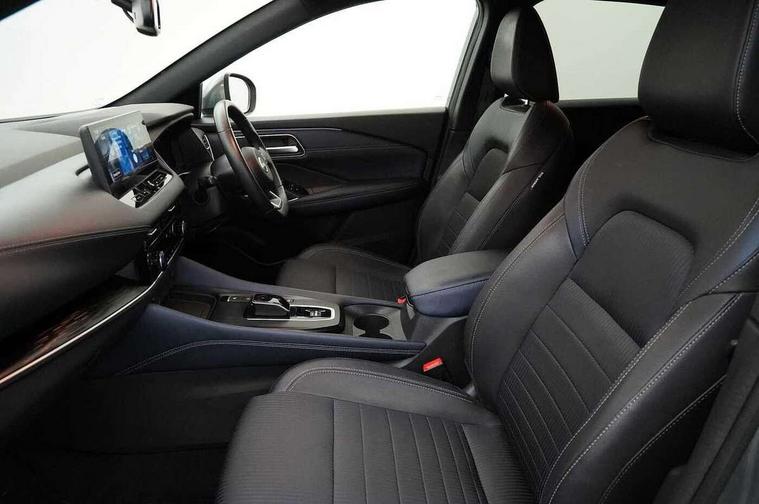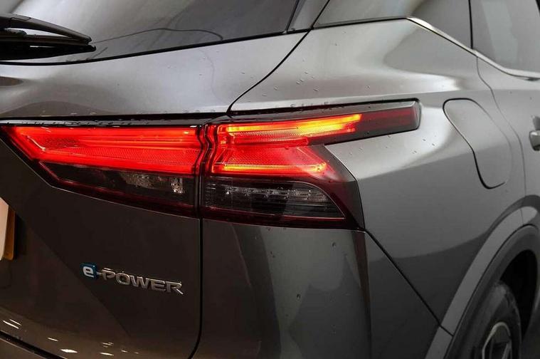 Advanced windscreen head up display, Android auto/Apple CarPlay (Wired), Blind spot warning, Drive modes (sport, normal, eco), Electric speed sensitive power steering, Emergency and breakdown call, Front and rear parking sensors, Full Digital 12.3" TFT Digital Combimeter, Google maps services - search, weather, 3D maps and Google street view, Hands free power tailgate, Idle stop/start system, Intelligent around view monitor, Intelligent Cruise control (ICC), Intelligent driver alert system, Intelligent forward collision warning, Intelligent lane intervention, Lane departure prevention, Lane departure warning system, Lane keep assist, Moving object detection, Nissan connect 12.3 inch touchscreen infotainment system, Nissan connect navigation, ProPILOT with Navi-Link, Push button starter, Rear cross traffic alert, Rear view camera, Remote control services - door locks, lights, horn and car locator, Telematics - notifications and connectivity services, TomTom live traffic services, Traffic sign recognition with legal speed adjustment, Trip computer, Virtual personal assistant and firmware over the air capability, Wireless apple carplay, Wireless charging pad, 6 speakers, AM/FM audio system with DAB, Bluetooth audio streaming, Front USB connections (Type-A and Type-C), Rear USB charging only ports (Type-A and Type-C), Auto dimming rear view mirror, Auto rear wiper when reversing, Automatic hazard signal with emergency stop signal, Body colour mirror caps, Body coloured door handles, Bodyside mouldings, Chrome side window finisher, Door handle with button, e-POWER badging, Electric auto folding door mirrors, Electrically adjustable and heated door mirrors with LED turn indicator, Follow me home headlights, Front and rear LED turning signals, Headlights auto levelling system, Intelligent auto headlights, LED daytime running lights, LED headlights with adaptive driving beam, LED rear lights, One touch front and rear electric windows with remote opening and closing, Partially body coloured bumpers, Privacy glass, Rear bumper with graphite insert, Rear reversing light (bulb lighting), Rear roof spoiler, Rear side wing doors, Rear styling plate, Shark fin antenna, Splash free rain sensing wipers, Super UV and infrared cut glass, Thermaclear heated windscreen, Three blink turn signal, 12v power socket in dashboard and luggage, 2x Rear coat hooks, 3 bench rear seats in 2nd row, 3 rear headrests, 4 folding assist grip, 6 Luggage hooks - 4 on floor, 2 on side, 60/40 split folding rear seat bench, Ambient lighting around centre console, Ambient lighting in front doors, Centre console storage tray, Chrome interior door handles, Cloth/syntech leather monoform upholstery, Dark black/blueish PVC wrapping, Dark headlining, Driver and front passenger sunvisors with illuminated vanity mirrors, Driver seat back pocket, Dual zone automatic climate control with pollen filter, e-POWER shifter, Electrically adjustable driver seat, Electrically adjustable lumbar support for driver, Front and rear door storage, Front centre console and armrest, Front cupholders x 2, Front door with bottle holders, Glovebox with light, Hard trunk cover, Heated front seats, Heated steering wheel, Height adjustable driver's seat, Height adjustable front headrests, Height adjustable passenger seat, Leather steering wheel, Luggage board system, Luggage space lighting, Manual lumbar support on passenger seat, Manually adjustable passenger (slide recline + lifter), Multifunction steering wheel, Passenger seat back pocket, Rear armrest with 2 cupholders, Rear door bottle holders, Single front passenger seat, Soft PVC kneepad, Steering wheel switches, Tilt/telescopic adjustable steering wheel, Two rear isofix child seat anchorage points with top tether, Welcome light and doors with console tray ambient lighting, Glass roof pack with roof rails - Qashqai, 3x3 point rear seatbelt pretensioners + load limiters, ABS with EBD and brake assist, Active brake limited slip, Auto hold function, Child locks on rear doors, Curtain and front side, far side airbags, Driver and passenger airbags, Driver, passenger and 2nd row rear seat belt reminder, Electronic parking brake, Front seatbelt pretensioners + load limiters, Height adjustable front seatbelts, Hill start assist, Intelligent blind spot intervention, Intelligent front emergency braking with pedestrian, cyclist recognition and junction assist, Intelligent rear automatic braking, Tyre pressure monitoring system, Vehicle dynamic control, Capless fuel filler, Engine immobiliser, Intelligent Key, Remote central door locking with deadlocking, Thatcham Cat.1 alarm, Interior instrumental panel C finisher, 19" Diamond cut alloy wheels, Tyre puncture repair kit,