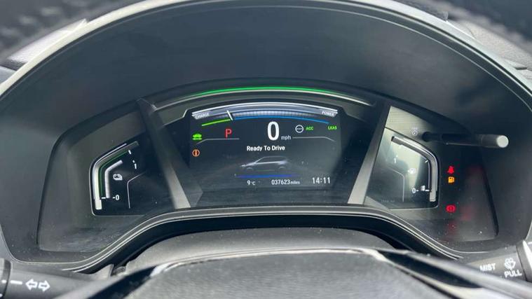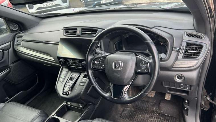 Adaptive cruise control, Agile handling assist, Bluetooth hands free telephone connection, Economy mode, Electric power steering, Emergency stop signalling system, Forward collision warning, Front and rear parking sensors, Honda CONNECT with GARMIN Navigation + 7" touchscreen, DAB radio, Apple CarPlay, Android Auto, Aha app integration and internet browsing, Intelligent multi info display, Lane departure warning system, Lane keep assist system, Low speed following, Rear view camera, Road departure mitigation, Speed limiter, Traffic sign recognition, Vehicle stability assist, 2 USB sockets in rear, 2x USB sockets in front, 9 speakers, DAB Digital radio, Dashboard centre speaker, Front tweeters, Steering wheel mounted controls, Subwoofer, Aspheric door mirrors, Auto dimming rear view mirror, Automatic headlights with dusk sensor, Black mirror caps, Body colour bumpers, Body colour door handles, Dark chrome grille, tailgate, front and rear bumper garnish, Door mirrors tilt when reversing, Electric front windows/one touch facility, Electric rear windows + one touch facility, Electrically adjustable and heated door mirrors, Electrically retractable door mirrors, High beam assist, LED daytime running lights, LED front fog lights, LED Headlights, LED rear lights, Pearlescent paint, Rain sensor, Rear privacy glass, Rear wiper, Shark fin roof aerial, Tailgate spoiler, Welcome home function, 60/40 split folding rear seat, Accessory sockets, Black edition embossed seats, Black headlining, Cargo hooks, Courtesy lights, Driver's electric adjustable lumbar support, Driver/passenger front seatback pockets, Driver/passenger sunvisors with illuminated vanity mirrors, Dual zone automatic climate control, Front centre armrest, Front map lights, Height adjustable driver's seat, Hybrid emblem, Illuminated glovebox, Isofix child seat preparation, Leather steering wheel, Leather upholstery, Paddle shift controls, Piano black interior door handles, Piano black shift knob, Piano black steering wheel, Rear air vents, Rear centre armrest, Rear headrests, Rear reading lights, Rear seat conversation mirror, Sunglasses holder with mirror, Tilt/telescopic adjustable steering wheel, Tonneau cover, Trunk light, 5 x 3 point seatbelts, ABS/EBD, Anti-whiplash front headrests, Brake assist function, Collision mitigation braking system, Deflation detection system, Driver airbag, Electronic parking brake with auto hold, Front and rear curtain airbags, Front and rear seat belts with emergency locking retractor (ELR), Front side airbags, Hill start assist, Passenger airbag deactivate switch, Honda super locks, Immobiliser, Security alarm, Smart entry + Smart start, Ultrasonic security sensor, Dark wood trim, 18" Black alloy wheels, Tyre repair kit,