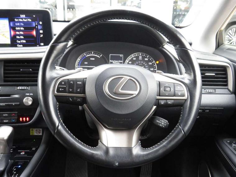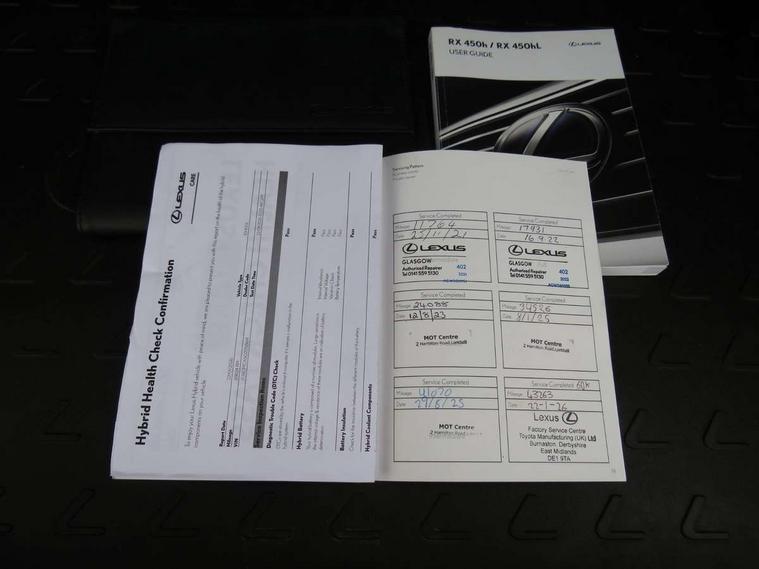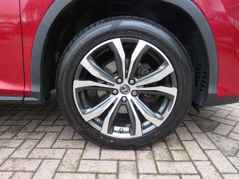 12.3" Touchscreen display and remote touch interface, 4 driving modes EV/Eco/Normal/Sport, Analogue clock with GPS function, Apple car play/Android Auto, Bluetooth mobile phone connectivity, Electric power steering, Front and rear parking sensors with intelligent clearance sonar, Lane change flasher function, Lexus link connected services with available optional wifi, Lexus Premium Navigation with full European map capability, street view and connected services, Multi-information display 4-inch TFT, Push button starter, Reversing camera with back guide lines, Wireless Smartphone charger, Vehicle Dynamics Integrated Management (VDIM), Vehicle Stability Control (VSC), 12 speakers Pioneer audio, AUX socket with VTR compatibility, DAB Digital radio, DVD, Front and rear USB ports, 3 eye LED headlights with auto high beam, Auto dimming rear view mirror, Front and rear electric windows, Headlight washers, Heated, auto-folding door mirrors, auto dimming with rerverse tilt and memory, LED brake lights and rear lights with emergency brake signal, LED cornering headlights, LED daytime running lights, LED front and rear sequential indicators, LED front fog lights, Privacy glass, rear doors and tailgate, Puddle lights, Rain sensor windscreen wipers, Roof rails, 2 map pockets in the rear, 2 way electric lumbar support, 2 way manually adjustable front headrests, 2 way manually adjustable rear headrests, 2 x fixed shopping bag hooks in boot, 2 x Sunvisors with vanity mirror and lamp, 3 x 12V power sockets, 4 x tie down hooks in the boot, 60/40 split folding rear seat with 40/20/40 folding ability, 8 way electric adjust front seats, Card holder installed in driver and passengers sun visors, Centre and rear armrest with 2 cupholders, Centre armrest with storage box, Climate concierge, Driver's seat easy access auto retraction function, Dual zone climate control air conditioning system with S flow and Nanoe technology, Electrically adjustable leather steering wheel with paddle shifts and auto retraction function, Electrically adjustable steering column, Glasses holder in roof lighting panel, Heated front seats, Heated steering wheel, Isofix standard child seat restraint mounting, Leather gear lever, LED interior illumination, Rear armrest with storage, Sliding/reclining rear seats, Small compartment to right of steering wheel, Smooth leather upholstery, Textile carpet mats, Ventilated front seats, 3 point ELR front and rear seatbelts with pretensioners, ABS, Curtain airbags, Driver and front passenger 2 stage airbag, Driver/front passenger side airbags, Drivers knee airbag, EBD + Brake Assist, Electronic parking brake, Electronically controlled braking, Front passenger seat cushion airbag, Hill start assist, Lexus safety system - dynamic radar cruise control, pre collision system day and night, lane tracing assist, road sign, automatic high beam, OTA, Passenger airbag cut-off device, Rear passenger side airbags, Traction control, Tyre pressure warning, WIL whiplash protection front seats, Anti theft system with alarm, intrusion sensor, tilt sensor, glass breakage sensor and engine immobiliser, Locking wheel nuts, Security window etching, Smart keyless entry, Two motion door lock with double lock, Black grain inlay, 20" Alloy wheels, Temporary spare wheel,